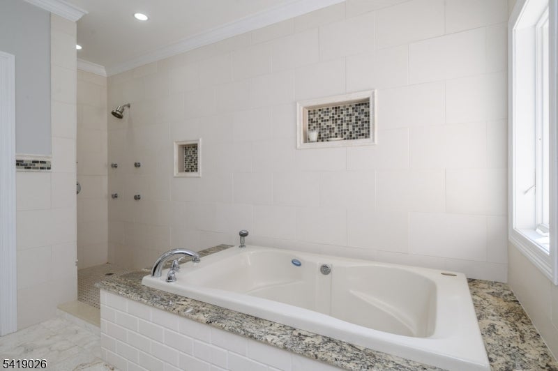 Stunning from the curb & remarkable within, this 5 Bed 4.5 Bath solid Brick Colonial is an estate for the discerning. Tucked away on a private road perfectly appointed on a sub dividable lot on a compound-like setting with gated entry offering unmatched privacy. Offering 6350 sq ft of finished living, along with a finished walk-out ground level offering 2200 sq ft of new construction, its the perfect forever home, Inviting foyer welcomes you in to find a thoughtfully designed interior with generous room sizes, HW flrs, and plenty of natural light all through. The main level holds a living room, dining room, office, laundry room, 1/2 bath & family room with gas fireplace that opens to the gourmet eat-in-kitchen. EIK offers top-of-the-line, designer appliances, a large center island that is ideal for gathering, gorgeous granite and marble countertops & more. Head upstairs to find all 5 generous bedrooms with the beautifully upgraded full baths, inc the luxurious Master Suite. MBR boasts its own walk-in closet, fireplace & ensuite bath. Princess Suite with its own bath is an added bonus. True finished walk-out lower level offers an additional 2200 sq ft of multi-use living space with radiant heat flooring, ideal for entertaining, perfect for a private apt or IL suite with its own separate entrance. 3 car garage offers plenty of parking. Live in luxury & total privacy, just minutes away from major highways, NY/NJ public transportation to NYC, shopping, dining, parks and more.