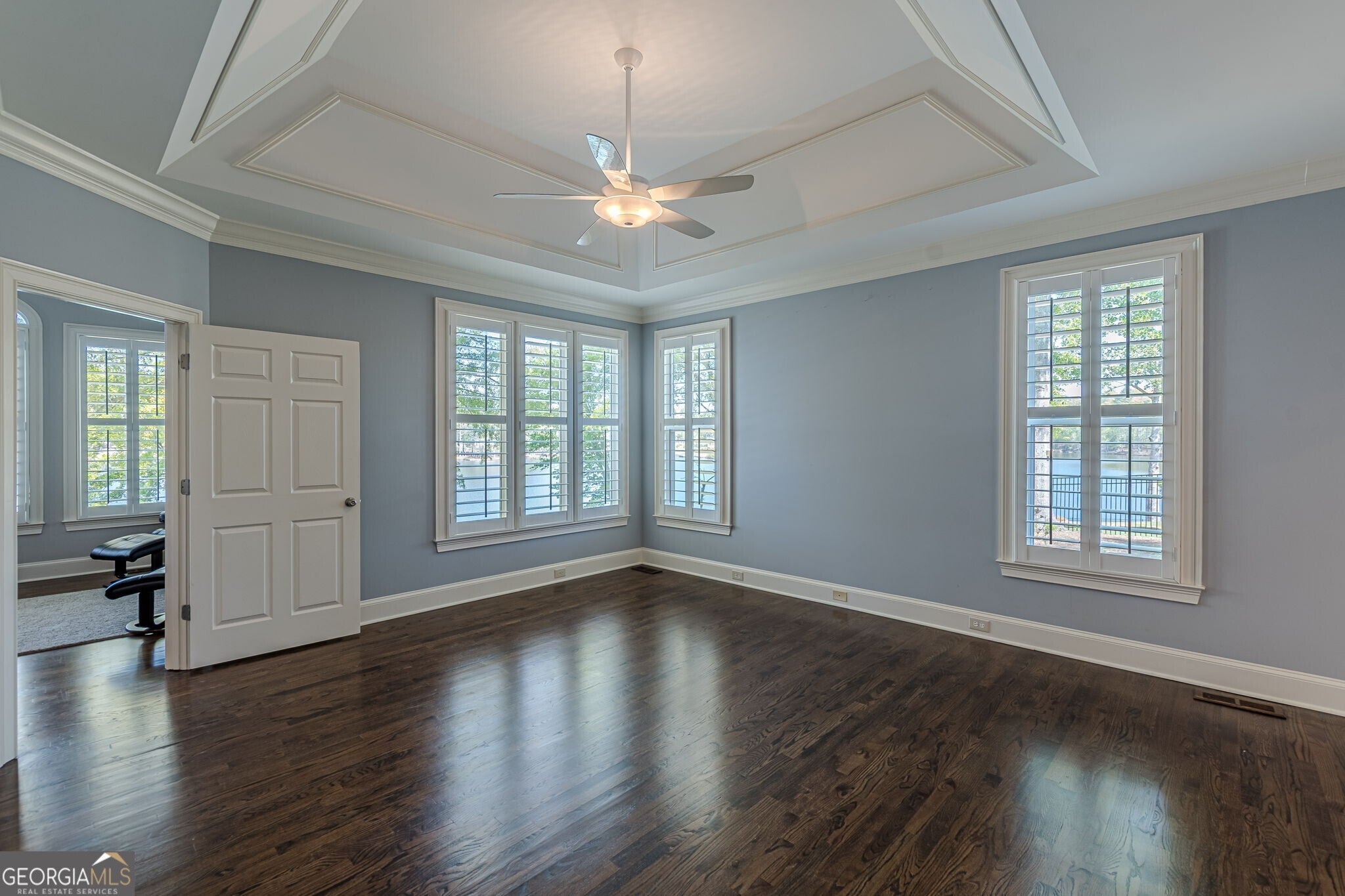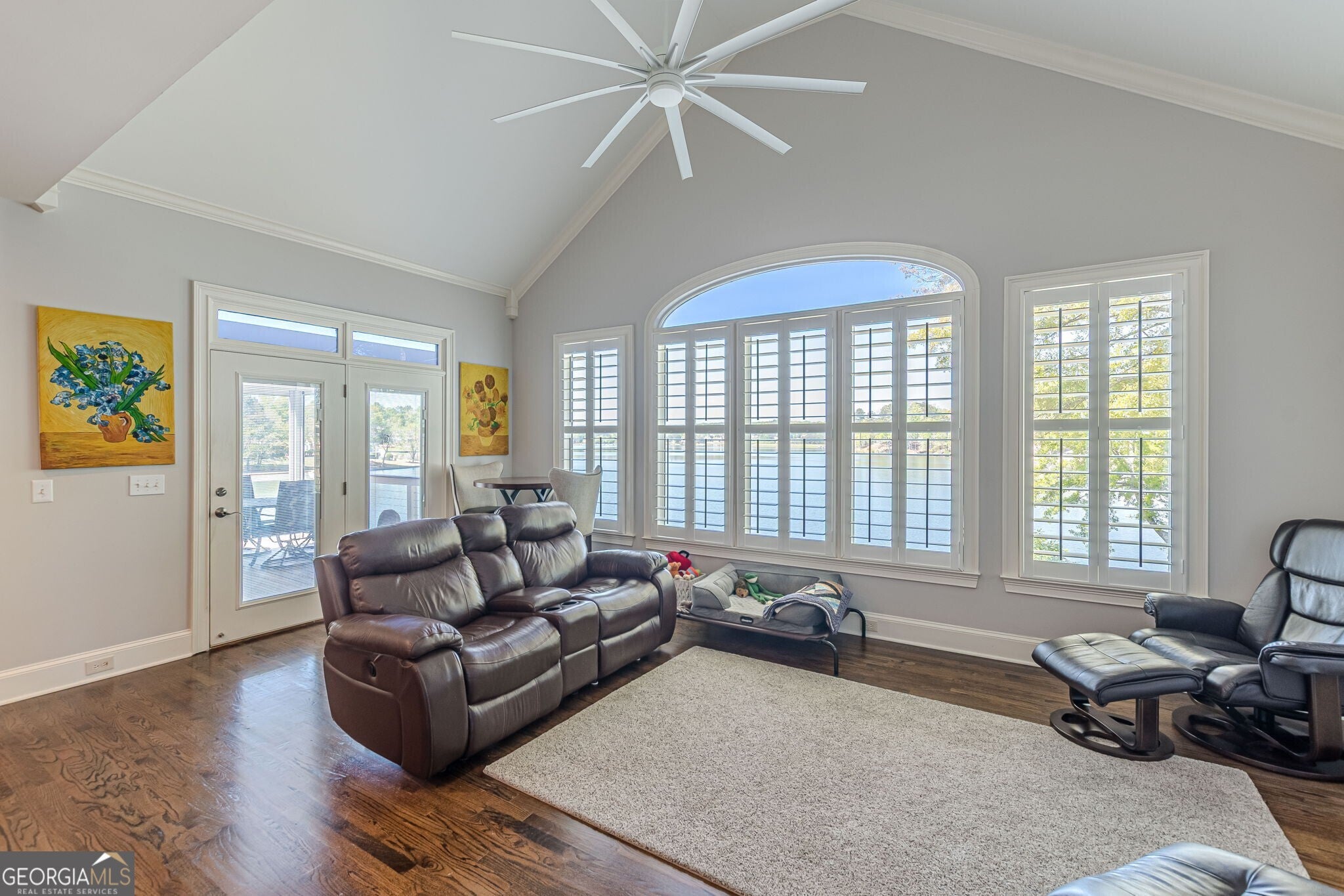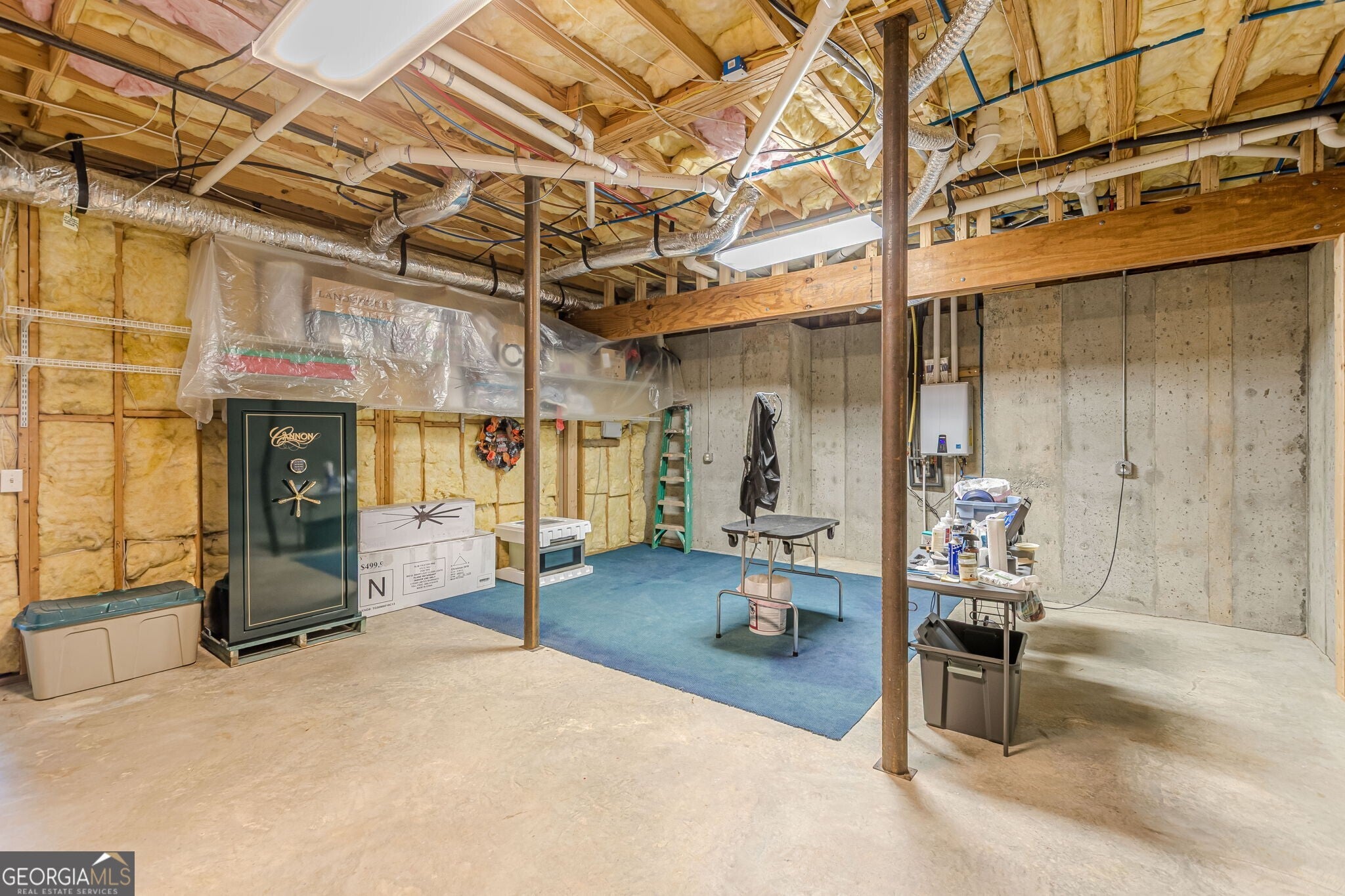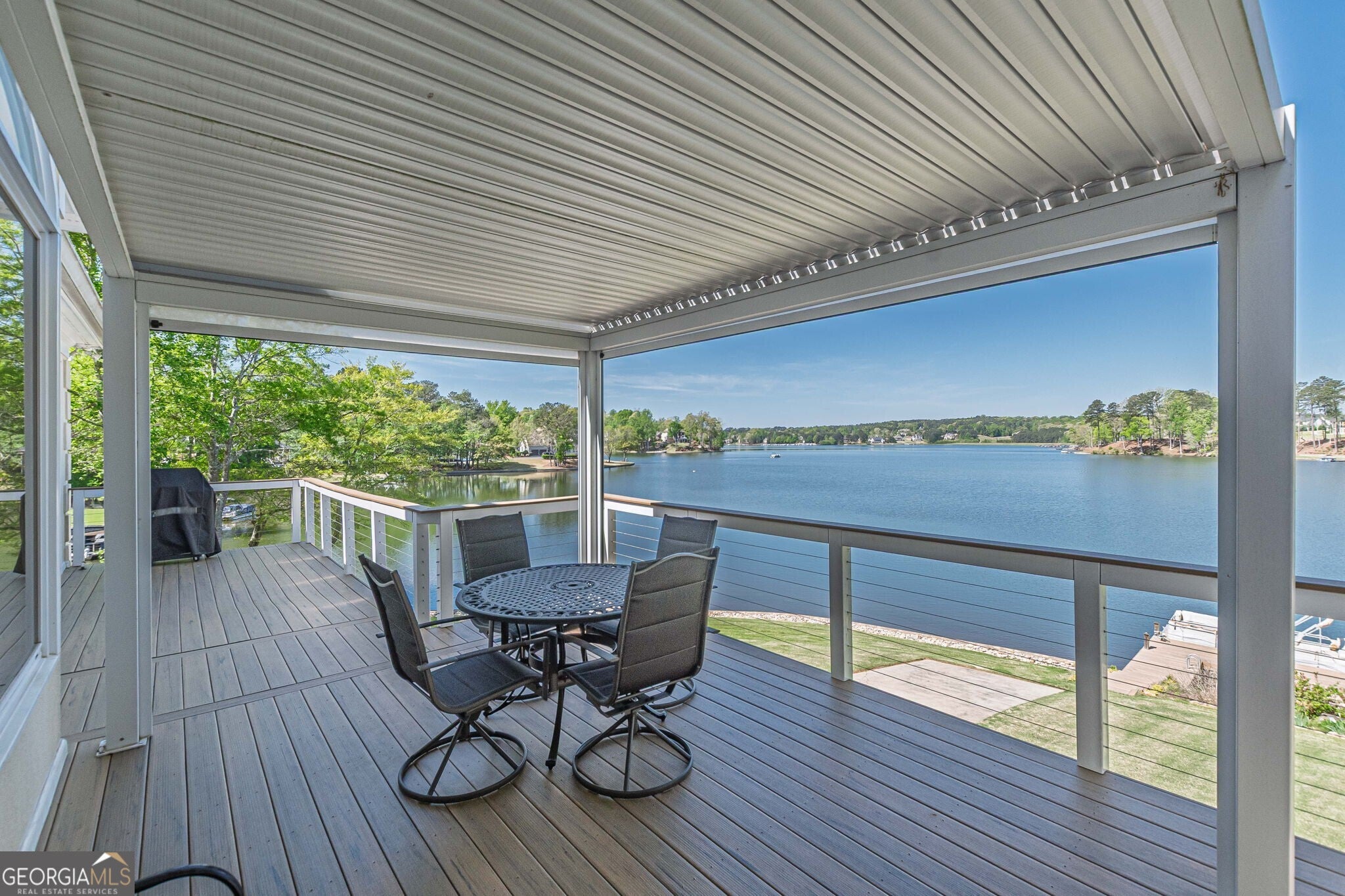 Welcome to your private paradise with this stunning lakefront retreat nestled in the sought-after Lake Redwine community in Newnan, Georgia. Perfectly positioned on a private cul-de-sac lot with 240 of lake frontage with custom seawall, this beautifully maintained ranch plan offers breathtaking, panoramic water views and a lifestyle of peaceful luxury. Step inside to an open, light-filled floorplan designed for both elegant entertaining and comfortable everyday living. Expansive windows frame the sparkling lake from the main living areas, creating a seamless connection between indoor and outdoor spaces. High end custom plantation shutters. The spacious great room, anchored by a cozy fireplace and custom built-ins, flows effortlessly into the gourmet kitchen featuring a large island, custom cabinetry with pull out shelving and pantry, Bosch cooktop and top of the line appliances - all with access to the deck -- perfect for enjoying morning coffee or sunset views. Water/gas plumbed for outdoor kitchen. The owners suite is a dream with serene lake views, a luxurious spa-inspired remodeled bath, and generous walk-in closet, while two additional guest ensuites on the main offer comfort and privacy. The finished terrace level provides flexible living space ideal for entertaining, hobbies, or guest/ inlaw suite along with ample storage. Safe remains! In addition to the main level garage, the lower level garage features workshop and parking for RV or up to approx 7 vehicles - perfect for the car enthusiasts! Outdoors, the beautifully landscaped yard, patio, and deck create the perfect setting for lakeside gatherings or quiet relaxation. Enjoy fresh fruits from the peach trees and lush blueberry bushes. With its impeccable condition, timeless finishes, and unmatched waterfront setting, this home is a rare opportunity to enjoy lake living at its finest.