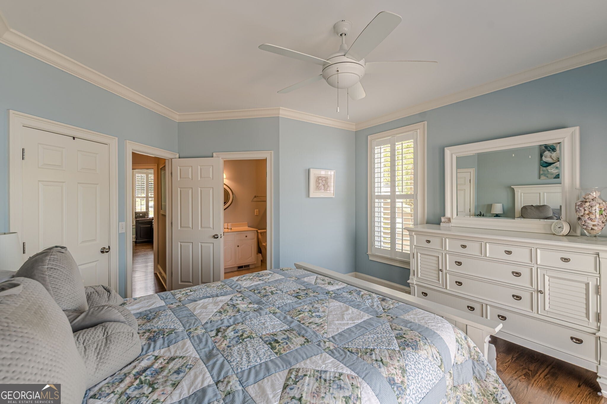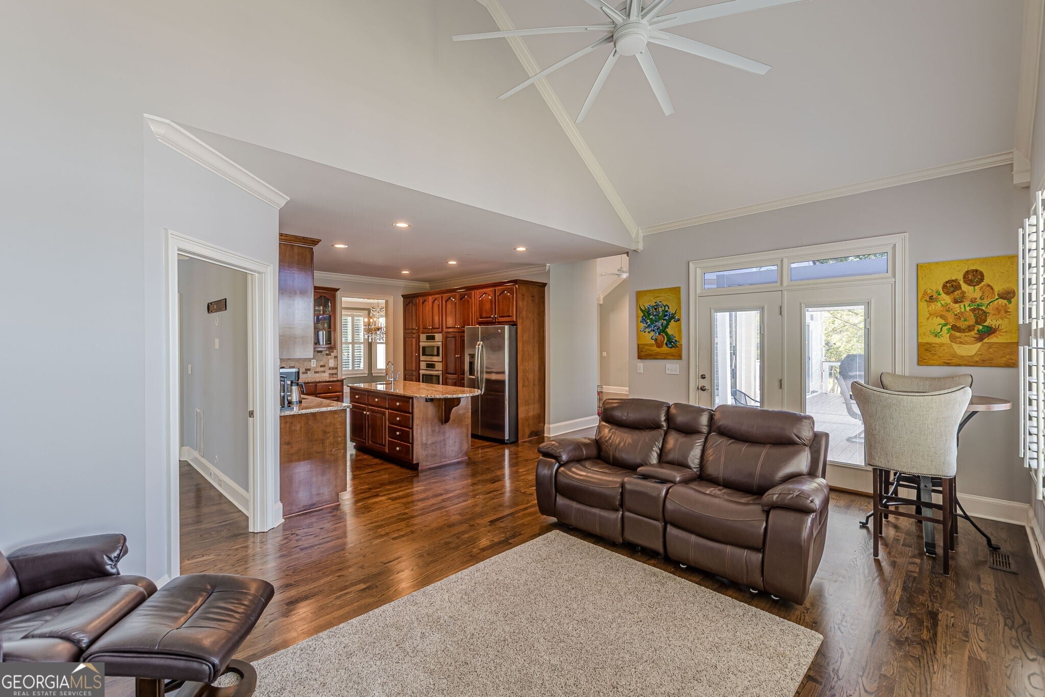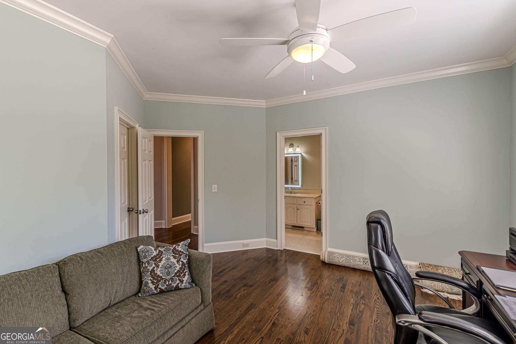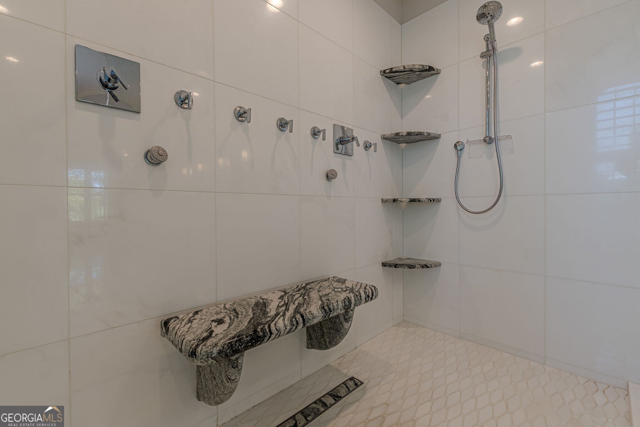 Welcome to your private paradise with this stunning lakefront retreat nestled in the sought-after Lake Redwine community in Newnan, Georgia. Perfectly positioned on a private cul-de-sac lot with 240 of lake frontage with custom seawall, this beautifully maintained ranch plan offers breathtaking, panoramic water views and a lifestyle of peaceful luxury. Step inside to an open, light-filled floorplan designed for both elegant entertaining and comfortable everyday living. Expansive windows frame the sparkling lake from the main living areas, creating a seamless connection between indoor and outdoor spaces. High end custom plantation shutters. The spacious great room, anchored by a cozy fireplace and custom built-ins, flows effortlessly into the gourmet kitchen featuring a large island, custom cabinetry with pull out shelving and pantry, Bosch cooktop and top of the line appliances - all with access to the deck -- perfect for enjoying morning coffee or sunset views. Water/gas plumbed for outdoor kitchen. The owners suite is a dream with serene lake views, a luxurious spa-inspired remodeled bath, and generous walk-in closet, while two additional guest ensuites on the main offer comfort and privacy. The finished terrace level provides flexible living space ideal for entertaining, hobbies, or guest/ inlaw suite along with ample storage. Safe remains! In addition to the main level garage, the lower level garage features workshop and parking for RV or up to approx 7 vehicles - perfect for the car enthusiasts! Outdoors, the beautifully landscaped yard, patio, and deck create the perfect setting for lakeside gatherings or quiet relaxation. Enjoy fresh fruits from the peach trees and lush blueberry bushes. With its impeccable condition, timeless finishes, and unmatched waterfront setting, this home is a rare opportunity to enjoy lake living at its finest.