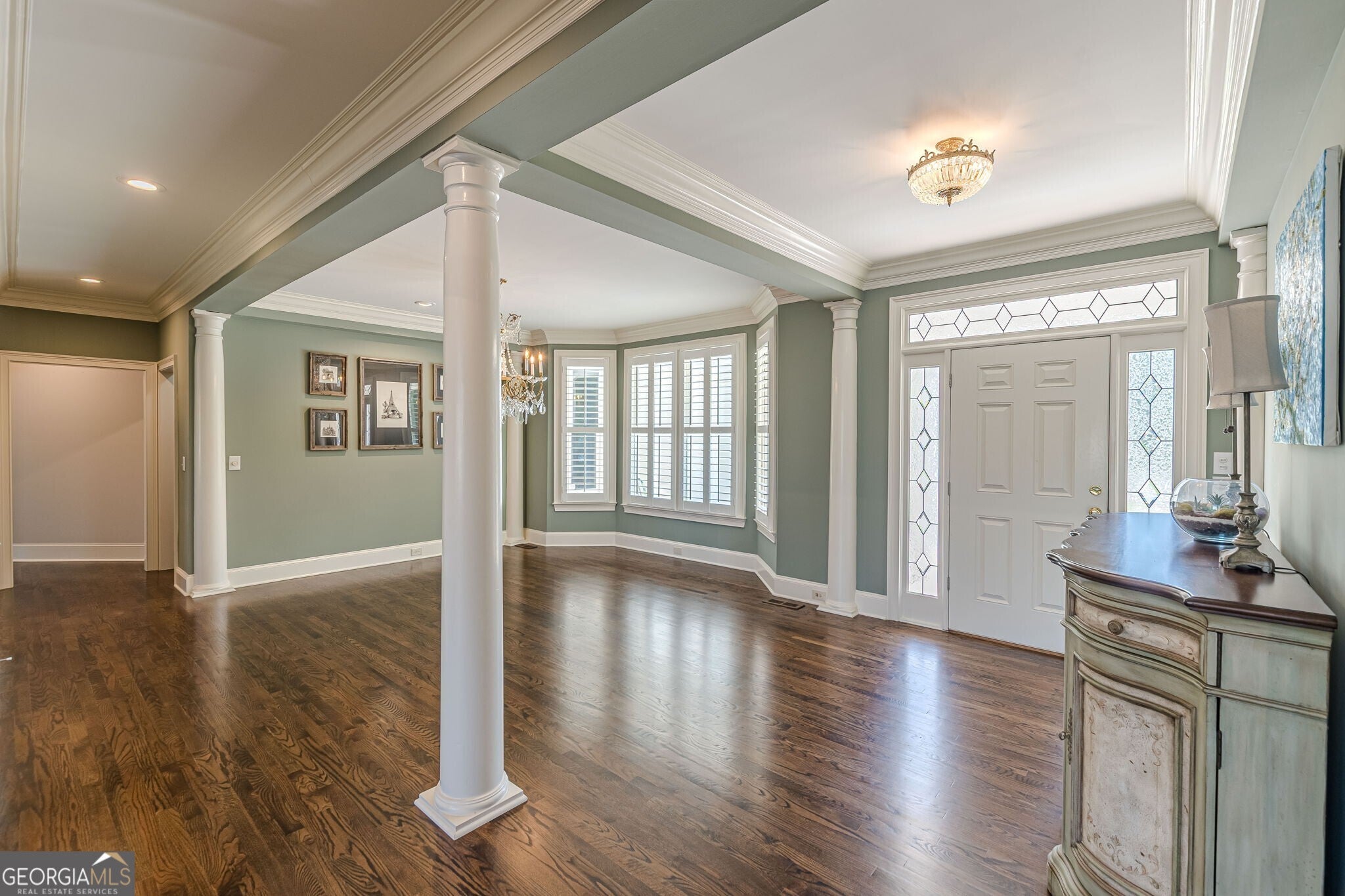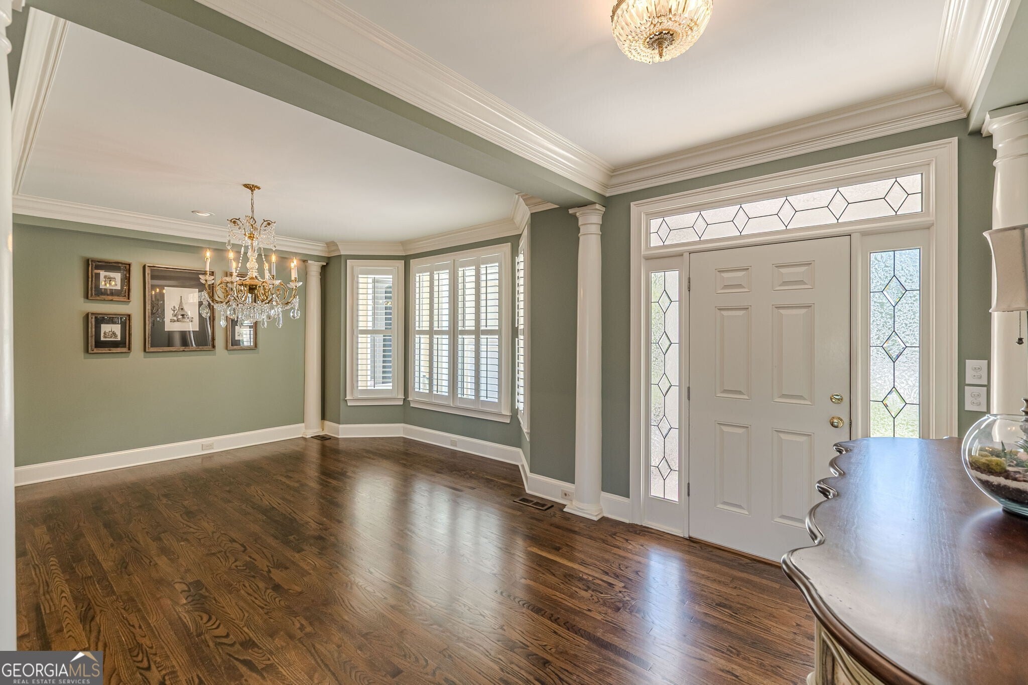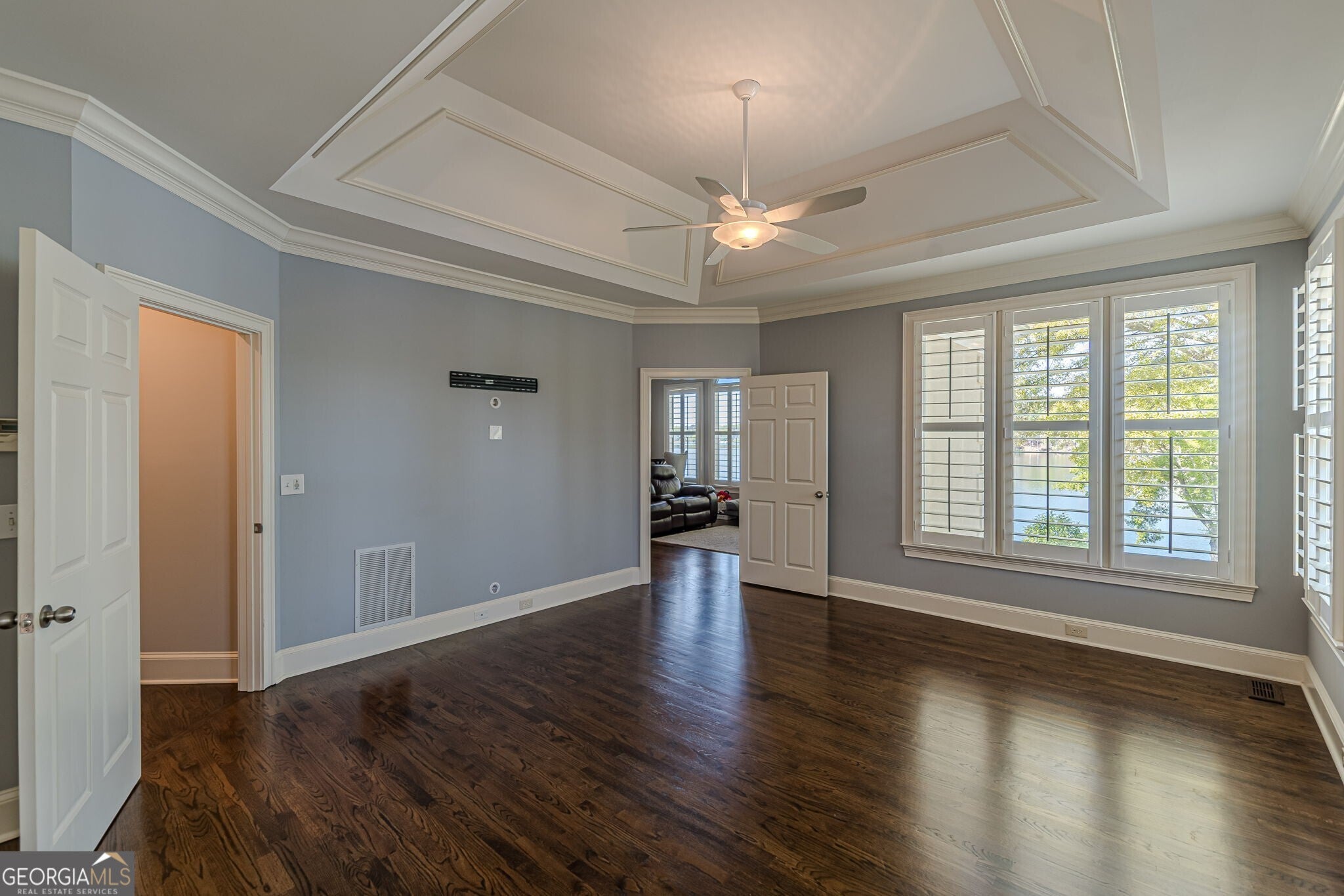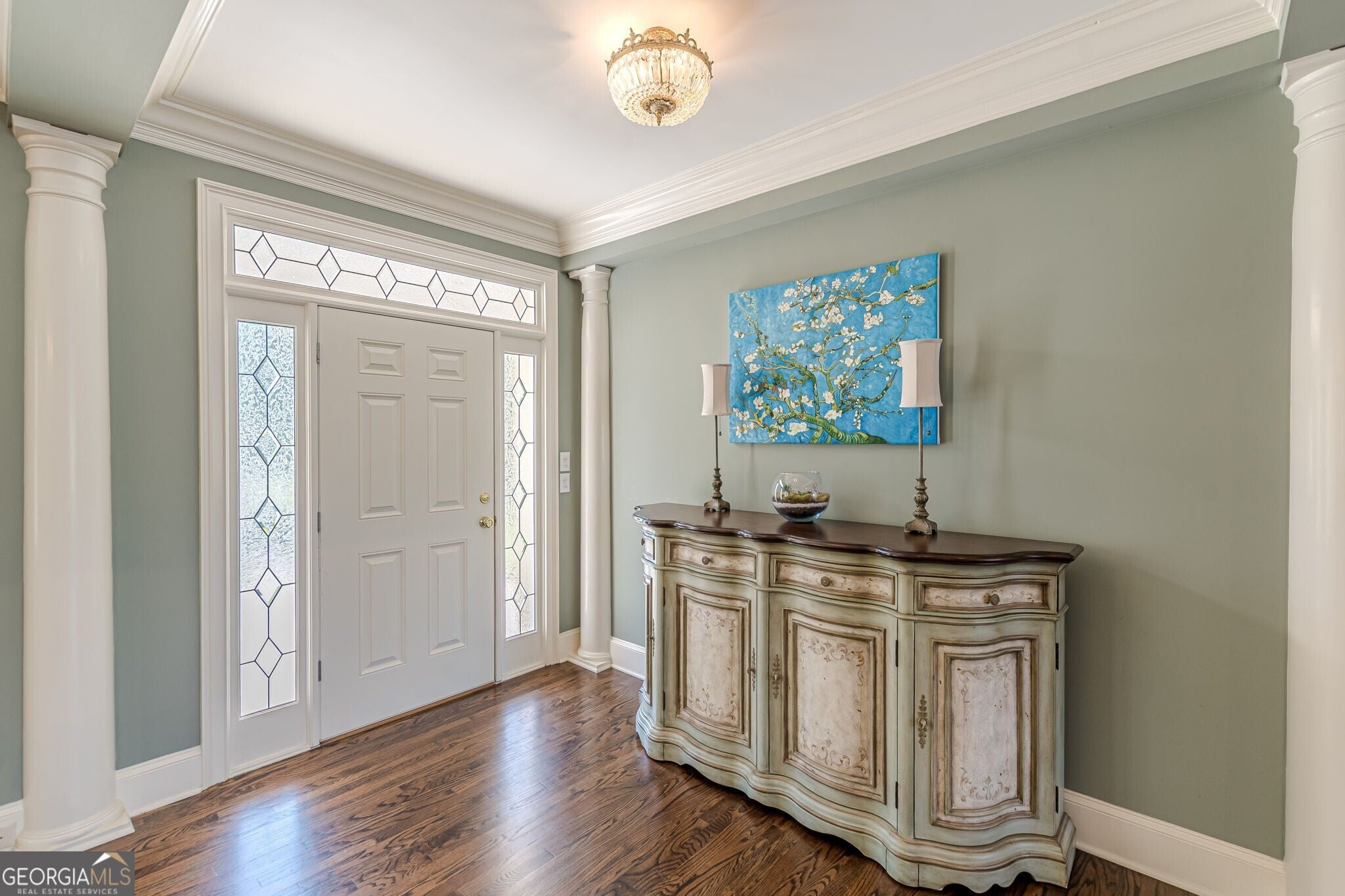 Welcome to your private paradise with this stunning lakefront retreat nestled in the sought-after Lake Redwine community in Newnan, Georgia. Perfectly positioned on a private cul-de-sac lot with 240 of lake frontage with custom seawall, this beautifully maintained ranch plan offers breathtaking, panoramic water views and a lifestyle of peaceful luxury. Step inside to an open, light-filled floorplan designed for both elegant entertaining and comfortable everyday living. Expansive windows frame the sparkling lake from the main living areas, creating a seamless connection between indoor and outdoor spaces. High end custom plantation shutters. The spacious great room, anchored by a cozy fireplace and custom built-ins, flows effortlessly into the gourmet kitchen featuring a large island, custom cabinetry with pull out shelving and pantry, Bosch cooktop and top of the line appliances - all with access to the deck -- perfect for enjoying morning coffee or sunset views. Water/gas plumbed for outdoor kitchen. The owners suite is a dream with serene lake views, a luxurious spa-inspired remodeled bath, and generous walk-in closet, while two additional guest ensuites on the main offer comfort and privacy. The finished terrace level provides flexible living space ideal for entertaining, hobbies, or guest/ inlaw suite along with ample storage. Safe remains! In addition to the main level garage, the lower level garage features workshop and parking for RV or up to approx 7 vehicles - perfect for the car enthusiasts! Outdoors, the beautifully landscaped yard, patio, and deck create the perfect setting for lakeside gatherings or quiet relaxation. Enjoy fresh fruits from the peach trees and lush blueberry bushes. With its impeccable condition, timeless finishes, and unmatched waterfront setting, this home is a rare opportunity to enjoy lake living at its finest.