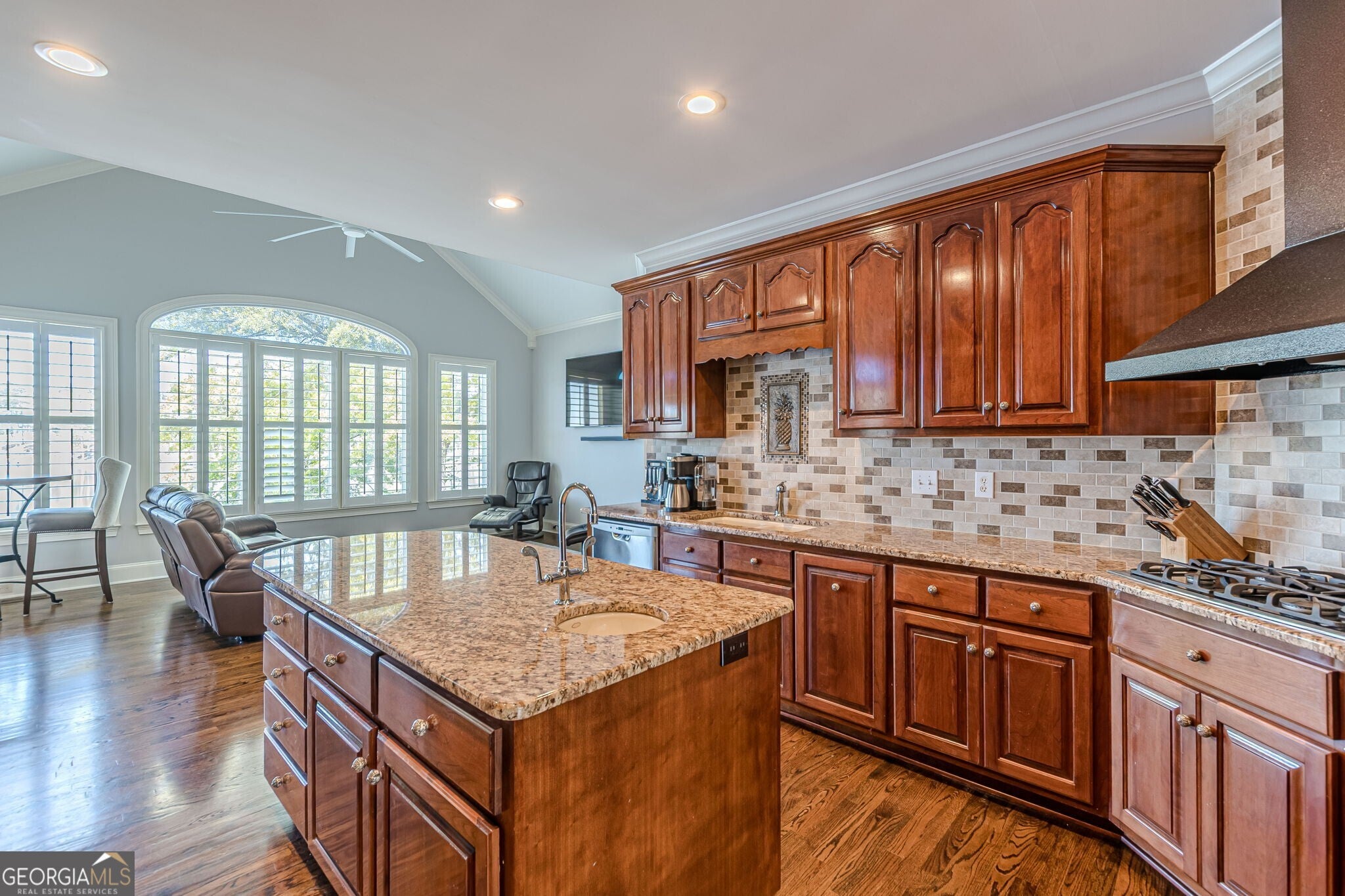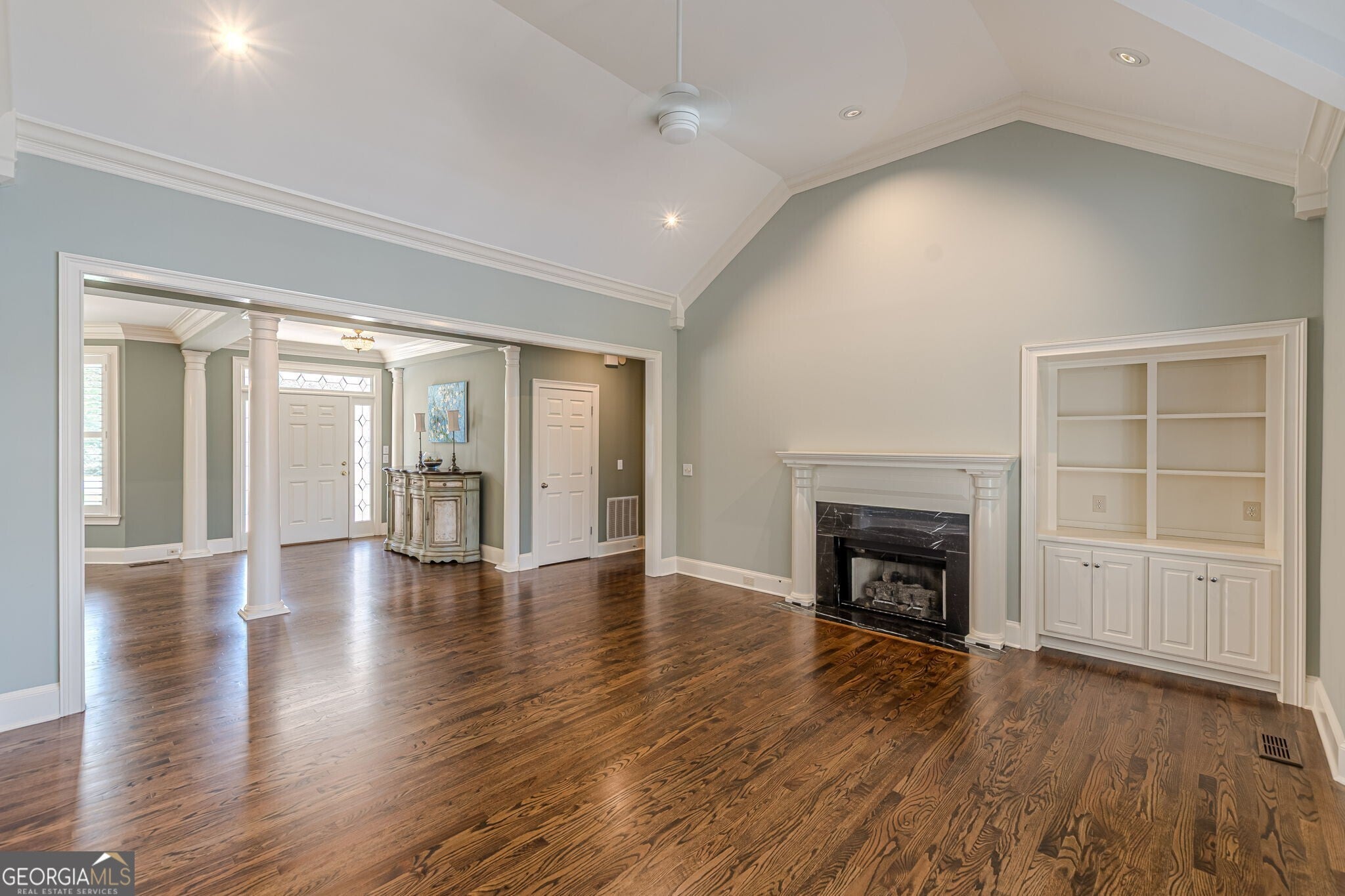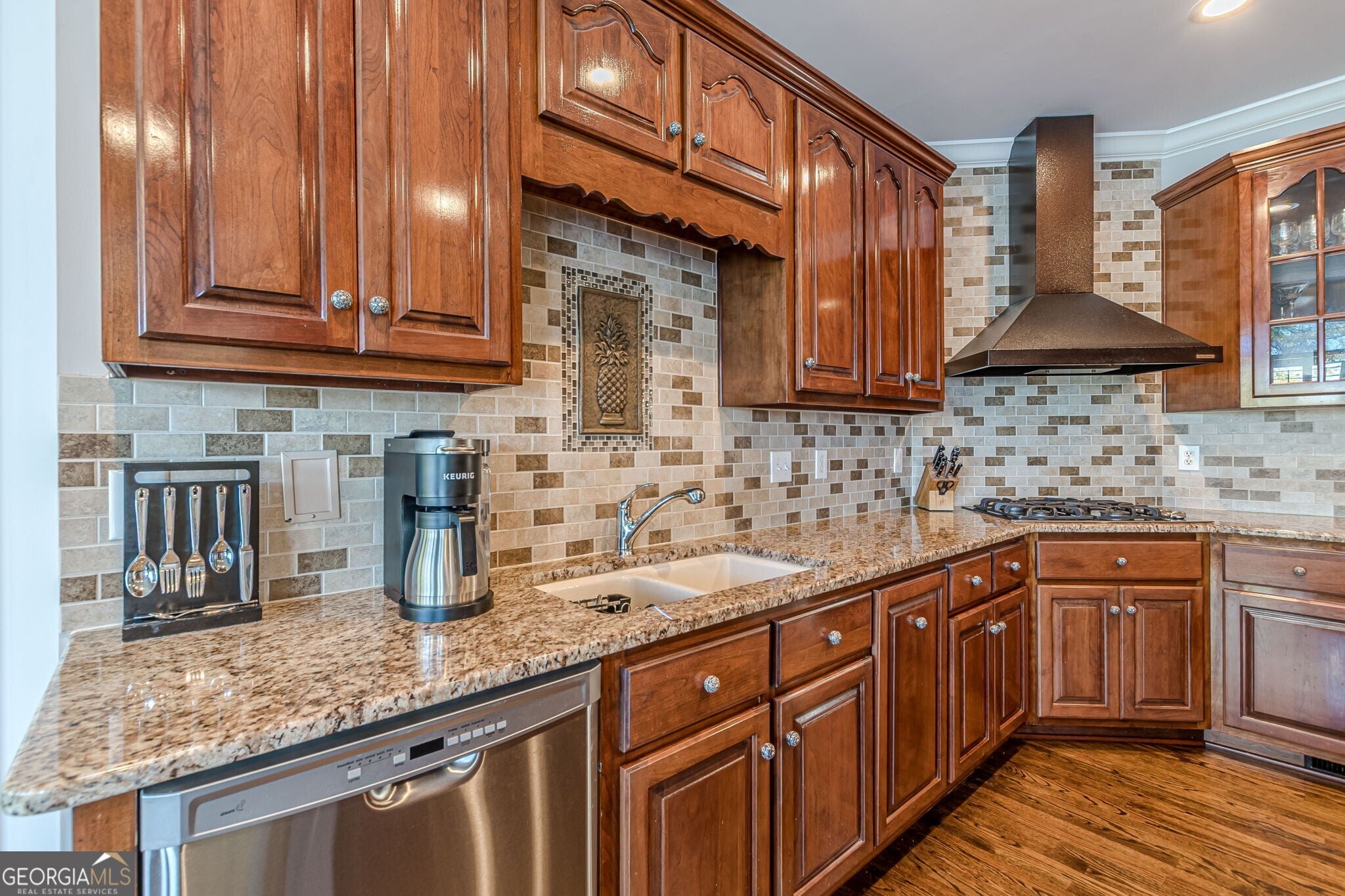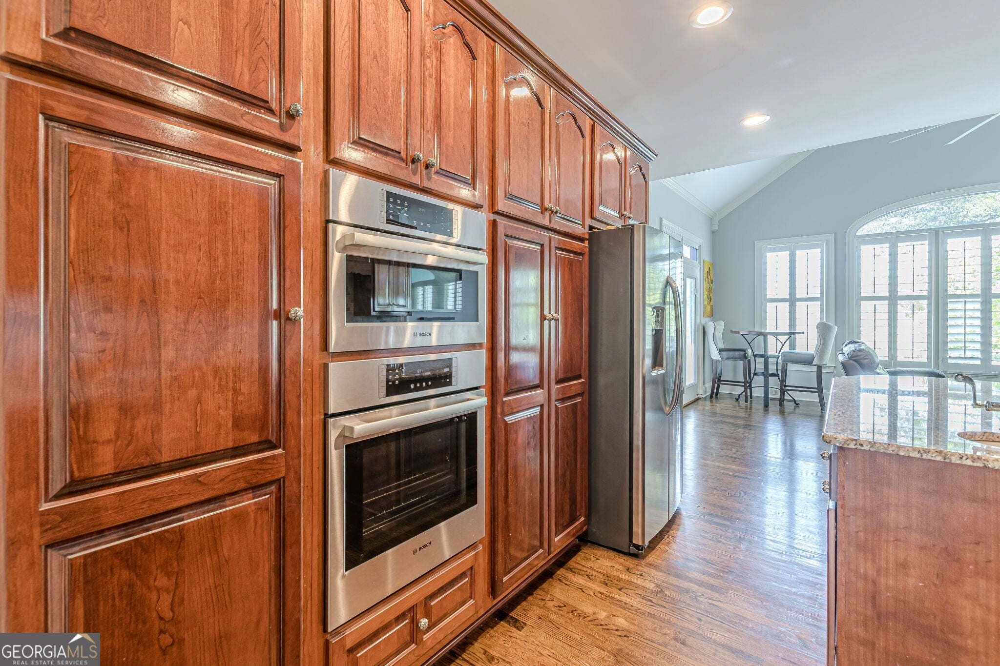 Welcome to your private paradise with this stunning lakefront retreat nestled in the sought-after Lake Redwine community in Newnan, Georgia. Perfectly positioned on a private cul-de-sac lot with 240 of lake frontage with custom seawall, this beautifully maintained ranch plan offers breathtaking, panoramic water views and a lifestyle of peaceful luxury. Step inside to an open, light-filled floorplan designed for both elegant entertaining and comfortable everyday living. Expansive windows frame the sparkling lake from the main living areas, creating a seamless connection between indoor and outdoor spaces. High end custom plantation shutters. The spacious great room, anchored by a cozy fireplace and custom built-ins, flows effortlessly into the gourmet kitchen featuring a large island, custom cabinetry with pull out shelving and pantry, Bosch cooktop and top of the line appliances - all with access to the deck -- perfect for enjoying morning coffee or sunset views. Water/gas plumbed for outdoor kitchen. The owners suite is a dream with serene lake views, a luxurious spa-inspired remodeled bath, and generous walk-in closet, while two additional guest ensuites on the main offer comfort and privacy. The finished terrace level provides flexible living space ideal for entertaining, hobbies, or guest/ inlaw suite along with ample storage. Safe remains! In addition to the main level garage, the lower level garage features workshop and parking for RV or up to approx 7 vehicles - perfect for the car enthusiasts! Outdoors, the beautifully landscaped yard, patio, and deck create the perfect setting for lakeside gatherings or quiet relaxation. Enjoy fresh fruits from the peach trees and lush blueberry bushes. With its impeccable condition, timeless finishes, and unmatched waterfront setting, this home is a rare opportunity to enjoy lake living at its finest.