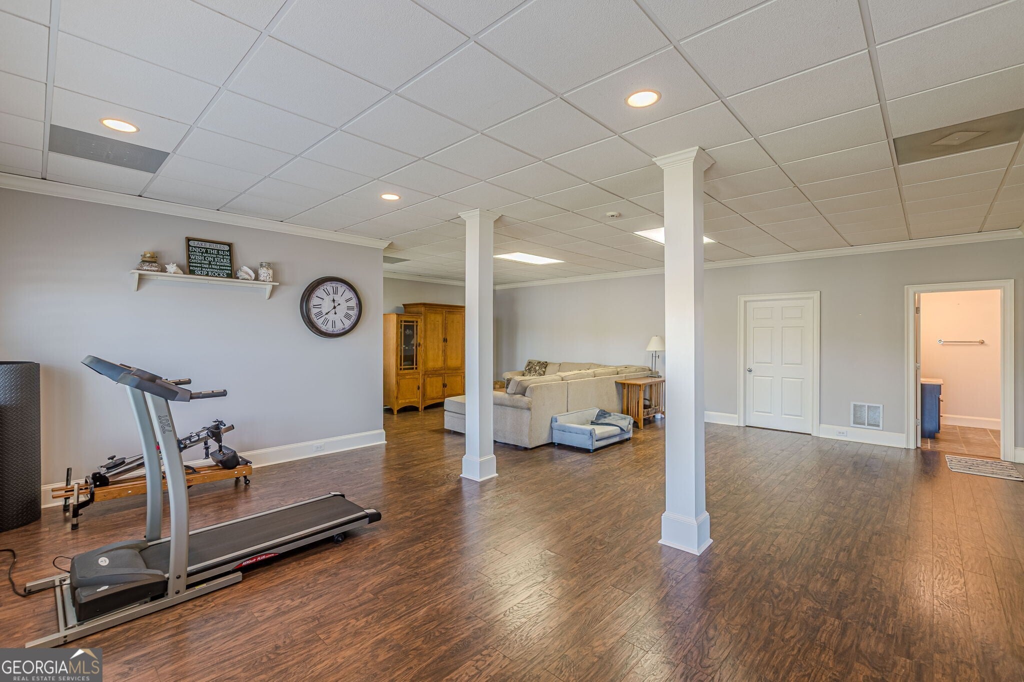 Welcome Home to the Chateau in the Woods. This exquisite home has the hard to find acreage at the end of a private cul-de-sac. This estate brings you all the amenities youve dreamed of. Check out the interactive video tour. This 7400sq. ft. ranch provides 6 bedrooms, 4 baths, 3 car garage, in-ground pool and so much more. The front elevation invites you towards the bricked front porch and impressive front entrance. The spacious formal foyer warmly greets you as you move towards the great room with 15 ft ceilings. The great room provides the warmth of a fireplace and a wall of Palladian style windows with a wonderland view of the woods. The two display cabinets on either side of the fireplace are to remain with the house. The kitchen has maple Amish cabinetry with hard surfaces and a tiled center island. The pillared formal dining room is open as well. The walk out lower level has 3 bedrooms, a full bathroom, recreation room, wet bar, sauna and exercise room, home theater, family area, office, storage, and doors that open to a treed, private back yard. The pool table will remain with house. Sit back and relax by the saltwater pool, or in the high ceiling, screened deck which includes a spectacular stone fireplace and an adjacent outdoor kitchen. Youll love the gracious spiral staircase as it leads to the lower level. The Gunite pool is salt water and heated which makes the swim season last a bit longer. Make sure to print out the floor plans to help you with room configuration.