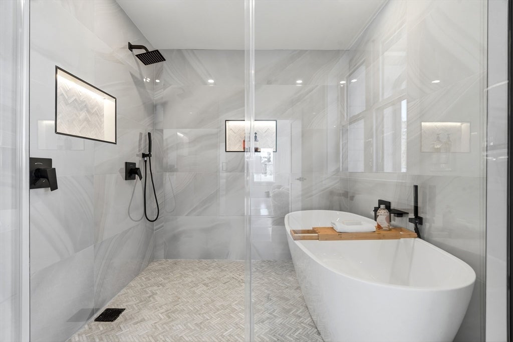 New construction luxury home in Natick offering 4508 sq ft of thoughtfully designed living space with 4 bedrooms, 4 full baths, 1/2 bath & a spacious 2-car garage. Enter into an elegant, open-concept layout featuring custom cabinetry & a stunning kitchen with imported Malaysian quartz countertops called Fusion Mahal, seamlessly flowing into the main living area anchored by a striking Samos quartz around the fireplace. Designed for both everyday living & entertaining, the home offers a seamless indoor-outdoor connection with a patio overlooking the yard. The primary suite serves as a private retreat, complete with a spa-inspired bath featuring an oversized soaking tub with dual shower heads & a private porch directly off the bedroom - perfect for quiet mornings or evening relaxation. Built with comfort & efficiency in mind, including foam insulation, dual air/infiltration systems, & a heated garage. Smart features include EV charger readiness, garage doors with integrated camera & MORE