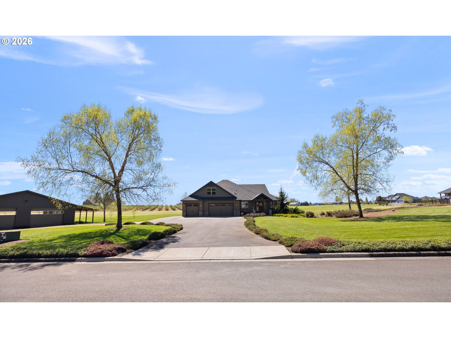 Falcons Landing beauty on Sunset Airstrip (1OR3)! This exceptional, essentially single-level home features 3 spacious bedrooms, a den, formal dining, and a great room-style living area highlighted by a floor-to-ceiling custom fireplace, 10 ceilings, designer lighting, and expansive windows that capture beautiful views. The gourmet kitchen is equipped with double convection ovens and designed for both everyday living and entertaining. The large primary suite offers a luxurious ensuite, huge walk-in closet all conveniently located on the main level. A bonus room upstairs provides flexible space for guests, media, or hobbies. Situated on 4 level acres with approximately 3 acres usable w/ in-ground sprinkler system, beautiful landscaping with lighting & a 2018 Kubota tractor w/ attachments to make your life easy! the property includes an impressive 50x 40 hangar featuring a 40 x 12 hydraulic Higher Power hangar door and two 12 x 16 garage doors, ideal for aviation, storage, or workshop needs. Quick to Hwy 26! Be sure to watch the video and request the Features & Updates list from your Realtor for detailed understanding of everything this incredible property offers.