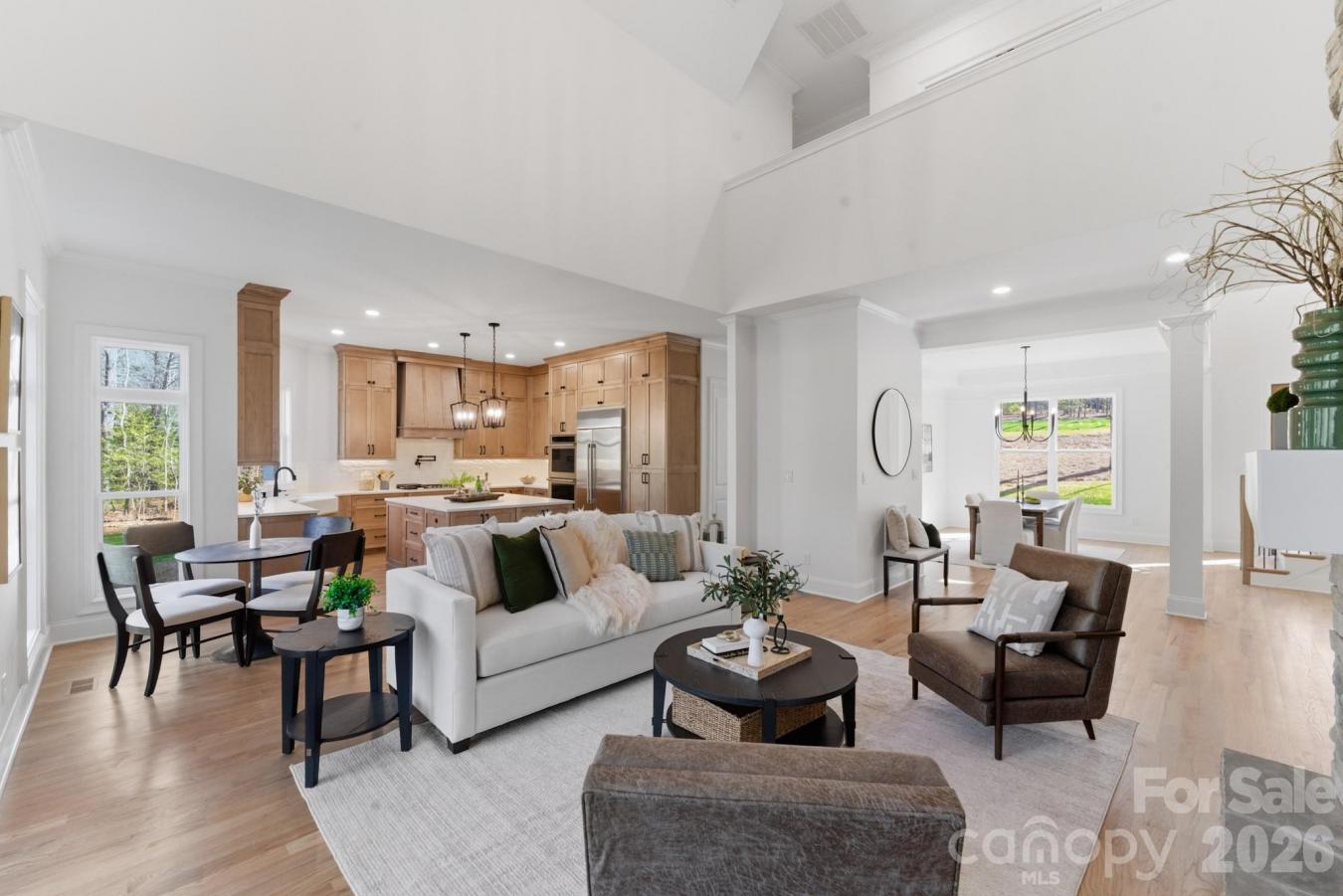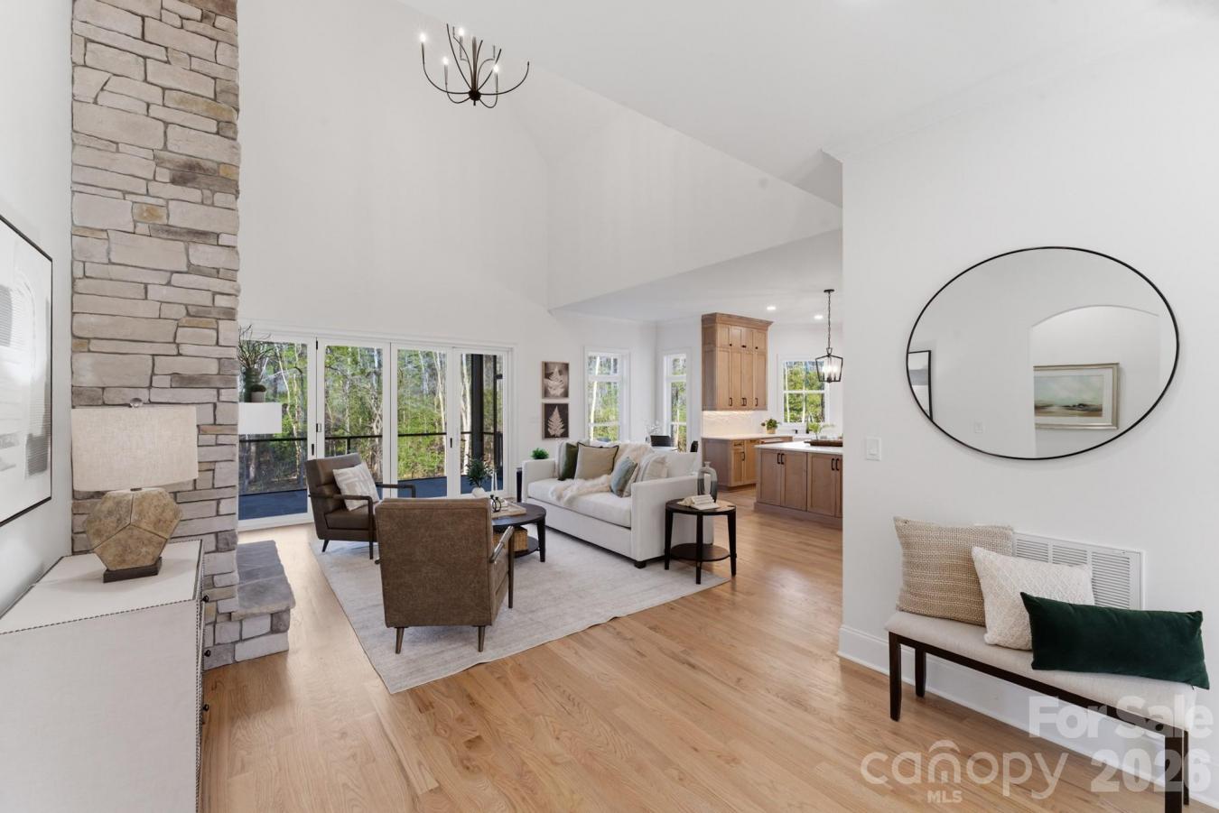 Tucked away on a private, wooded 1.759-acre corner homesite within the gated community of Riverchase Estates, this custom residence offers a rare blend of architectural presence, refined finishes, and elevated lifestyle living. With 3, 867 square feet of thoughtfully designed space, this 4-bedroom, 4.5-bath home was curated for those who appreciate both sophisticated design and everyday comfort. From the moment you arrive, the stately stone facade, soaring rooflines, and expansive driveway create a striking first impression, setting the tone for what awaits inside. Step through the entry into a dramatic two-story great room, where natural light pours through French doors, highlighting the fireplace and creating an inviting and warm gathering space. The heart of the home is a beautifully appointed kitchen featuring luxury GE Monogram appliances, an oversized island, and custom cabinetry throughout, perfectly designed for both entertaining and everyday living. The primary suite is a private retreat, complete with a cathedral ceiling and windows that flood the space with natural light while offering serene views of the wooded backyard. Designed for flexibility and comfort, the home also features a dedicated office with oversized windows and a spacious bonus room with its own half bath, entertainment bar, and beverage refrigerator ideal for hosting or creating a private escape. Enjoy unparalleled convenience with a massive walk-in storage suite, eliminating the need for pull-down stairs while keeping your belongings organized and accessible. Seamless indoor-outdoor living continues onto the screened porch with a fireplace, overlooking a private, pool-ready backyard offering endless possibilities for creating your own outdoor oasis. Beyond the home, Riverchase Estates delivers an unmatched lifestyle experience, featuring a stunning 2 million clubhouse with a resort-style outdoor pool, fitness center, ball courts, playground, and a beautifully designed reception space perfect for hosting or catering large events. Residents also enjoy scenic walking trails that lead to the Catawba River, blending luxury living with natural beauty. This is more than a home; its a lifestyle defined by privacy, warmth, and community.
