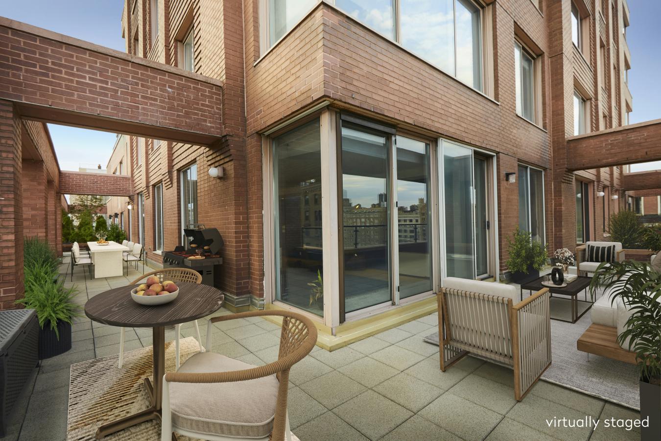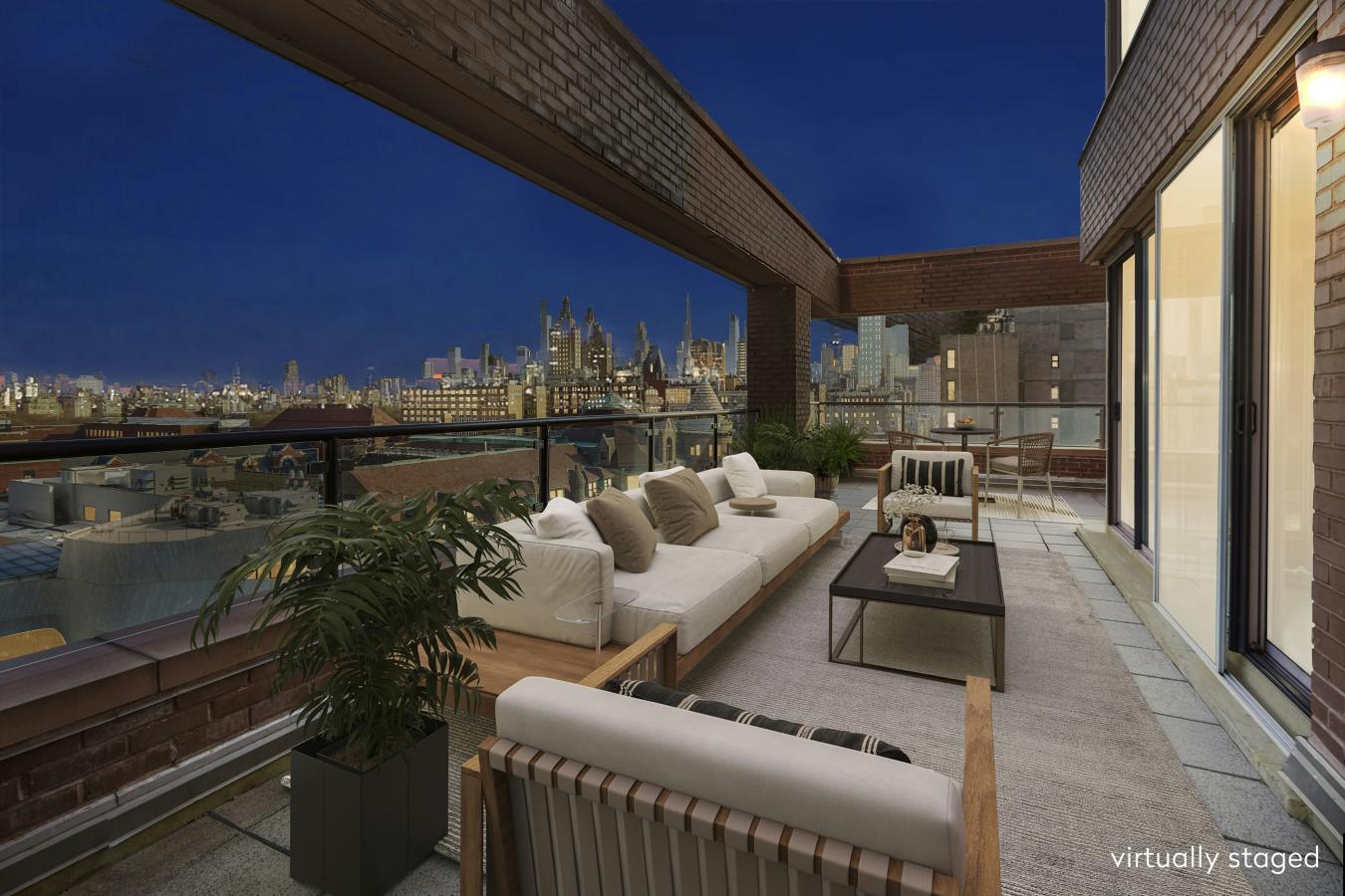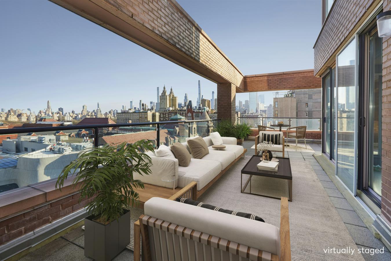 A Private Garden in the Sky There are homes-and then there are rare vantage points from which the city reveals itself in its most poetic form. Perched high above the Upper West Side, Residence 14A is one such place. A corner home of remarkable scale and light, it captures uninterrupted, protected views over Central Park and the architectural grandeur of the American Museum of Natural History-a living tableau that shifts with the seasons and the hour. Inside, the great room unfolds with quiet confidence. Sunlight pours through walls of glass, illuminating wide-plank oak floors and beamed ceilings, while a hand-finished Venetian plaster wall introduces depth and artistry. The space is both expansive and intimate-designed for elegant entertaining and effortless daily living. The kitchen is seamlessly integrated yet distinctly refined: a sculptural island anchors the room, complemented by granite surfaces and a suite of top-tier appliances. It is a space that invites conversation, connection, and gathering. And yet, the defining moment of this home lies just beyond. Through a series of glass doors, the interior dissolves into an extraordinary private terrace-nearly 800 square feet of open-air living. Rare in both scale and accessibility, it wraps the residence in light and possibility. Morning light filters softly across its expanse, afternoons linger in quiet sun, and evenings unfold against a backdrop of skyline and treetops. Designed with multiple zones for dining, lounging, and entertaining, it is less an outdoor space than a true extension of the home-a garden suspended above the city. The primary suite is a study in calm and refinement, offering a custom-designed walk-in closet, a spa-quality bath with radiant heated floors and steam shower, and direct terrace access. The secondary bedroom, equally generous, is thoughtfully appointed with a built-in workspace balancing comfort with function. Every element has been curated with intention. Motorized shades, a steam oven, bespoke storage, and integrated systems speak to a level of finish that is both luxurious and discreet. The Park Belvedere is among the Upper West Sides most established white-glove condominiums, offering 24-hour doorman and concierge service, a resident manager, and a full complement of amenities. Its reputation is one of quiet excellence, where service is seamless and privacy is paramount. Just beyond, the neighborhood unfolds in its most iconic form: Central Park at your doorstep, the Rose Center for Earth and Space moments away, and a vibrant tapestry of restaurants, boutiques, and cultural institutions within easy reach. This is not simply a residence. It is a composition of light, space, and perspective-an elevated way of living in New York at its most timeless.