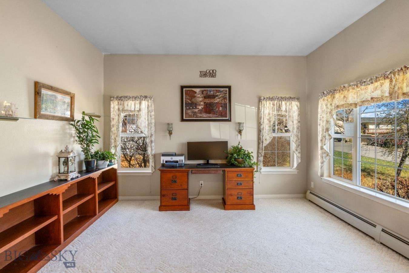 Set against a backdrop of expansive views and open farmland, this exceptional 4-bedroom plus den property offers the rare combination of a peaceful country setting just minutes from downtown Bozeman. Whether enjoying a quiet morning coffee on the covered front porch or unwinding on the back deck with its retractable awning, the setting invites you to slow down and take in the surrounding beauty and wide-open skies. The thoughtfully landscaped grounds feature a striking three-tiered landscape bed bordering an agricultural field, along with mature trees, shrubs, underground sprinklers, and a partially fenced area ideal for pets. With no HOA and a paved RV pad allowing for seasonal parking of campers or boats, the property offers both freedom and functionality. Inside, the spacious main level is designed for comfortable living and entertaining, featuring a mudroom, laundry area, open kitchen and dining space, formal dining room, and a large living room anchored by a fireplace, along with a versatile den. The expansive primary suite serves as a private retreat, complete with dual vanities, a walk-in shower, and a jetted soaking tub. An attached extra-large two-car garage provides additional space for storage, recreational gear, or a workshop setup. Additional features include a water softener, central vacuum, and included washer and dryer. Offering space, flexibility, and an unmatched setting so close to Bozeman, this property presents an exceptional opportunity to enjoy Montana living at its finest.