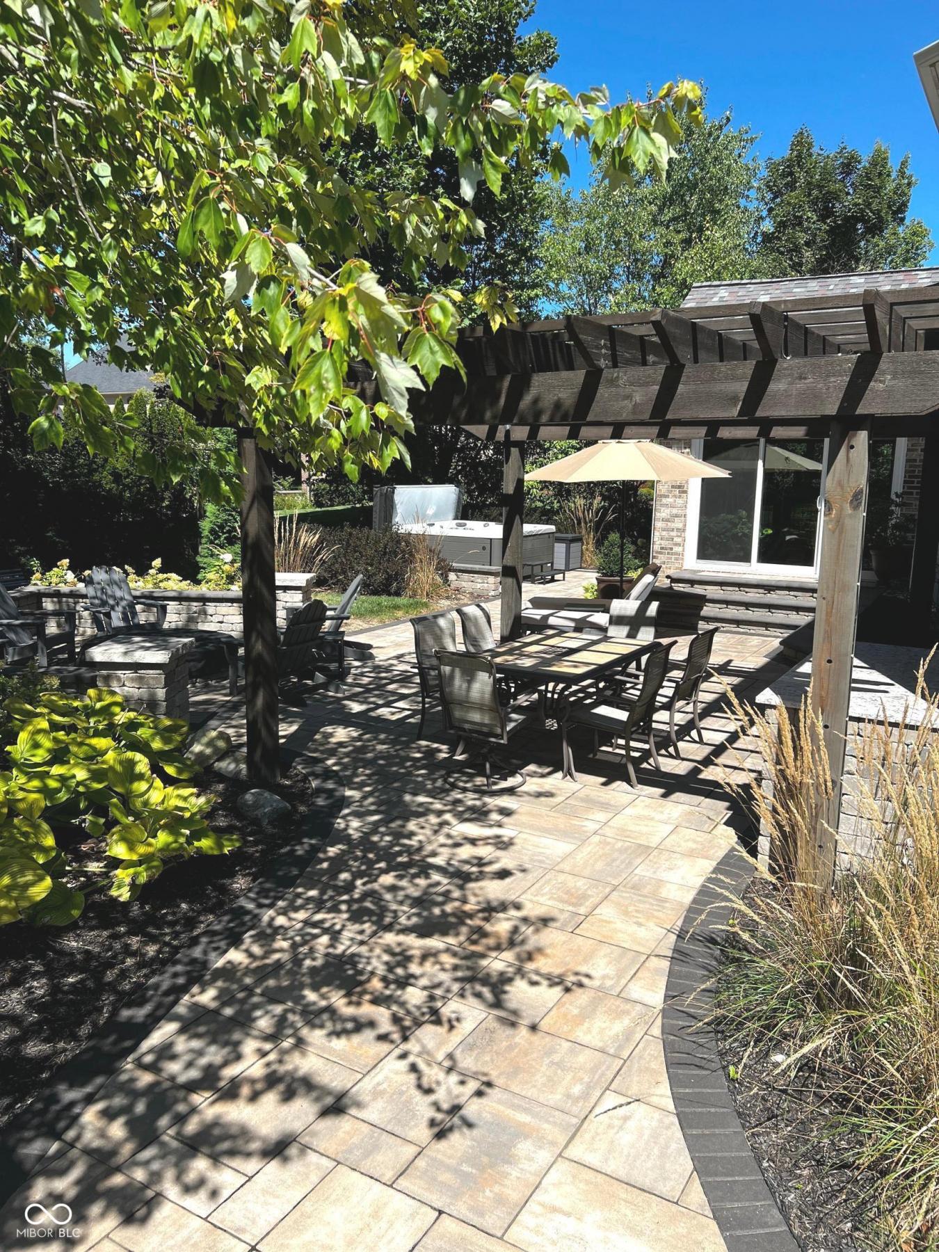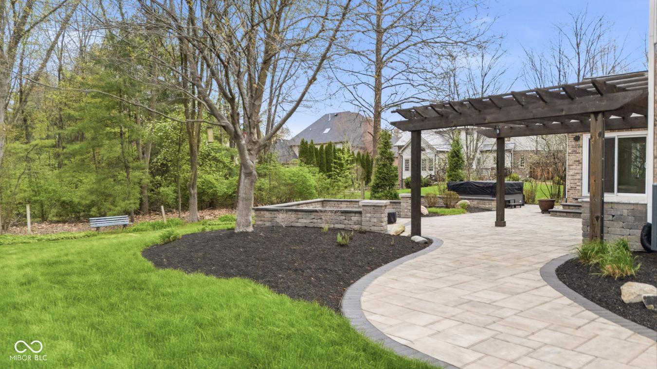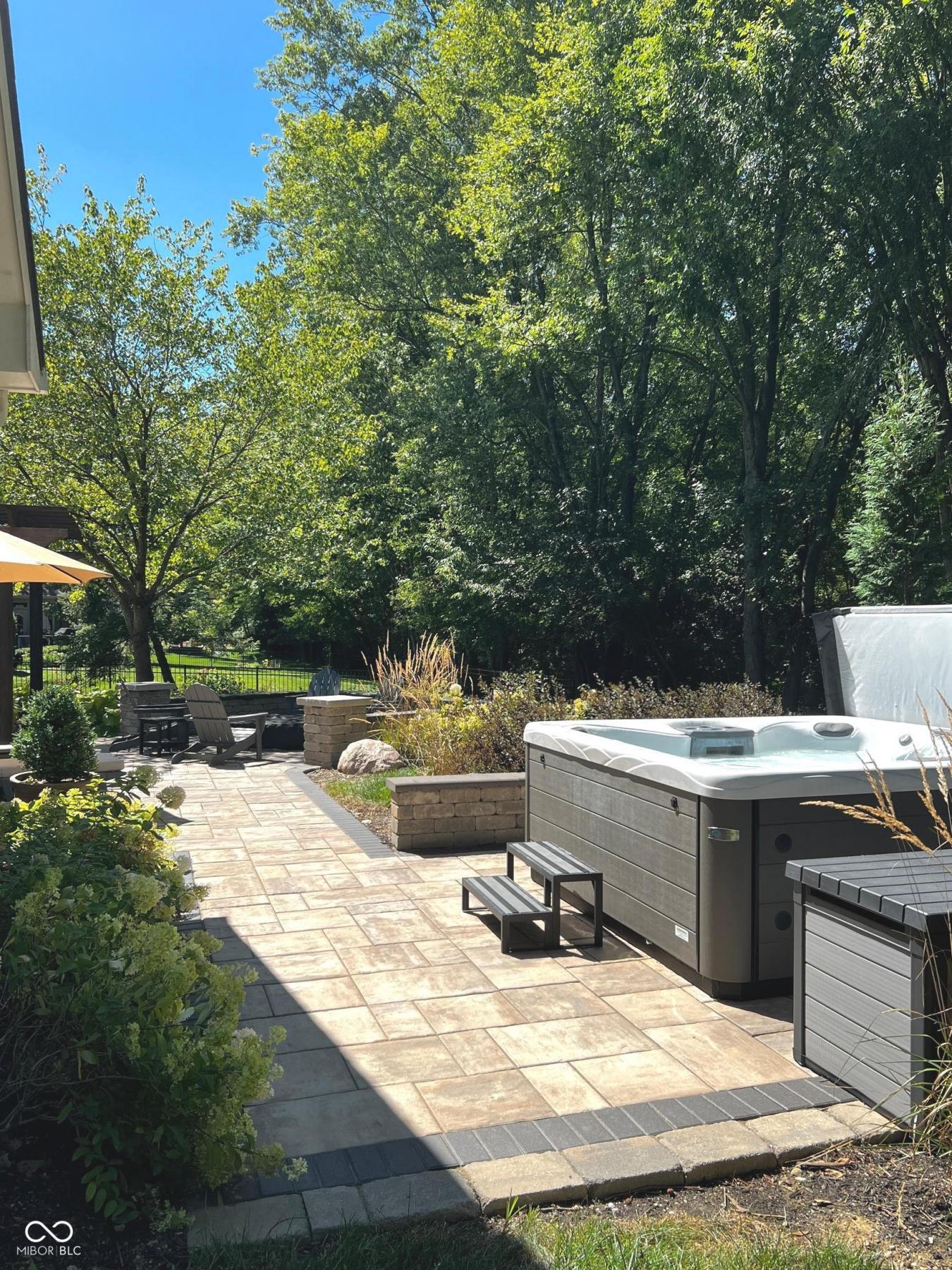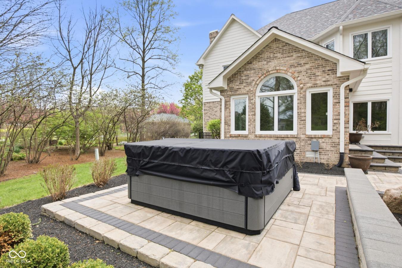 Beautiful Custom-Built Brick Home with Finished Daylight Basement in Carmels Popular Woodfield Neighborhood! Situated on an exceptional lot backing to a large serene woods. This home offers a lovely two year new paver patio with an incredibly designed Breeo smokeless fire pit, jacuzzi hot tub (holds 8) and pergola-perfect for outdoor entertaining.