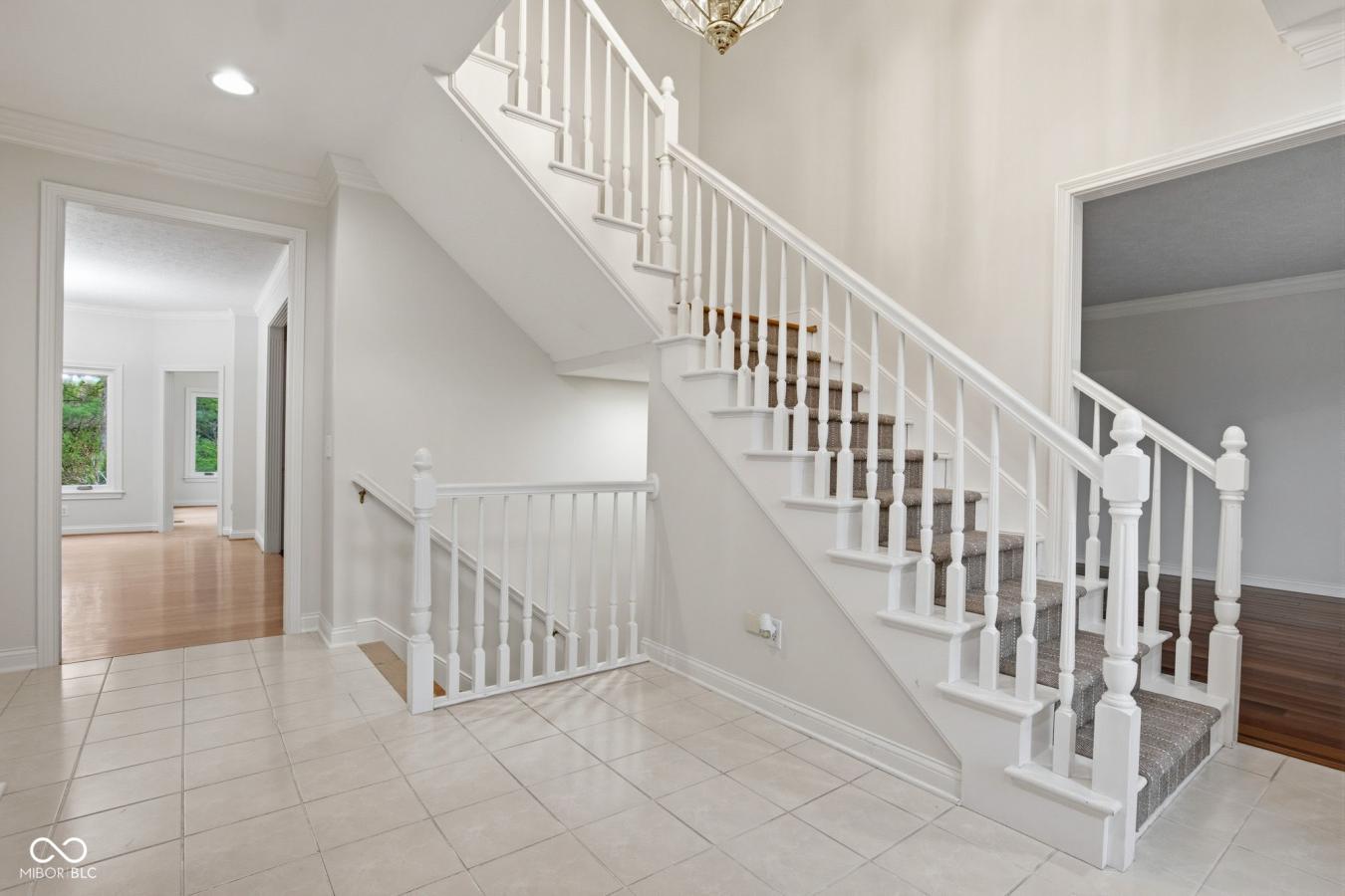 Beautiful Custom-Built Brick Home with Finished Daylight Basement in Carmels Popular Woodfield Neighborhood! Situated on an exceptional lot backing to a large serene woods. This home offers a lovely two year new paver patio with an incredibly designed Breeo smokeless fire pit, jacuzzi hot tub (holds 8) and pergola-perfect for outdoor entertaining. A striking entry welcomes you inside to a bright and open floor plan featuring a well-appointed kitchen with white cabinetry, new gas cooktop with down-draft, breakfast bar, and generous breakfast area. Enjoy peaceful views from the cheerful sunroom, while the impressive great room showcases built-ins and a cozy fireplace. The home offers beautiful hardwood flooring in each generously sized bedrooms, along with the convenience of both front and rear staircases. Each Bedroom has access to a full bath. The primary suite features an elegant tray ceiling for added architectural detail. The finished lower level with new carpet provides additional living space with a large recreation room and a versatile office/den-ideal for work or relaxation as well as a full bathroom. A wonderful opportunity in one of Carmels most desirable communities! Replaced to triple pane efficient windows 19, Furnace/AC 18, Roof 19.
