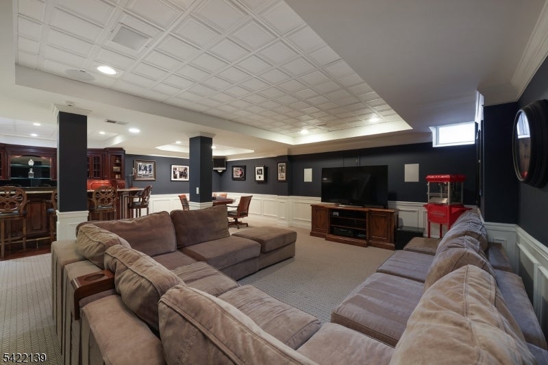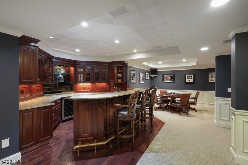 Welcome to this exceptional residence nestled on a breathtaking, park-like property that offers both privacy and serenity. This beautifully maintained home combines elegance, comfort, and functionality in every detail. Step inside to discover a thoughtfully designed layout featuring a spacious living room, formal dining room, and a private office-perfect for todays flexible lifestyle. The inviting family room is a true showstopper, highlighted by a stunning coffered ceiling and warm, welcoming ambiance. At the heart of the home is a gourmet kitchen, ideal for both everyday living and entertaining, complemented by a sun-drenched sunroom that brings the outdoors in and offers picturesque views year round. The fully finished basement expands your living space with incredible versatility, featuring a dedicated exercise room, full bathroom, multiple entertainment area, and a full bar-perfect for hosting gatherings or relaxing at home. Additional highlights include a whole-house generator for peace of mind and beautifully landscaped grounds that create your own private retreat. This is a rare opportunity to own a home that truly has it all-luxury, space, and an unbeatable setting.