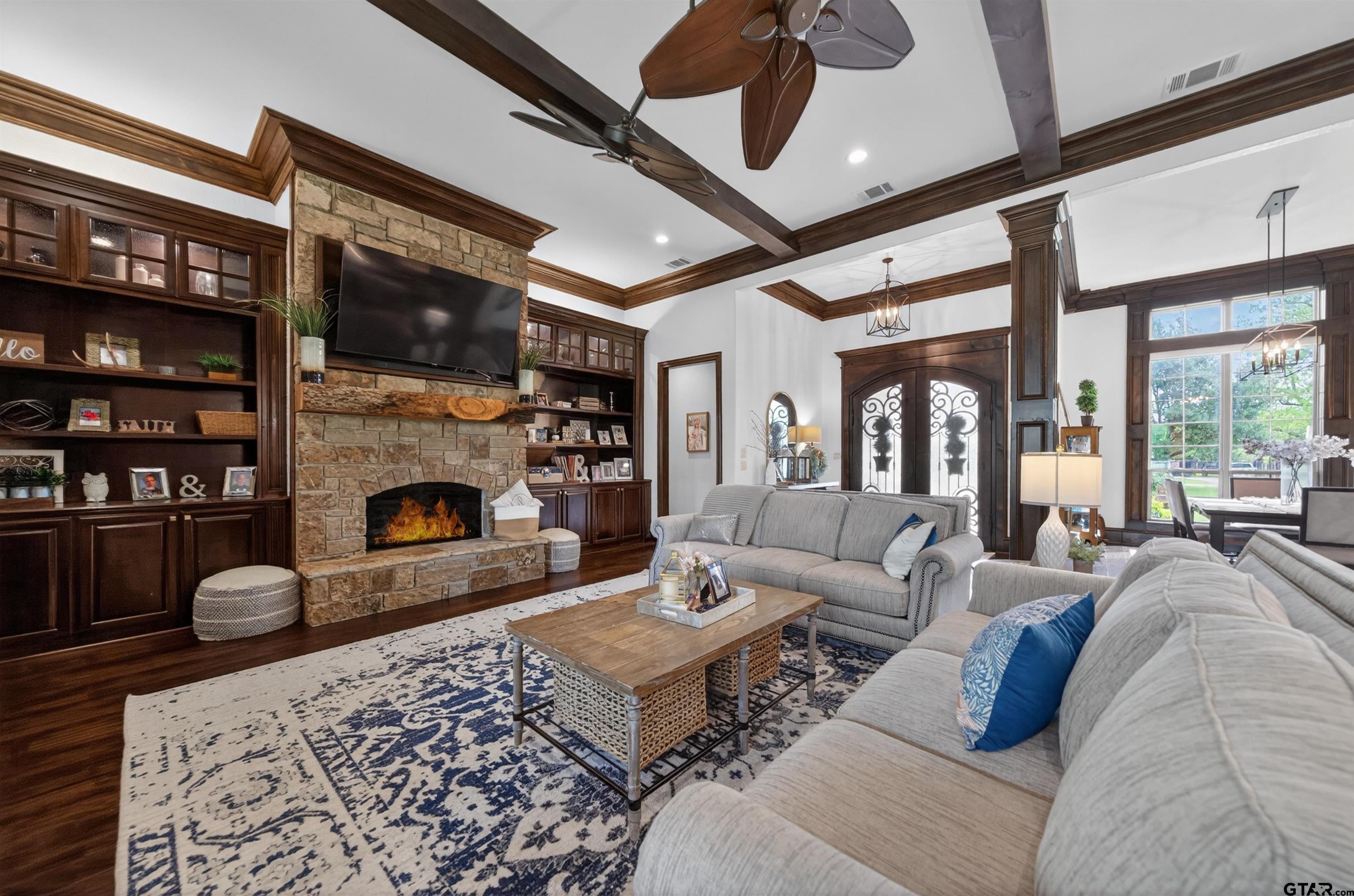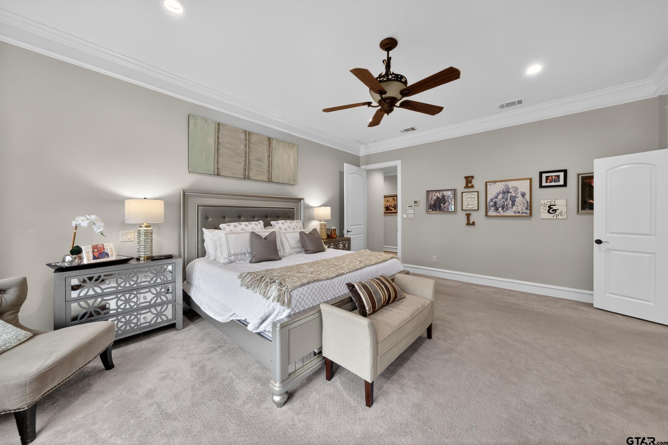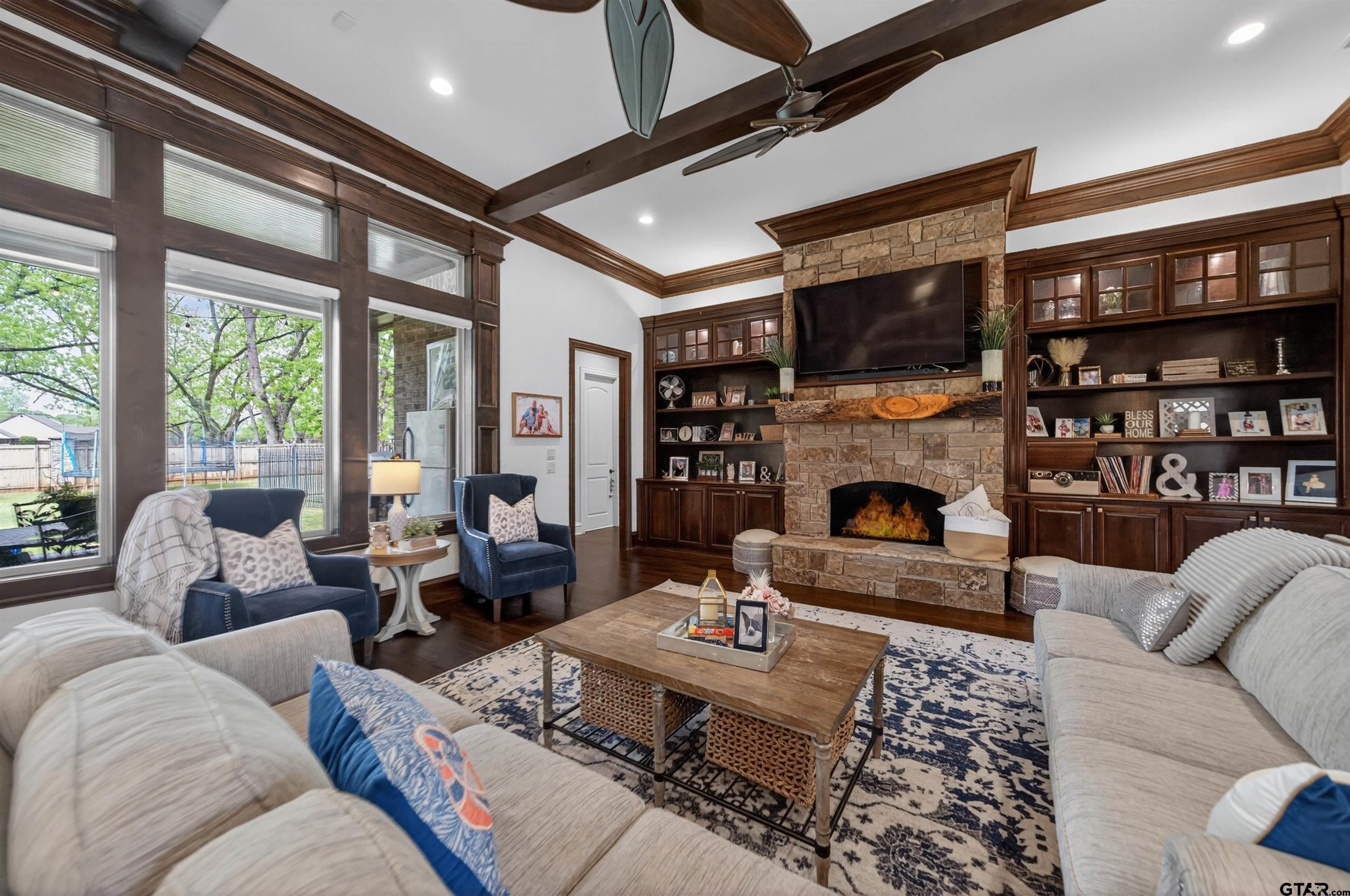 Welcome to your private East Texas Retreat in the sought after Pecan Valley Ranch community in Bullard. Nestled on a sprawling 1.17 ac lot surrounded by mature pecan trees, this stunning 5075 sf home offers the perfect blend of luxury, comfort and functionality for modern family living. This thoughtfully designed home features room for everyone- boasting 6 spacious bedrooms and 5.5 bathrooms (all but 1 offer ensuite bathrooms), a dedicated office, an expansive game room with built-in bunk beds, and multiple living areas ideal for entertaining or just relaxing. The warm and inviting living room centers around a beautiful gas fireplace, while high end finishes such as solid wood interior doors, granite surfaces, and designer lighting elevate the home throughout. The recently updated paint and carpet give the entire home a fresh, move-in-ready feel. The chefs kitchen featuring ice machine, double built-in frig and freezer and gas cooktop, large island and a serving bar flows seamlessly into the main living spaces creating the perfect environment for gatherings both large and small. Step outside and enjoy the peace and privacy of you acreage, complete with extra parking and a fully fenced backyard. Pet lovers will appreciate the unique dedicated dog room with its own separate dog run! Additional highlights include a oversized 3 car garage and a whole house generator providing comfort and peace of mind year round. Dont miss out on this home located within the highly regarded Bullard Independent School District, offering over 1 ac lot, large fenced yard and plenty of room for your family and friends!