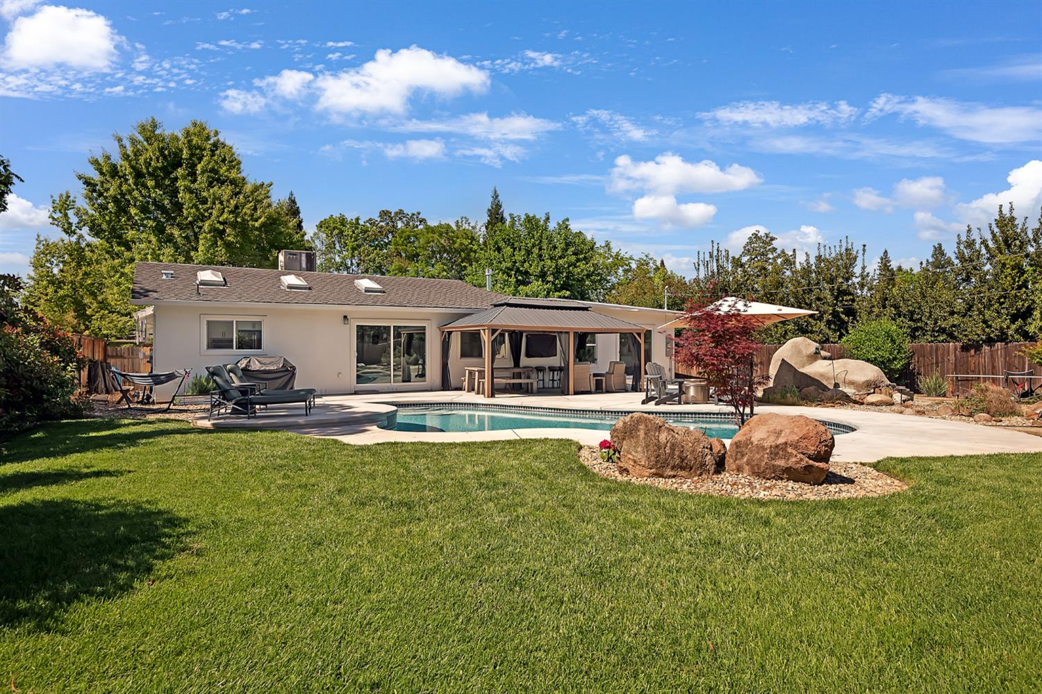 Welcome Home to Sacramentos highly desirable Arden Park! Fall in love with this stunning single story. Boasting 4 beds office, 2.5 baths, 2505 sq. ft. situated on almost 1/3 of an acre. This beauty was fully renovated from top to bottom in 2021. Enjoy the exceptional flow & bright natural light. A private office/den greets you as you walk through the front door, and beyond that, you will be struck by the open floor plan, the front to back views, and beautiful newer flooring. The kitchen is adorned with custom cabinetry, richly stained hood, eat-at peninsula, rich quartz counters, and stainless steel appliances. The remote Master Suite is equipped with two walk-in closets, both with custom built in cabinets/organizers. Step outside the attached slider into your own backyard oasis. Other features include three large bedrooms, laundry room with custom built-ins, wet bar, and gas fireplace insert. Step outside to your entertainers dream. A sparkling free form pool, sport court, covered awning, sunning area, and relaxing custom water feature. This home has been completely retrofitted with all new plumbing & electrical, and the presidential comp roof has a long life ahead. Take advantage of all Arden Park offers; great neighborhood, fantastic schools, and fun community family events. Just a short distance to shops, restaurants and easy freeway access.
