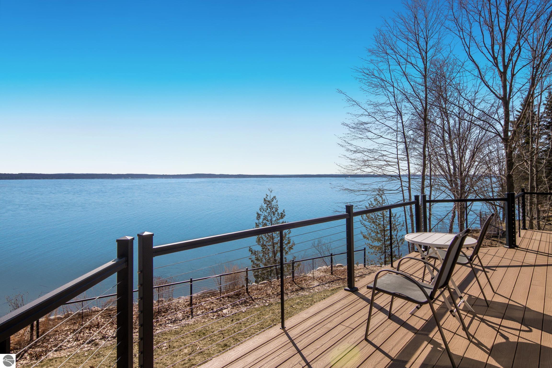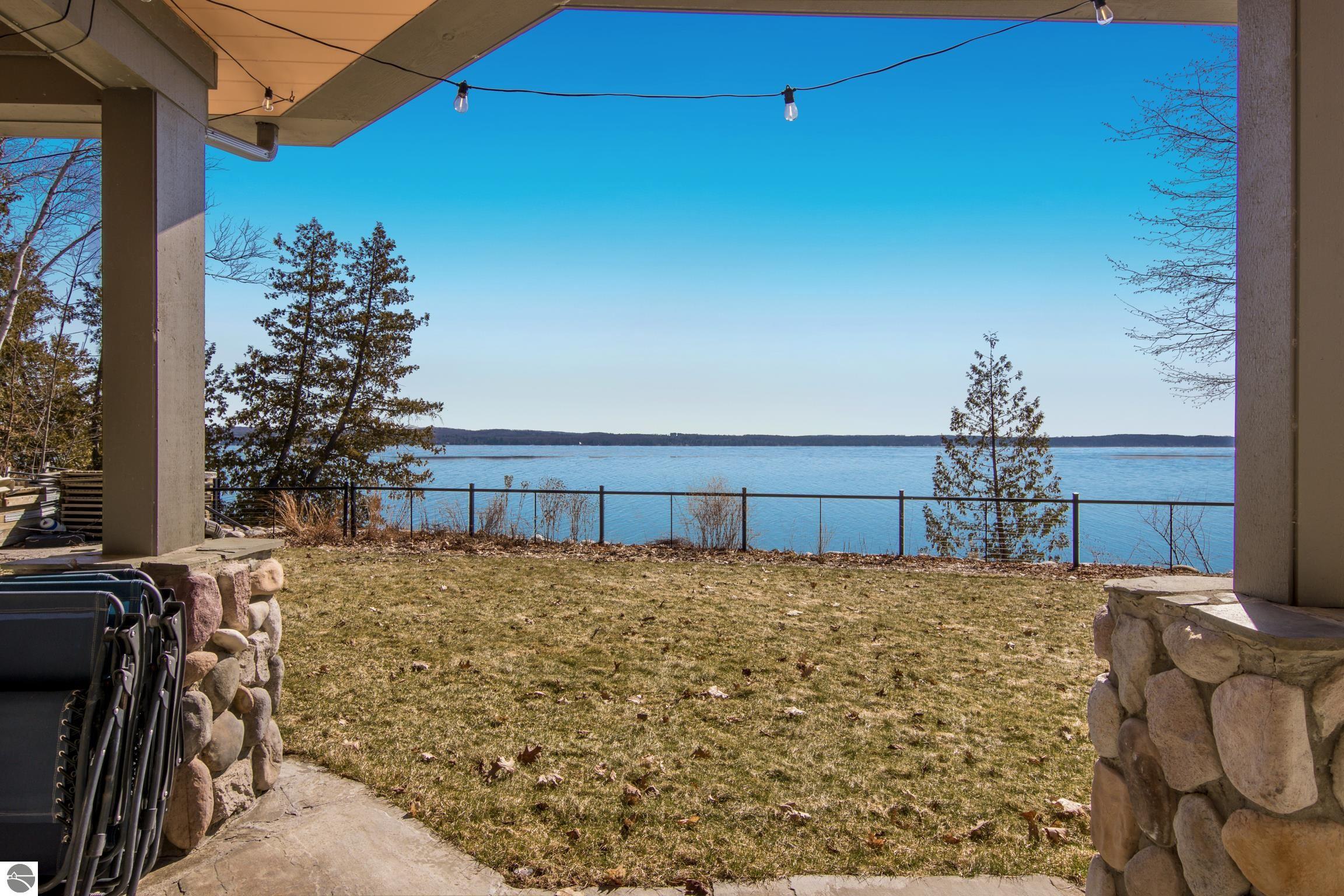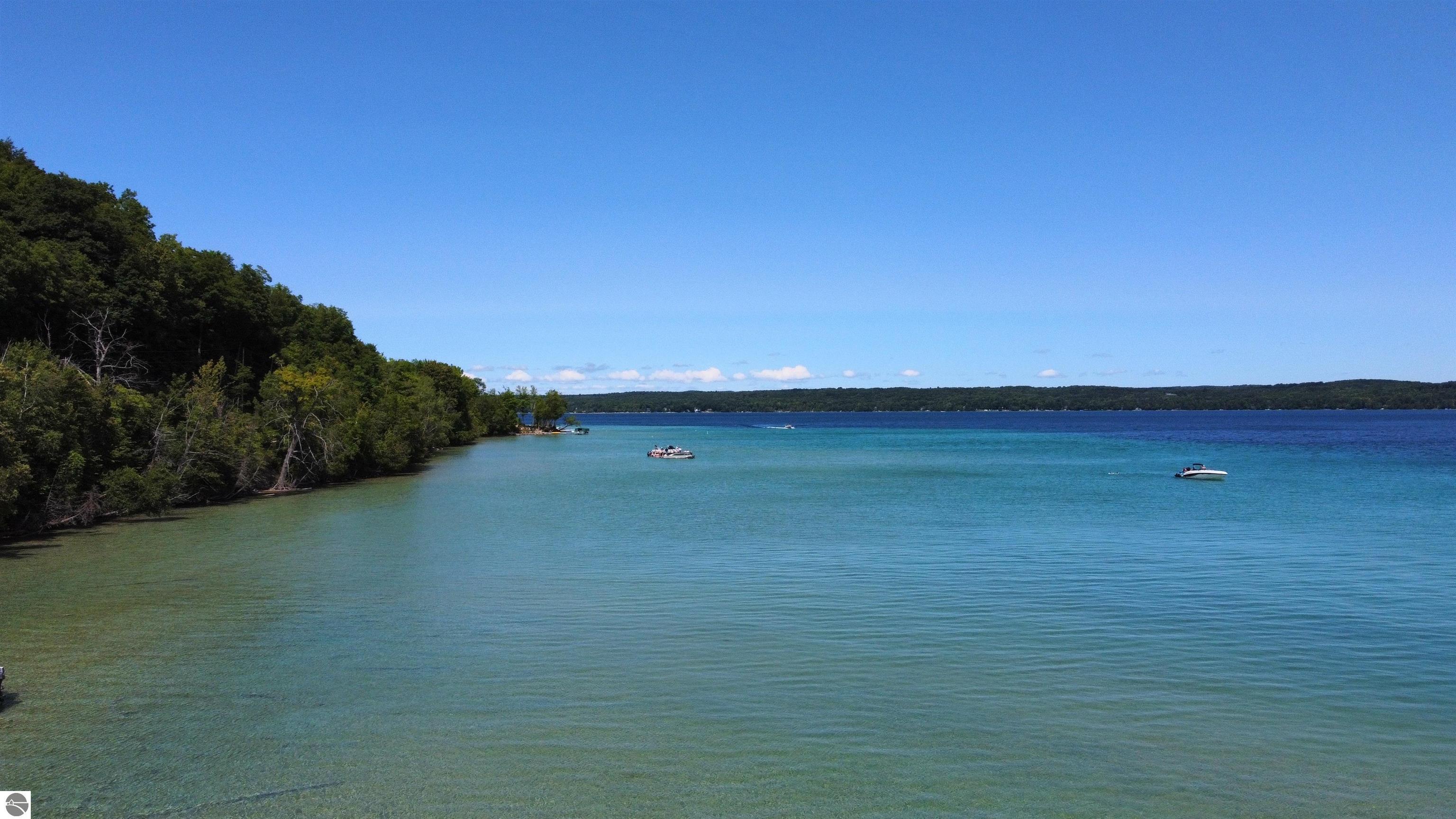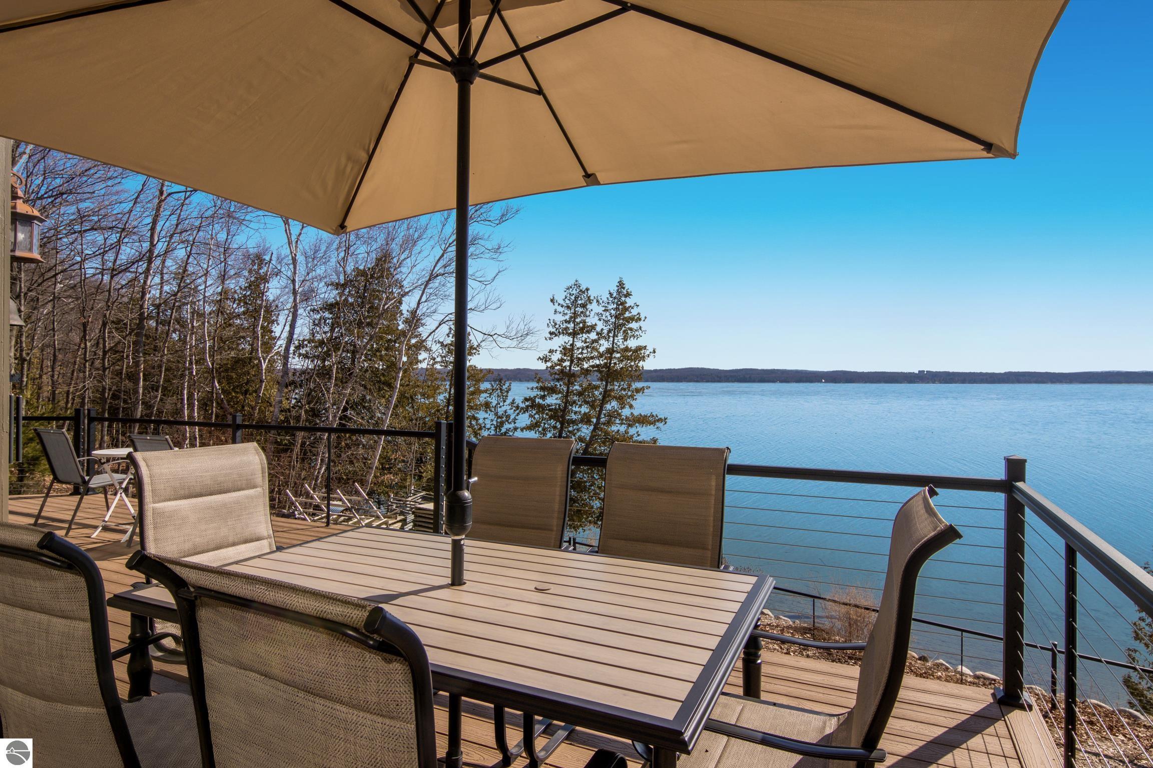 TORCH LAKE LIVING AT ITS FINEST! This the home you have been dreaming of on beautiful Torch Lakes Turtle Cove, a coveted and wind protected cove, with packed sand frontage. Imagine your kids and grandkids splashing in the clear blue waters, learning to waterski, catching the wind on their sailboat on a clear summer morning, dropping a fishing line and the thrill of the first tug on the bobber, this is lake life, where rest, relaxation and memories happen every day. This newly updated home is just waiting for you to experience the best of Northern Michigan living. As you begin your tour of this lovingly cared for home you will be impressed with the architectural details you will discover throughout. The main floor is enhanced by an open living areas with abundant glass allowing natural light and breathtaking views. Gather in front of the beautiful stone fireplace in the living room after a day spent on the water. A designer kitchen with beautifully painted cabinets; new Bosch refrigerator and dishwasher; New Thermador cooktop; bar seating and built in desk area. Serve up your culinary creations in the formal dining room. Two primary owners suites each a tranquil retreat featuring spa like bathrooms and spacious closets. The walkout lower level features a beautiful second kitchen with stone accents and large bar with seating; french doors for seamless indoor to outdoor living; family room; large bedroom suite with spacious private bath; guest bath and mechanical room. Additional amenities include 6 bedrooms, 7 baths; newly refinished hickory wood floors, pine walls and ceilings on the main floor; 6-panel doors; a large laundry room; central air conditioning; 2-car attached garage and more. Get ready to relax and immerse yourself in the stunning surroundings from the spacious deck with updated modern cable system railings and maintenance free composite decking. Entertaining will be a breeze with multiple outdoor living spaces.