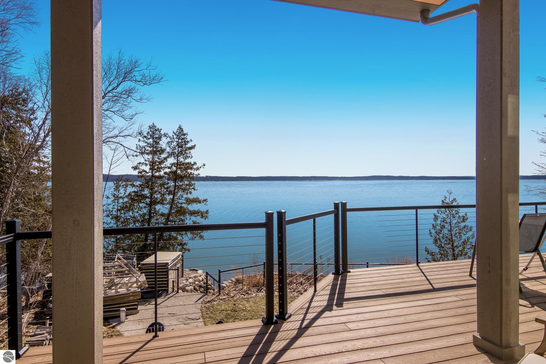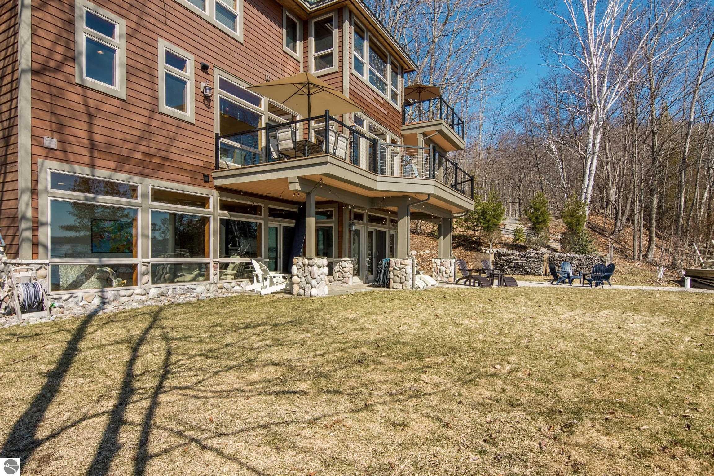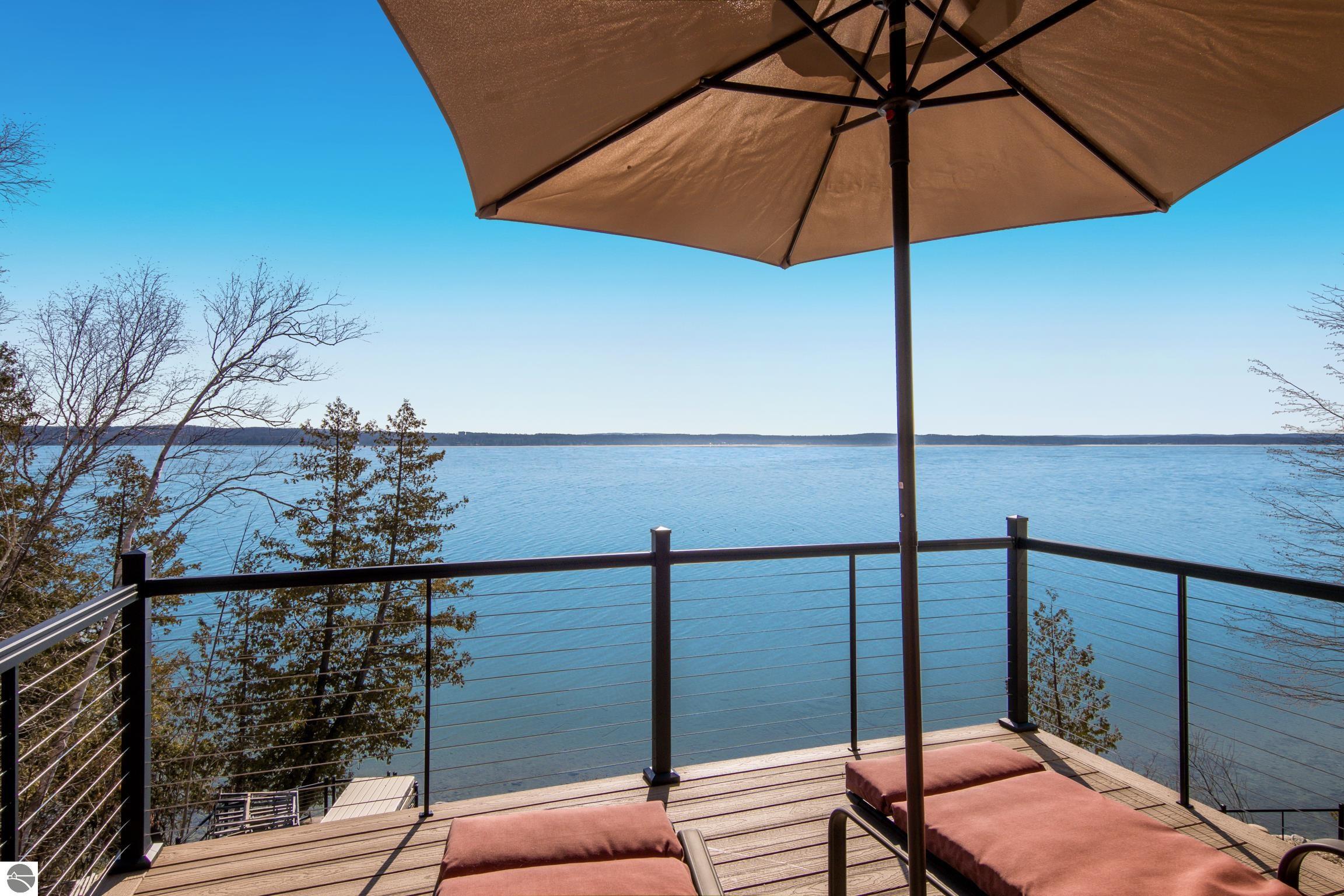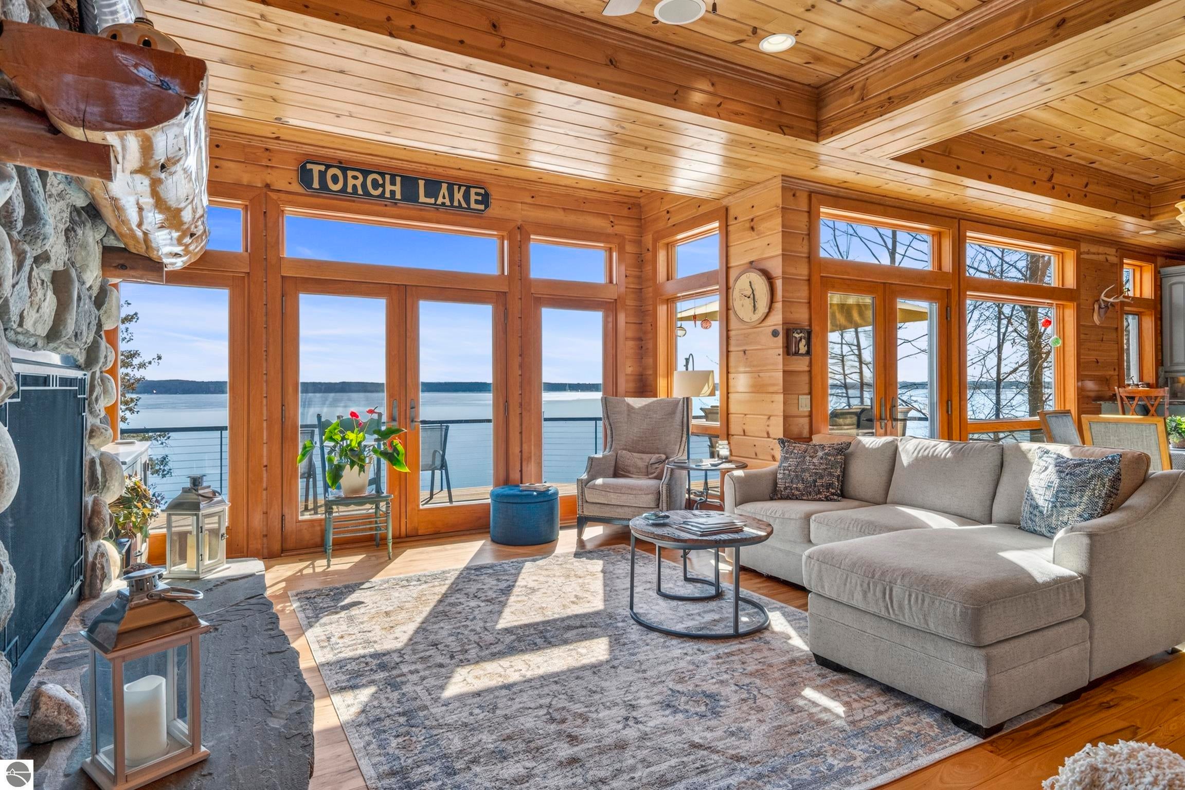 TORCH LAKE LIVING AT ITS FINEST! This the home you have been dreaming of on beautiful Torch Lakes Turtle Cove, a coveted and wind protected cove, with packed sand frontage. Imagine your kids and grandkids splashing in the clear blue waters, learning to waterski, catching the wind on their sailboat on a clear summer morning, dropping a fishing line and the thrill of the first tug on the bobber, this is lake life, where rest, relaxation and memories happen every day. This newly updated home is just waiting for you to experience the best of Northern Michigan living. As you begin your tour of this lovingly cared for home you will be impressed with the architectural details you will discover throughout. The main floor is enhanced by an open living areas with abundant glass allowing natural light and breathtaking views. Gather in front of the beautiful stone fireplace in the living room after a day spent on the water. A designer kitchen with beautifully painted cabinets; new Bosch refrigerator and dishwasher; New Thermador cooktop; bar seating and built in desk area. Serve up your culinary creations in the formal dining room. Two primary owners suites each a tranquil retreat featuring spa like bathrooms and spacious closets. The walkout lower level features a beautiful second kitchen with stone accents and large bar with seating; french doors for seamless indoor to outdoor living; family room; large bedroom suite with spacious private bath; guest bath and mechanical room. Additional amenities include 6 bedrooms, 7 baths; newly refinished hickory wood floors, pine walls and ceilings on the main floor; 6-panel doors; a large laundry room; central air conditioning; 2-car attached garage and more. Get ready to relax and immerse yourself in the stunning surroundings from the spacious deck with updated modern cable system railings and maintenance free composite decking. Entertaining will be a breeze with multiple outdoor living spaces.