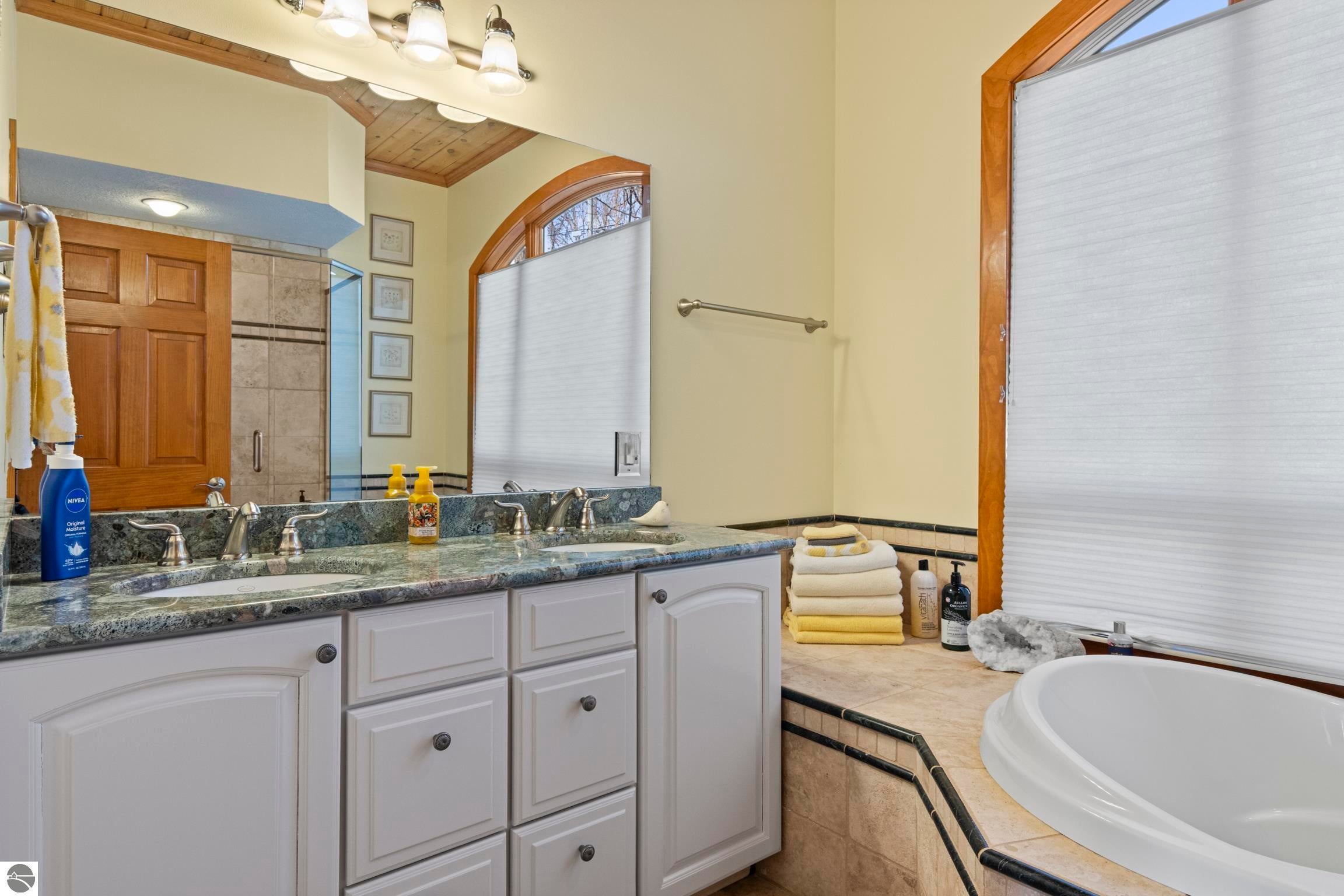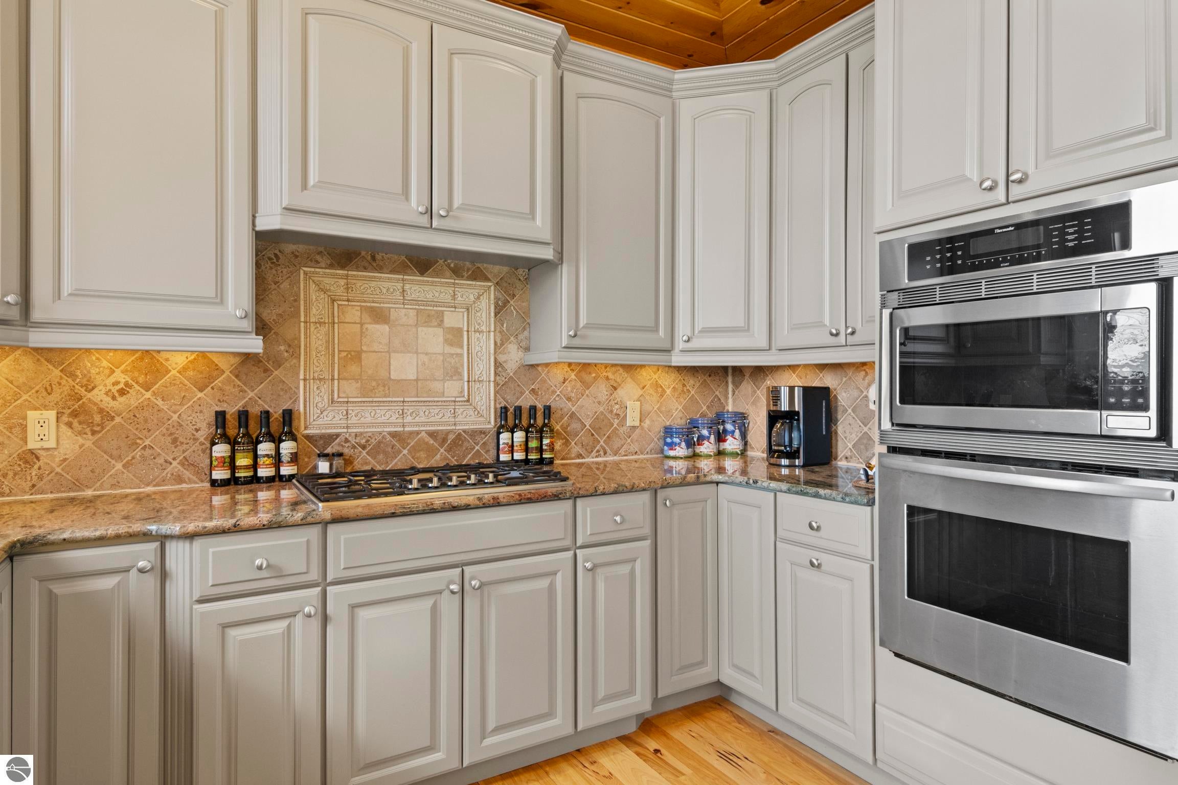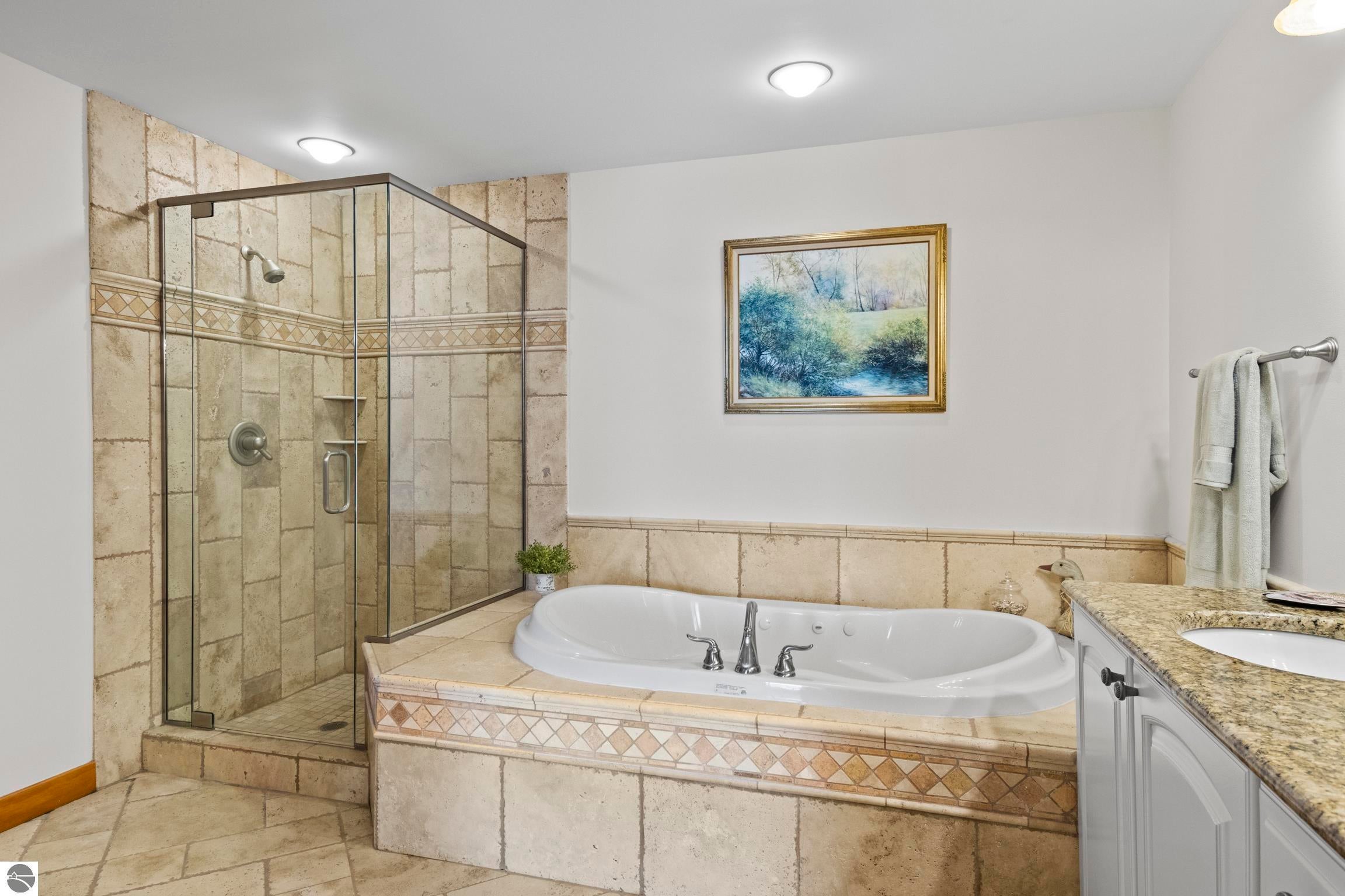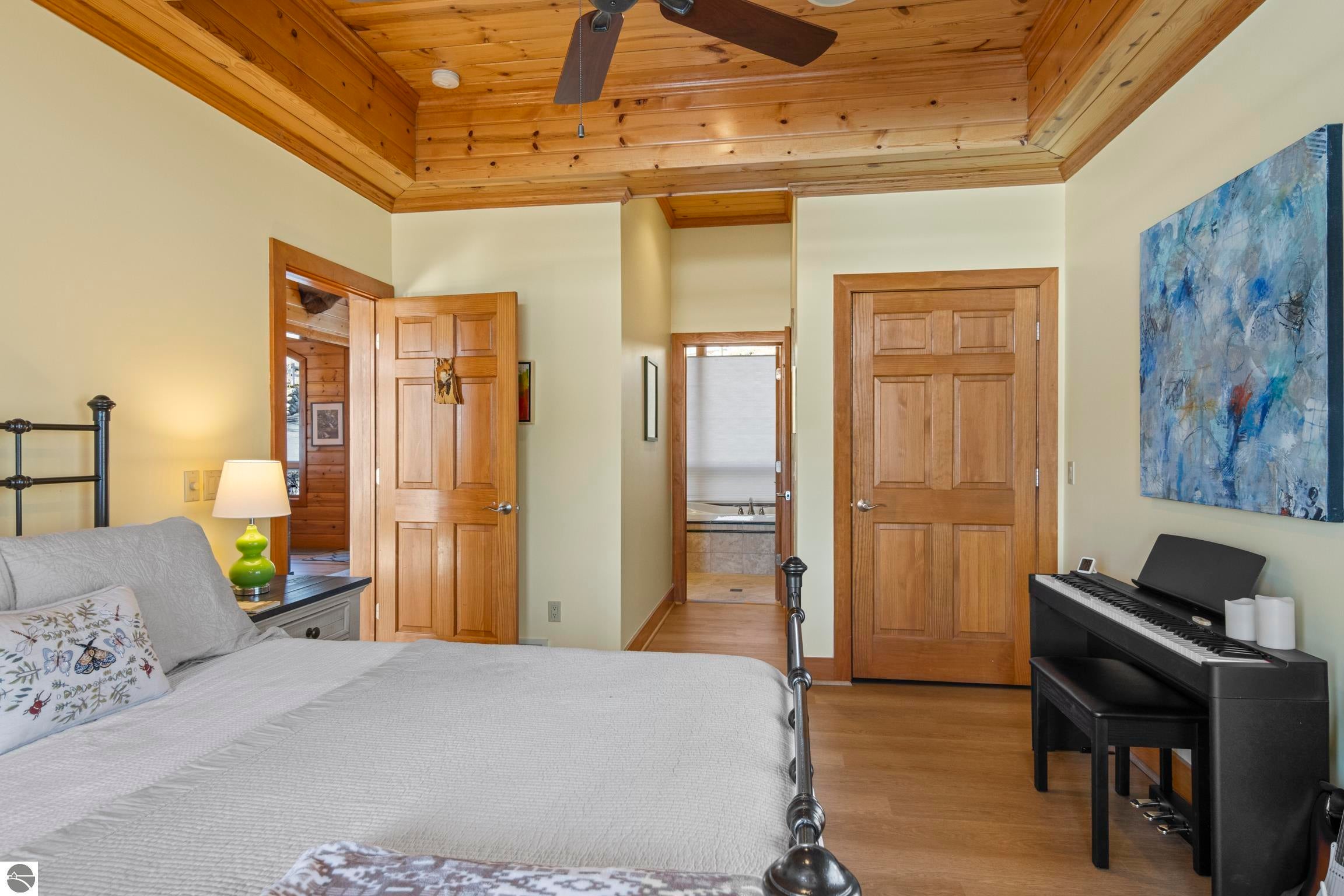 TORCH LAKE LIVING AT ITS FINEST! This the home you have been dreaming of on beautiful Torch Lakes Turtle Cove, a coveted and wind protected cove, with packed sand frontage. Imagine your kids and grandkids splashing in the clear blue waters, learning to waterski, catching the wind on their sailboat on a clear summer morning, dropping a fishing line and the thrill of the first tug on the bobber, this is lake life, where rest, relaxation and memories happen every day. This newly updated home is just waiting for you to experience the best of Northern Michigan living. As you begin your tour of this lovingly cared for home you will be impressed with the architectural details you will discover throughout. The main floor is enhanced by an open living areas with abundant glass allowing natural light and breathtaking views. Gather in front of the beautiful stone fireplace in the living room after a day spent on the water. A designer kitchen with beautifully painted cabinets; new Bosch refrigerator and dishwasher; New Thermador cooktop; bar seating and built in desk area. Serve up your culinary creations in the formal dining room. Two primary owners suites each a tranquil retreat featuring spa like bathrooms and spacious closets. The walkout lower level features a beautiful second kitchen with stone accents and large bar with seating; french doors for seamless indoor to outdoor living; family room; large bedroom suite with spacious private bath; guest bath and mechanical room. Additional amenities include 6 bedrooms, 7 baths; newly refinished hickory wood floors, pine walls and ceilings on the main floor; 6-panel doors; a large laundry room; central air conditioning; 2-car attached garage and more. Get ready to relax and immerse yourself in the stunning surroundings from the spacious deck with updated modern cable system railings and maintenance free composite decking. Entertaining will be a breeze with multiple outdoor living spaces.