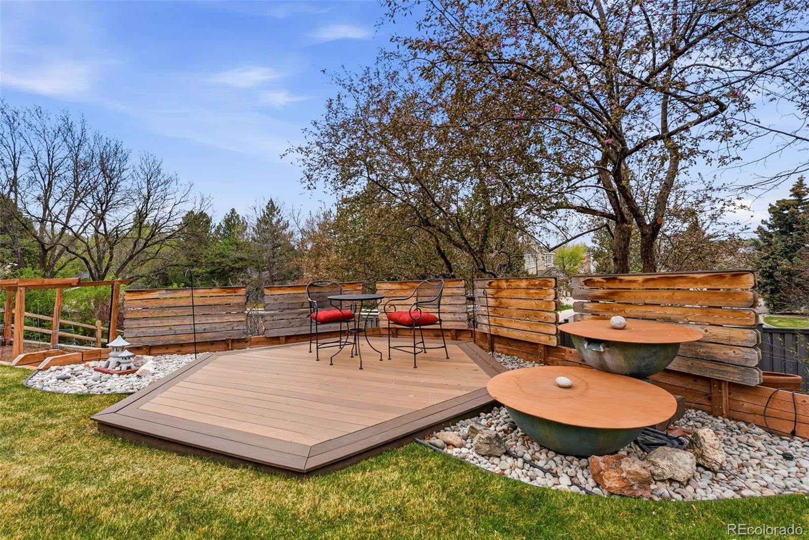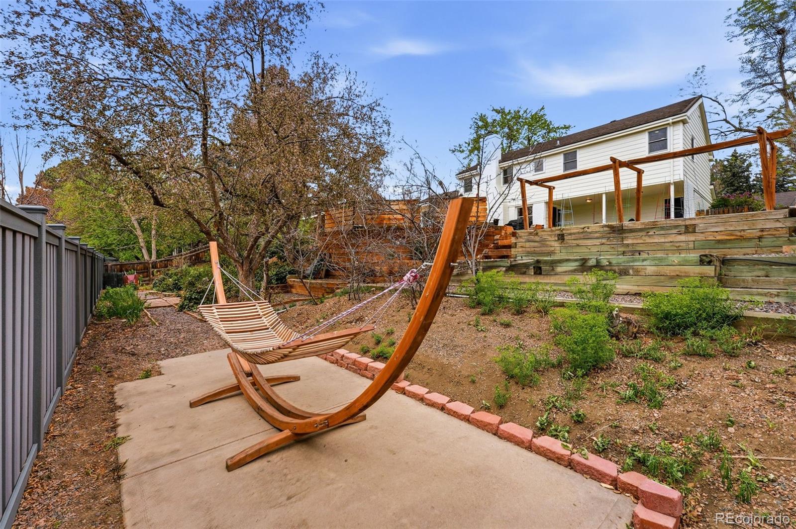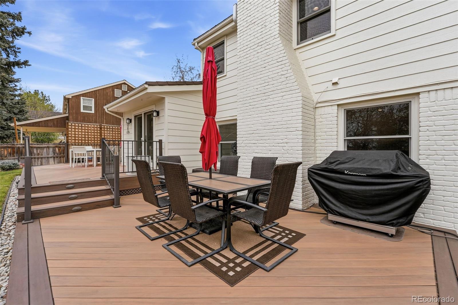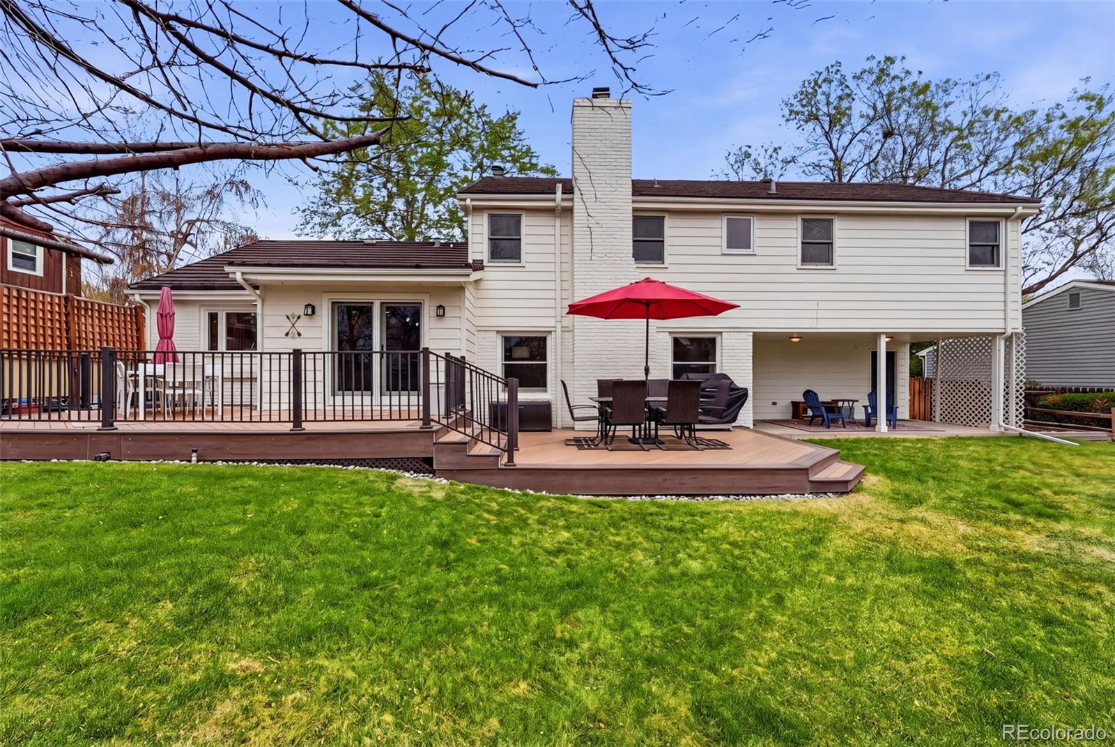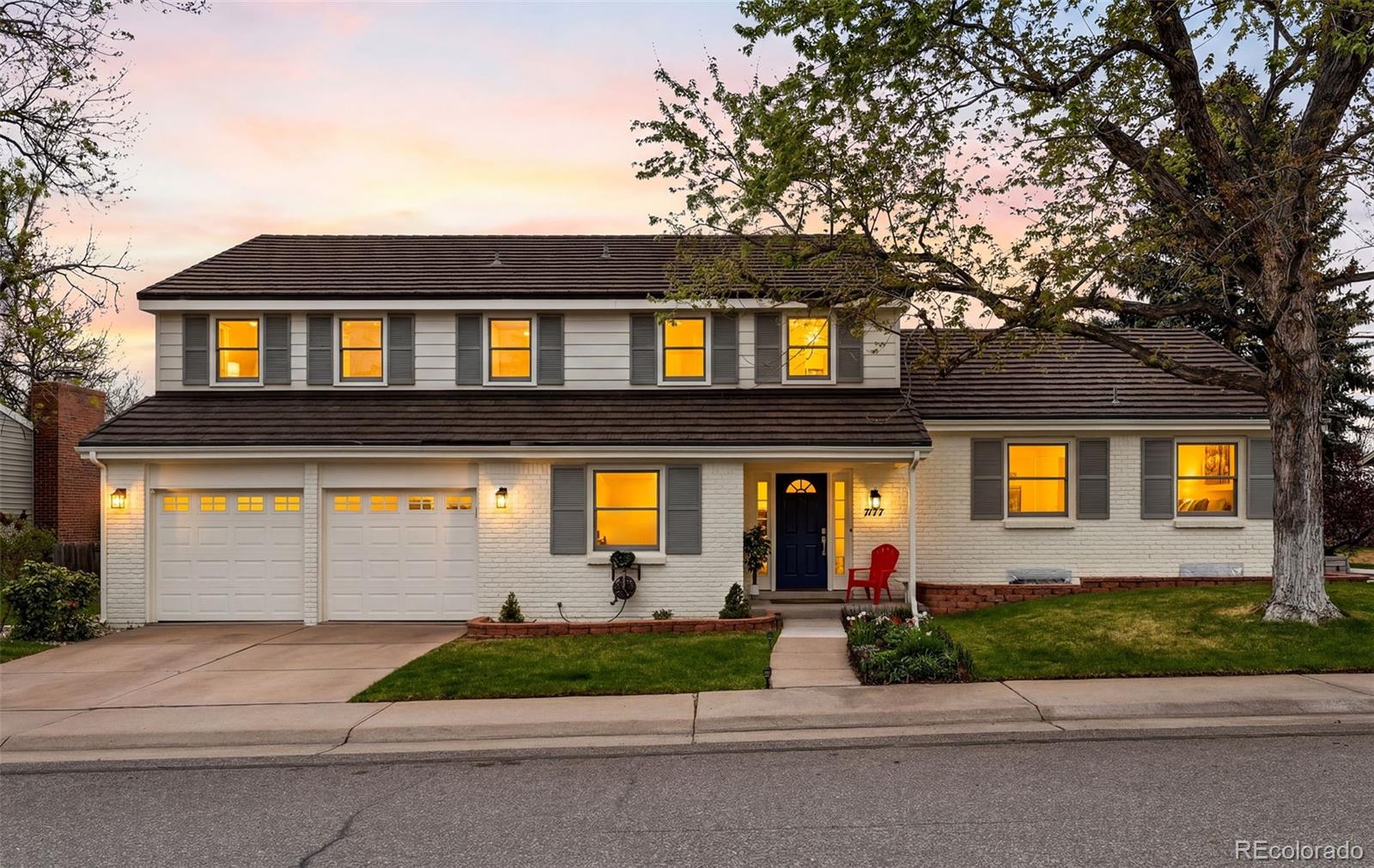 Settled on a peaceful, tree-lined street, this beautifully maintained home blends charm with thoughtful upgrades. A covered front porch opens to a bright interior featuring Andersen windows, wide-plank hardwood floors and elegant finishes throughout. Sunlight fills the open sitting and dining areas, leading to the stylish double island eat-in kitchen with stainless steel appliances, stone surfaces and views of the backyard. Glass doors open to two levels of decks overlooking a private, terraced backyard with mature trees, fountain, a south-facing garden and a patio with covered seating. Just below the kitchen, a cozy living room offers a gas fireplace and direct outdoor access. This level also includes a laundry room, large home office with custom built-ins, a powder room and access to the oversized 2-car garage. Upstairs, the freshly remodeled primary suite features a luxurious ensuite bath with a frameless glass-enclosed shower, dual vanity and linen storage plus walk-in closet. Three additional bedrooms and a full bath with a private water closet and laundry chute complete the upper level. The garden-level basement adds extra living space with a bright family room, bath and ample storage. Most recent upgrades: Primary suite (2026), furnace & A/C (2025), main floor office (2025), radon mitigation (2025), water heater (2024). Located in the award-winning Cherry Creek School District, with fantastic HOA amenities including pools, tennis courts, playgrounds, green belts and community events plus easy access to shopping, dining, south-suburban bike trails, I-25, E-470, Downtown Denver, DIA and the Rocky Mountains.