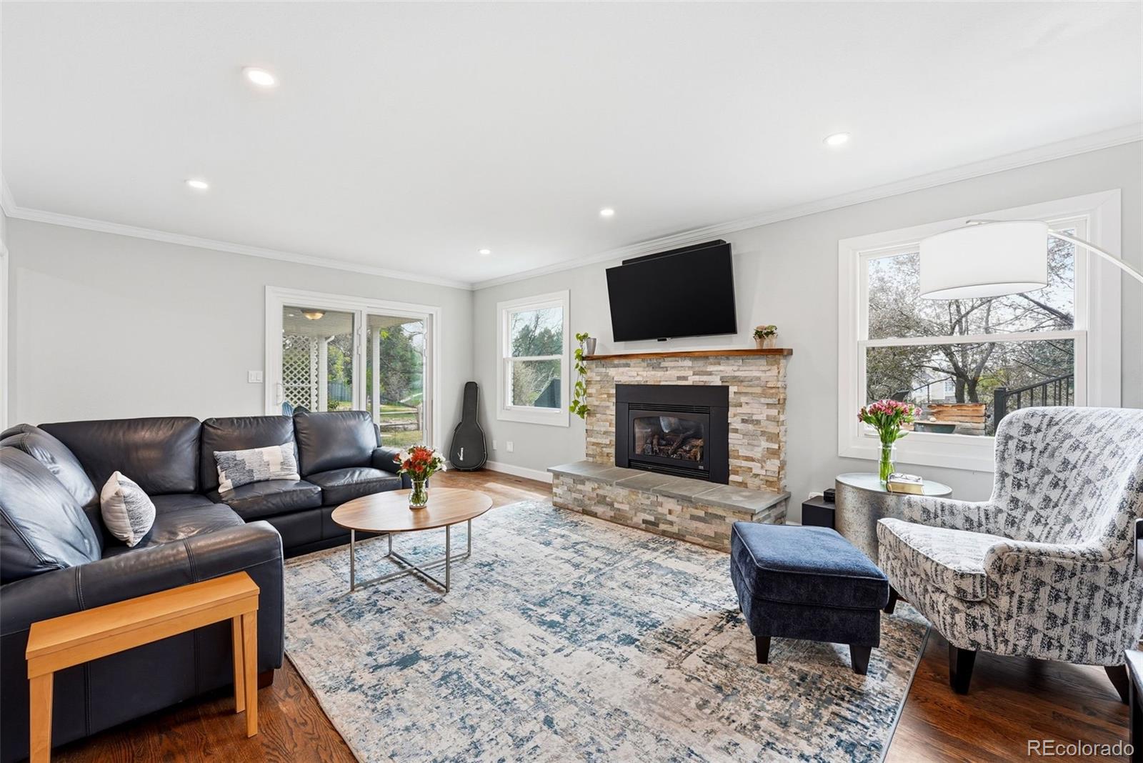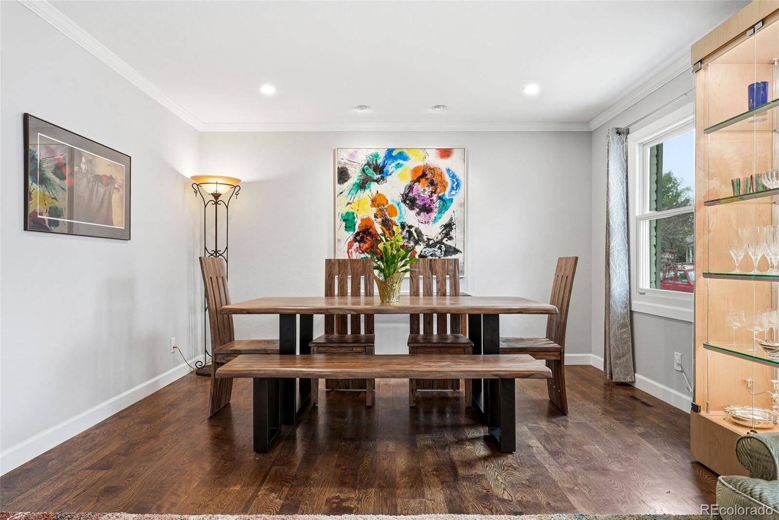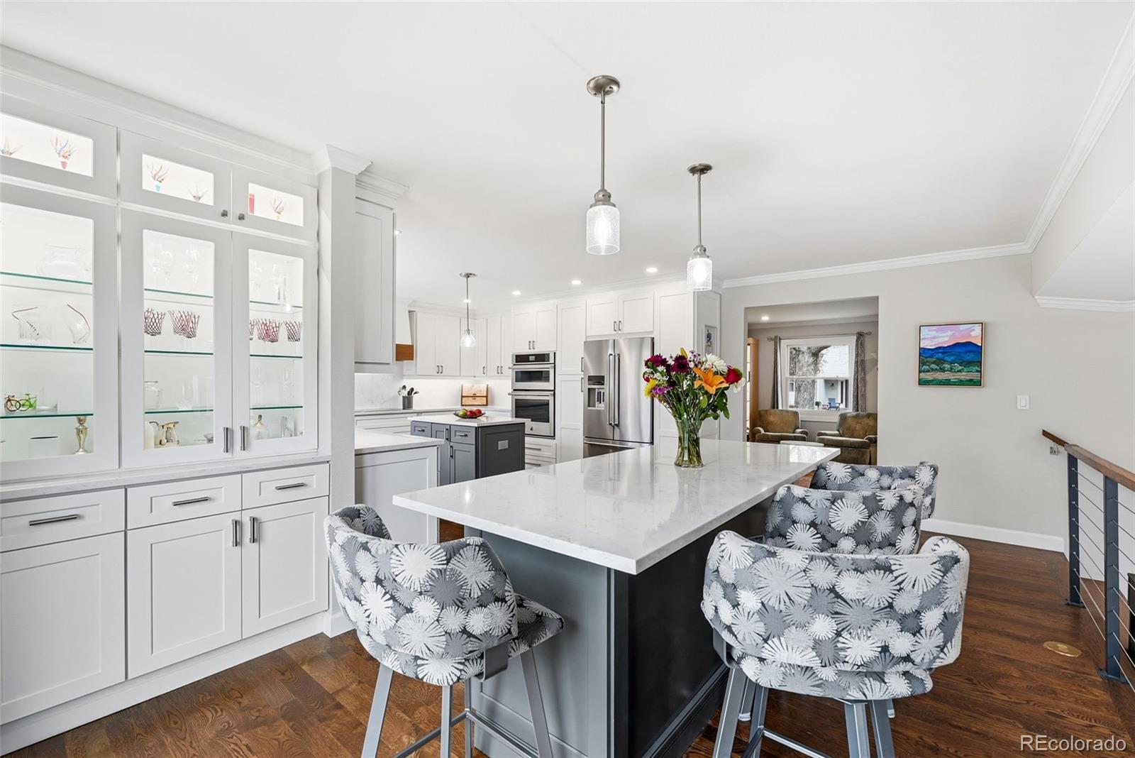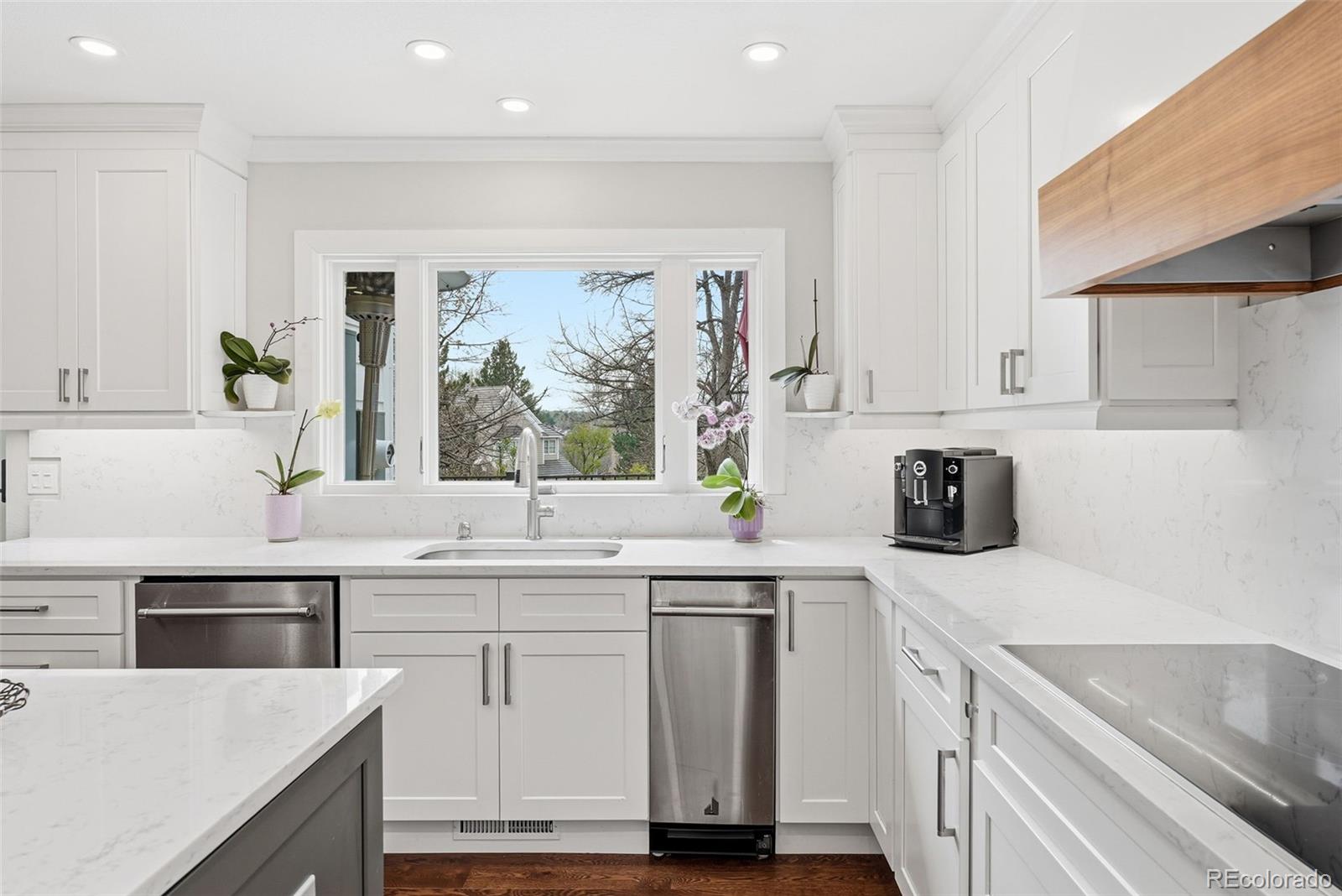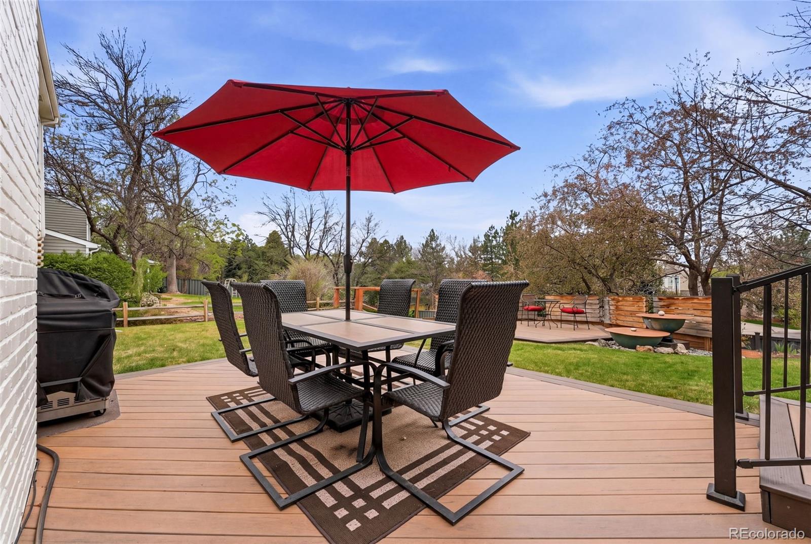 Settled on a peaceful, tree-lined street, this beautifully maintained home blends charm with thoughtful upgrades. A covered front porch opens to a bright interior featuring Andersen windows, wide-plank hardwood floors and elegant finishes throughout. Sunlight fills the open sitting and dining areas, leading to the stylish double island eat-in kitchen with stainless steel appliances, stone surfaces and views of the backyard. Glass doors open to two levels of decks overlooking a private, terraced backyard with mature trees, fountain, a south-facing garden and a patio with covered seating. Just below the kitchen, a cozy living room offers a gas fireplace and direct outdoor access. This level also includes a laundry room, large home office with custom built-ins, a powder room and access to the oversized 2-car garage. Upstairs, the freshly remodeled primary suite features a luxurious ensuite bath with a frameless glass-enclosed shower, dual vanity and linen storage plus walk-in closet. Three additional bedrooms and a full bath with a private water closet and laundry chute complete the upper level. The garden-level basement adds extra living space with a bright family room, bath and ample storage. Most recent upgrades: Primary suite (2026), furnace & A/C (2025), main floor office (2025), radon mitigation (2025), water heater (2024). Located in the award-winning Cherry Creek School District, with fantastic HOA amenities including pools, tennis courts, playgrounds, green belts and community events plus easy access to shopping, dining, south-suburban bike trails, I-25, E-470, Downtown Denver, DIA and the Rocky Mountains.