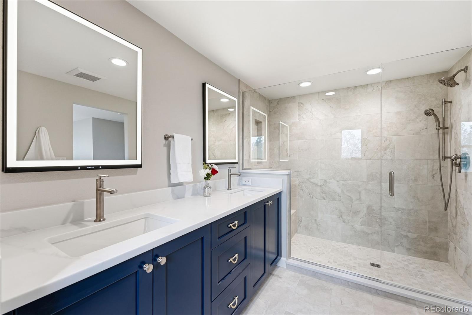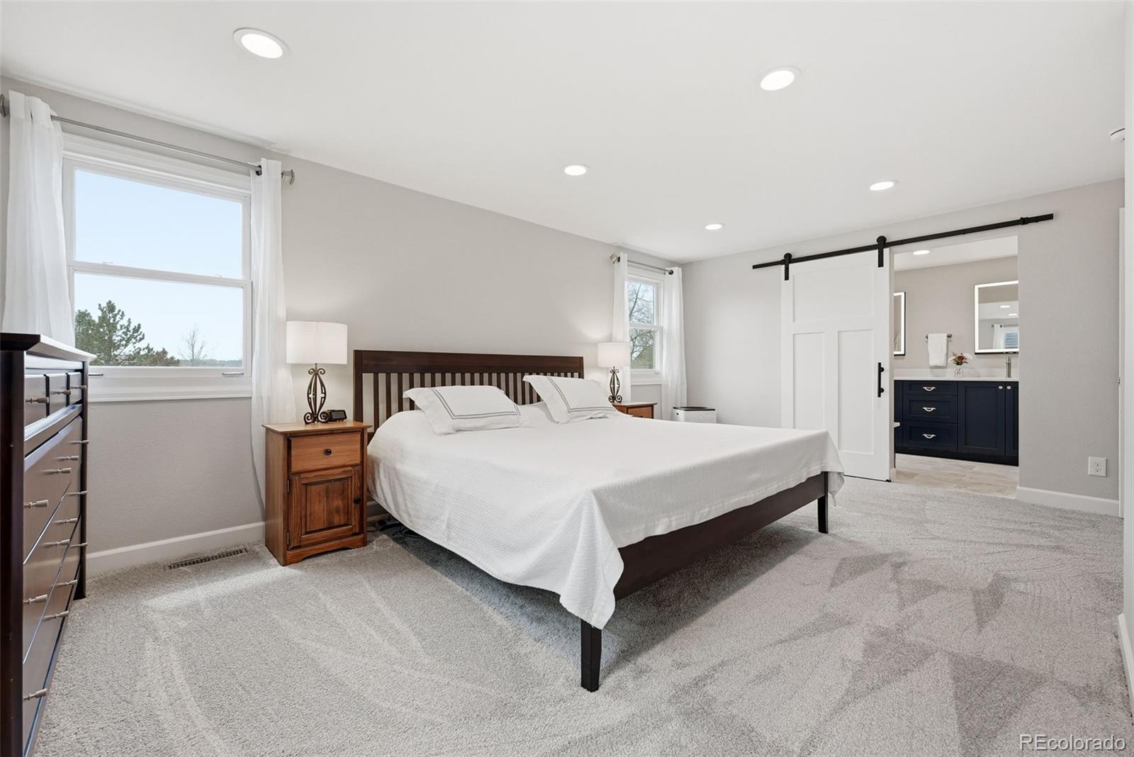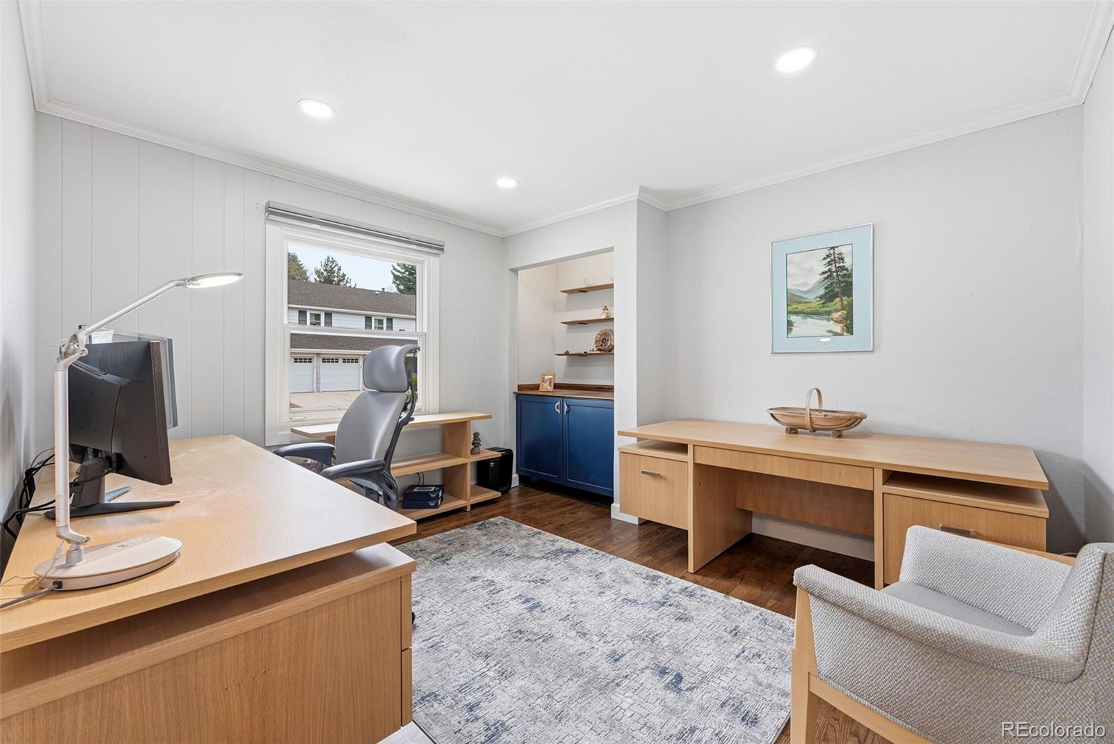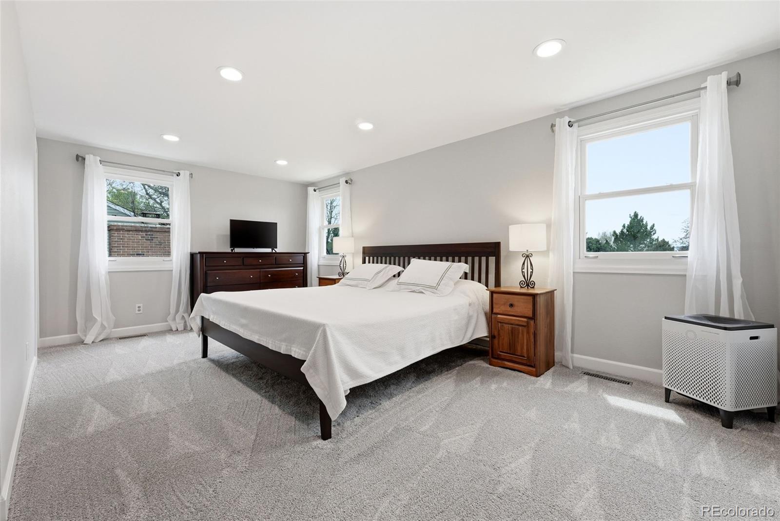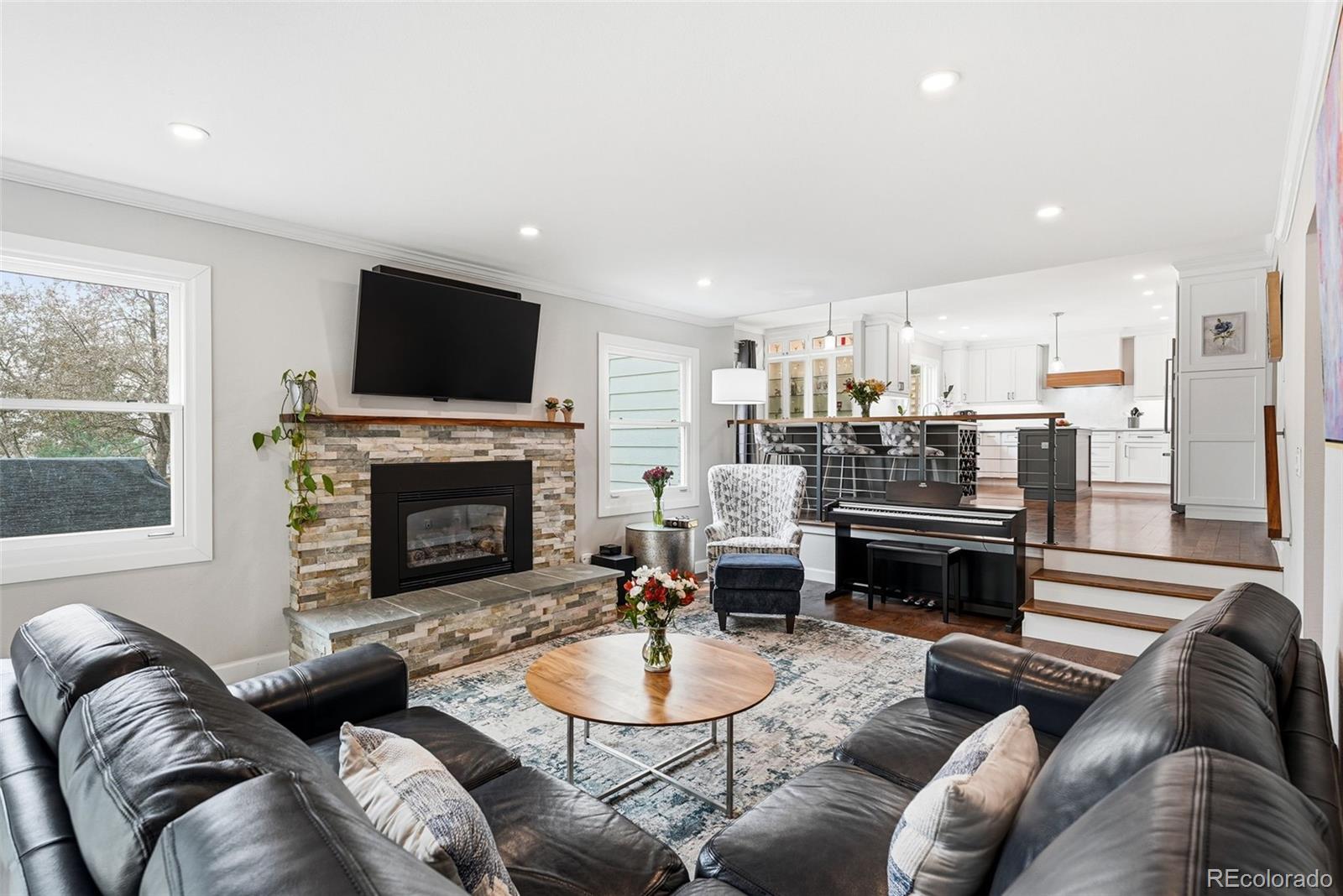 Settled on a peaceful, tree-lined street, this beautifully maintained home blends charm with thoughtful upgrades. A covered front porch opens to a bright interior featuring Andersen windows, wide-plank hardwood floors and elegant finishes throughout. Sunlight fills the open sitting and dining areas, leading to the stylish double island eat-in kitchen with stainless steel appliances, stone surfaces and views of the backyard. Glass doors open to two levels of decks overlooking a private, terraced backyard with mature trees, fountain, a south-facing garden and a patio with covered seating. Just below the kitchen, a cozy living room offers a gas fireplace and direct outdoor access. This level also includes a laundry room, large home office with custom built-ins, a powder room and access to the oversized 2-car garage. Upstairs, the freshly remodeled primary suite features a luxurious ensuite bath with a frameless glass-enclosed shower, dual vanity and linen storage plus walk-in closet. Three additional bedrooms and a full bath with a private water closet and laundry chute complete the upper level. The garden-level basement adds extra living space with a bright family room, bath and ample storage. Most recent upgrades: Primary suite (2026), furnace & A/C (2025), main floor office (2025), radon mitigation (2025), water heater (2024). Located in the award-winning Cherry Creek School District, with fantastic HOA amenities including pools, tennis courts, playgrounds, green belts and community events plus easy access to shopping, dining, south-suburban bike trails, I-25, E-470, Downtown Denver, DIA and the Rocky Mountains.