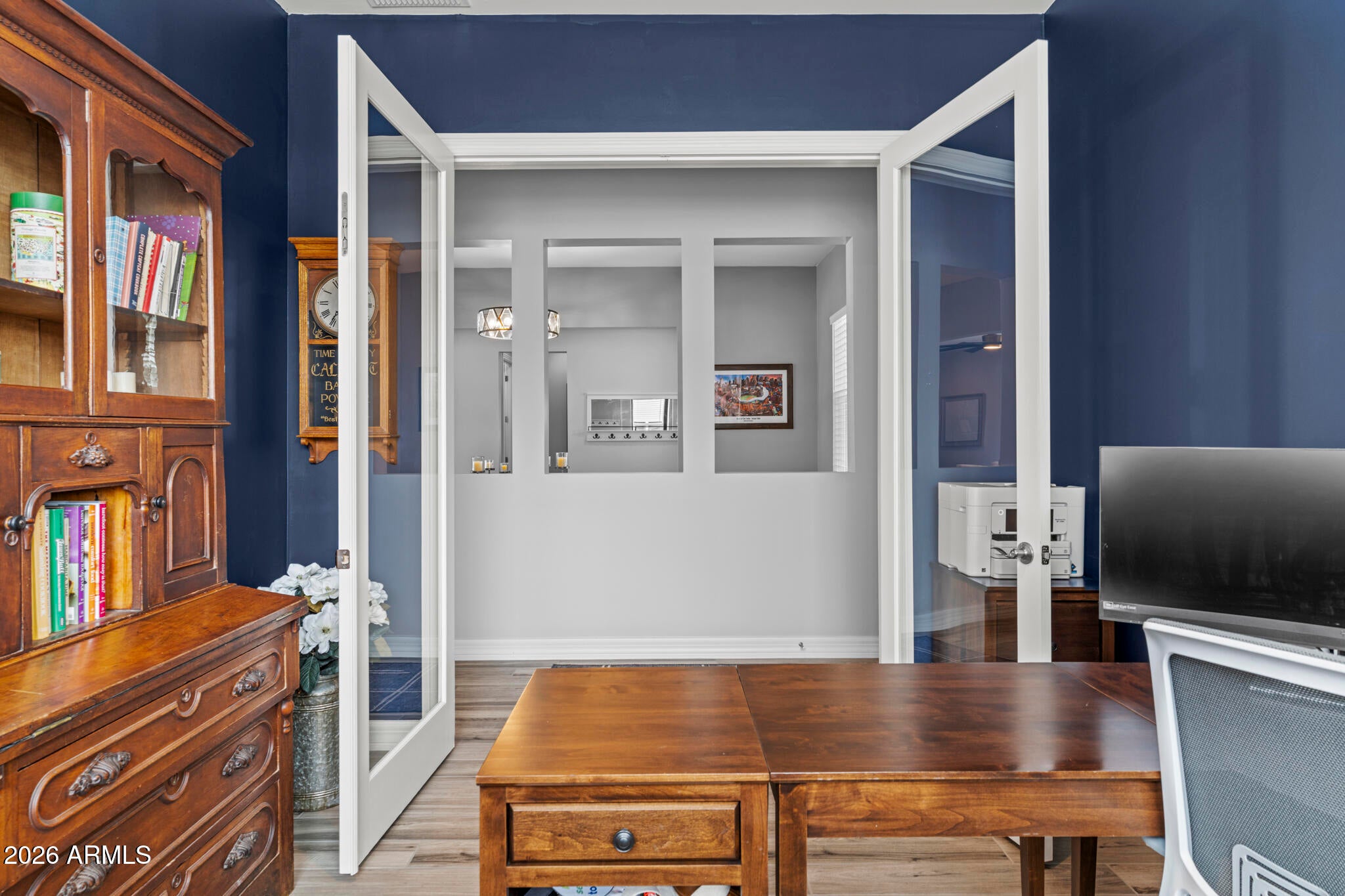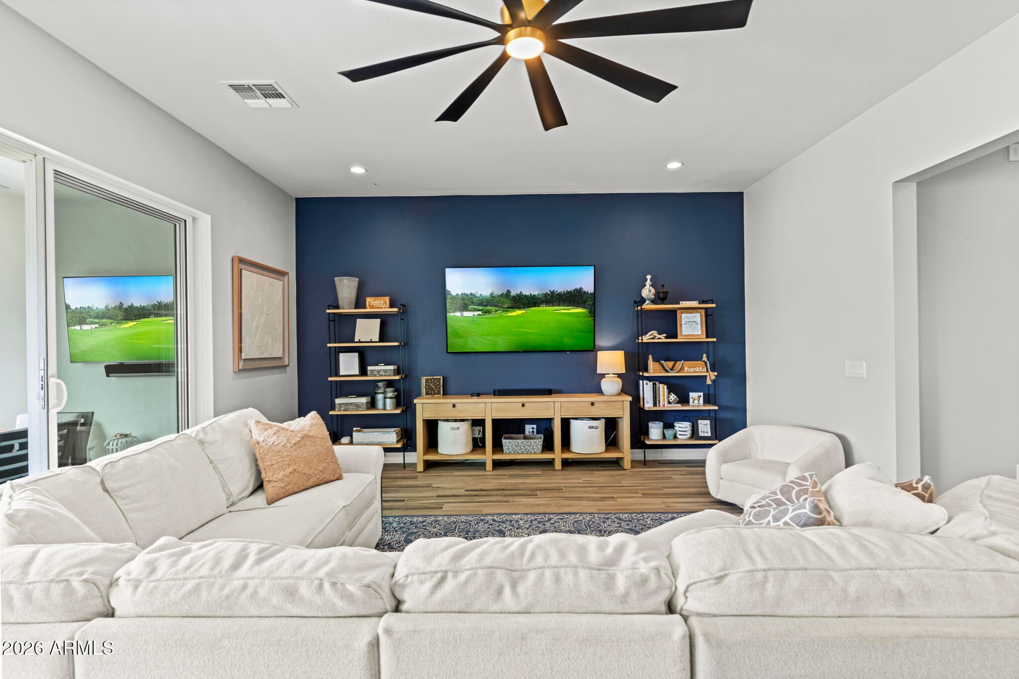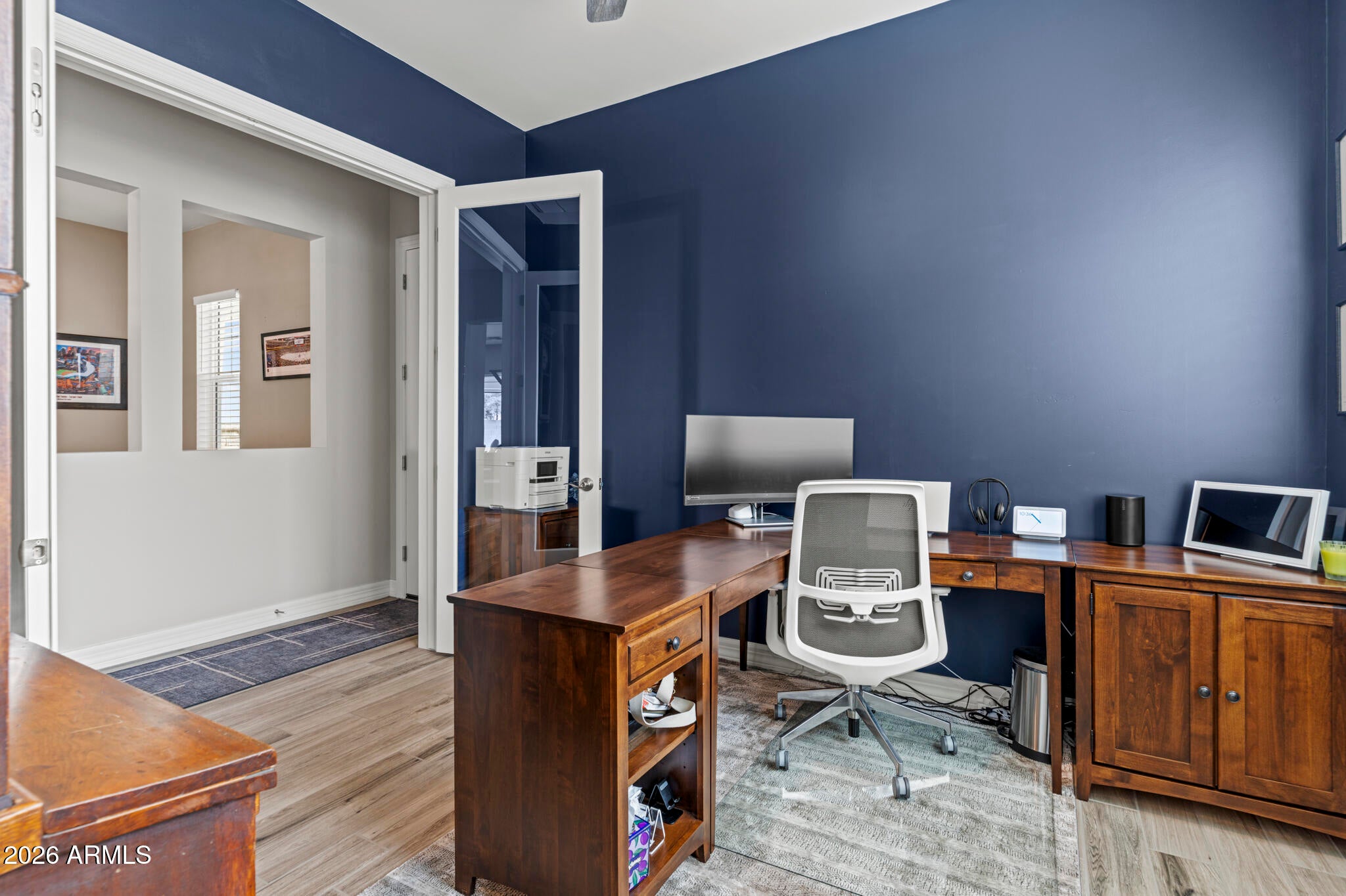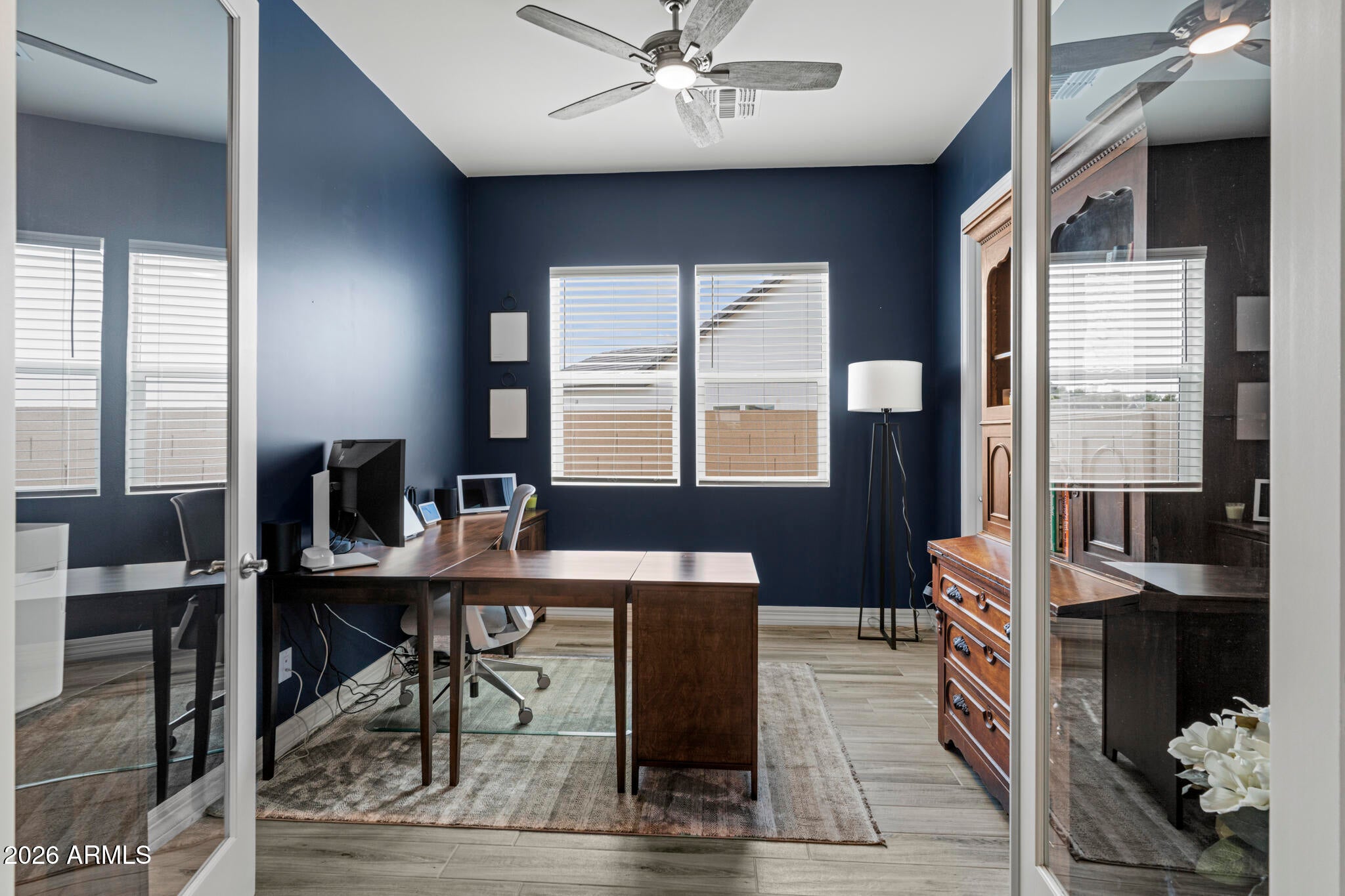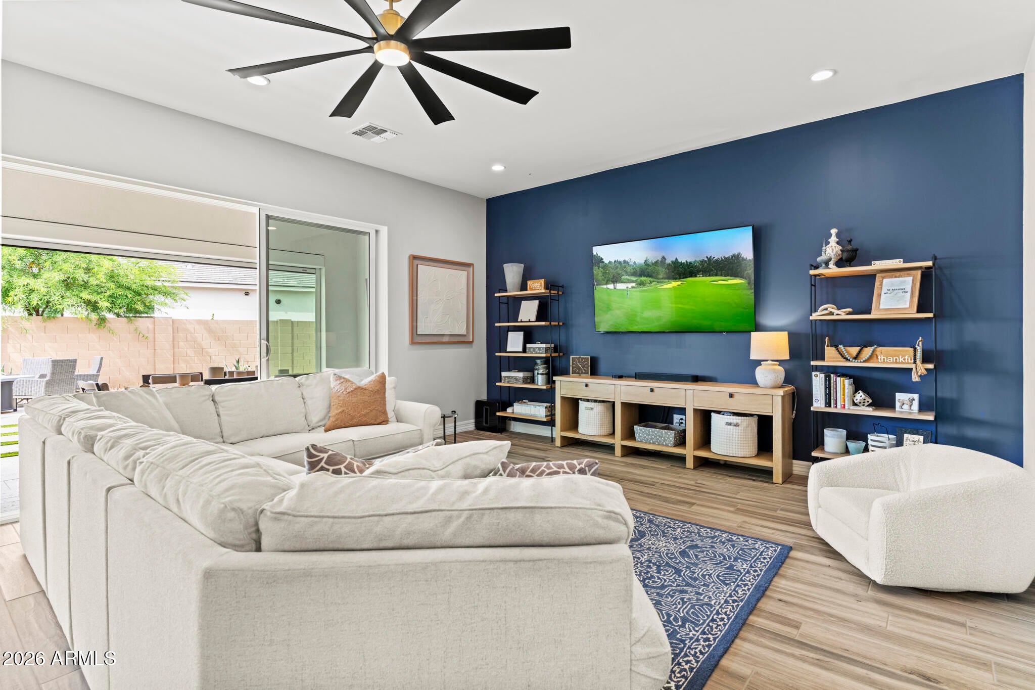 Solar! Dedicated office! Extra garage storage air conditioned garage. Electronic screened patio. And... WHAT A GREAT ROOM! Conveniently located a stones throw from the entrance/exit gate, this Sterling Grove home is impressively upgraded, and a beautifully landscaped ...on an oversized premium lot. The kitchen is designed with upgraded cabinets and luxurious quartz countertops.
