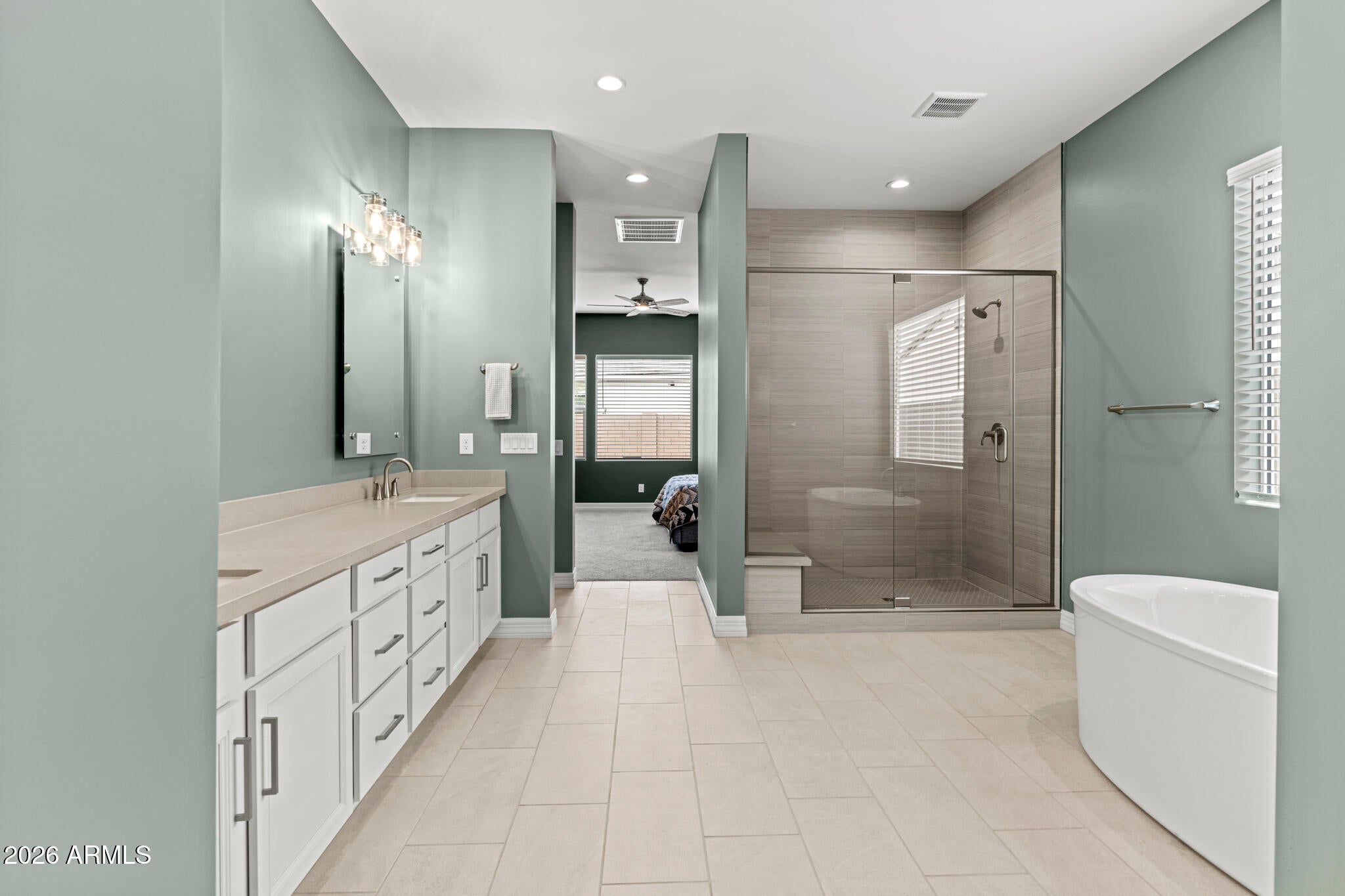 Solar! Dedicated office! Extra garage storage air conditioned garage. Electronic screened patio. And... WHAT A GREAT ROOM! Conveniently located a stones throw from the entrance/exit gate, this Sterling Grove home is impressively upgraded, and a beautifully landscaped ...on an oversized premium lot. The kitchen is designed with upgraded cabinets and luxurious quartz countertops. The upgraded 16 slider opens to a covered patio and large lot, perfect for entertaining.The master bedroom includes a large bathroom with a walk-in shower, double vanity, and large soaking tub. The guest bedrooms are all ensuite with walk-in closets. The garage has a separate mini-split with AC. Sterling Grove Golf & Country Club is the West Valleys newest golf experience. The Golf Course is a world-class Nicklaus Design course, operated by the renowned Troon Golf Management Services and designed to be enjoyed by golf enthusiasts and newcomers alike. The state-of-the-art practice facilities are second to none. Hone your skills at the driving range, putting and chipping greens, or in the golf simulator. This home has first-class amenities and beautiful views of the White Tank Mountains, lakes, and ponds. Youll also enjoy the neighborhood greenery on your walks, jogs, bike rides!
