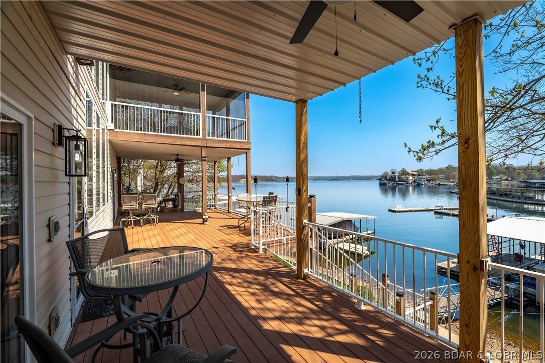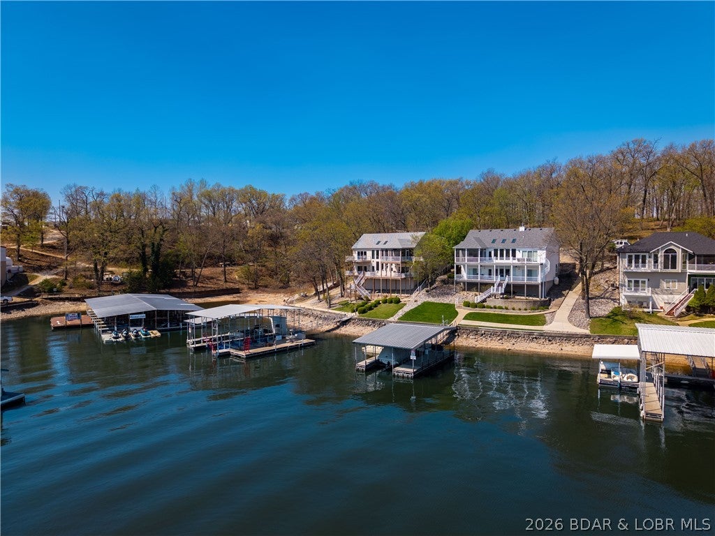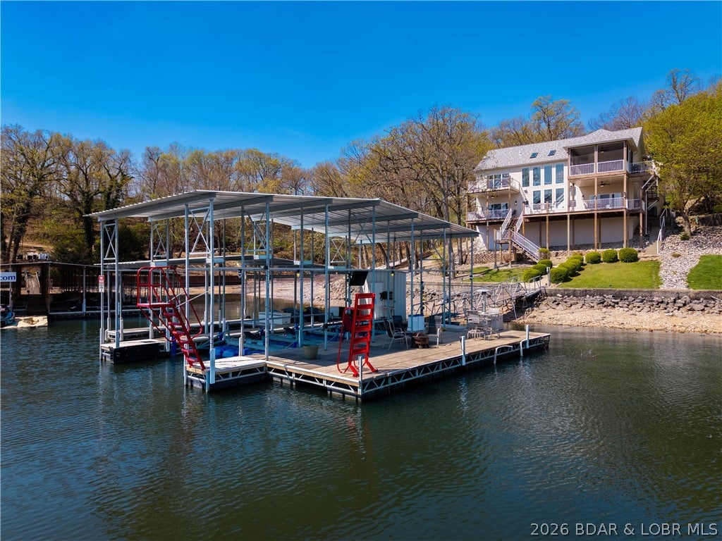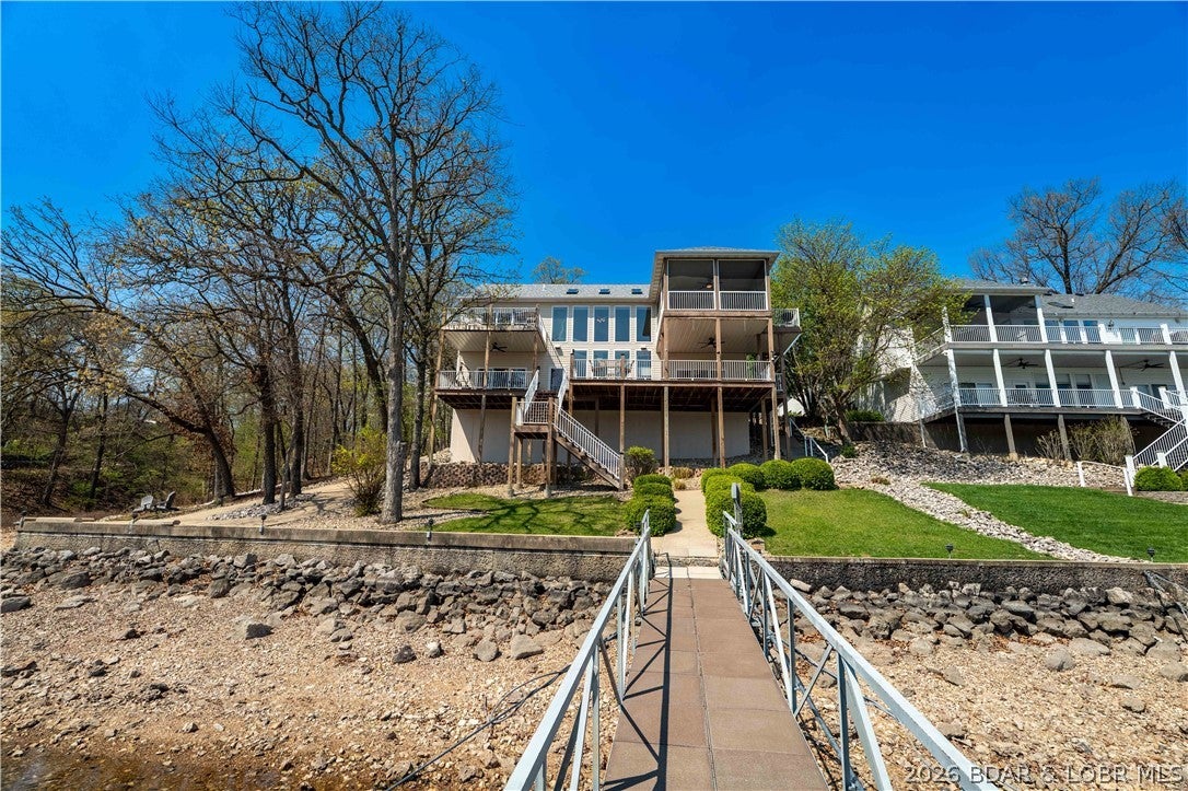 Rare opportunity in the heart of Osage Beachlakefront living with space, privacy, and incredible shoreline! Situated on 1.19 acres inside a private gated community, this beautifully updated 4-bedroom, 2 are en-suites,3.5-bath home offers 2,944 sq ft and an impressive 271 feet of lake frontageplus your own private beach, something you rarely find at the lake.Sold turn-key and updated inside and out, this home is designed for easy living and entertaining. The main level features an open layout with a wall of windows showcasing stunning lake views and true main-level living. The walkout lower level includes a spacious bar area, perfect for hosting family and friends, along with a second laundry for added convenience.Outdoor living is unmatched with expansive deck space on both levels and a massive screened-in deck just off the kitchenideal for enjoying the lake in every season. A cart path leads you to a deep-water concrete dock with 3 slips, making lake days effortless.Private, spacious, and move-in readythis is a one-of-a-kind lakefront retreat.
