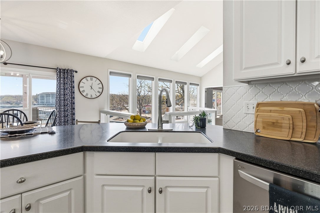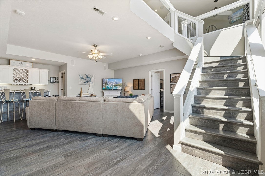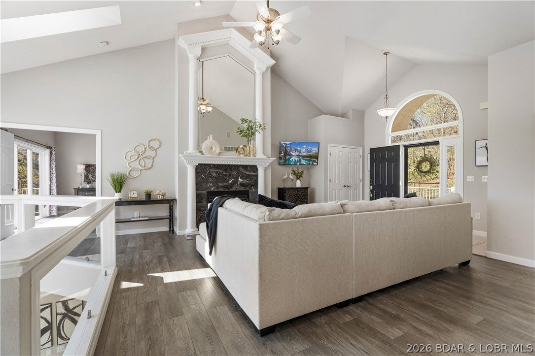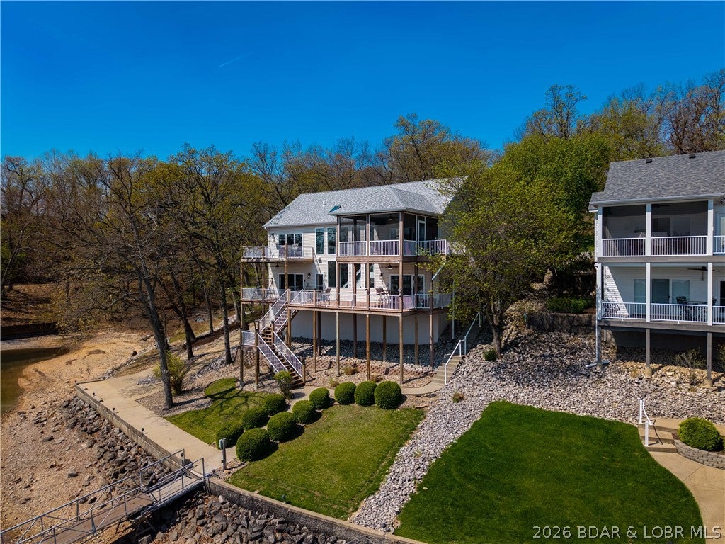 Rare opportunity in the heart of Osage Beachlakefront living with space, privacy, and incredible shoreline! Situated on 1.19 acres inside a private gated community, this beautifully updated 4-bedroom, 2 are en-suites,3.5-bath home offers 2,944 sq ft and an impressive 271 feet of lake frontageplus your own private beach, something you rarely find at the lake.Sold turn-key and updated inside and out, this home is designed for easy living and entertaining. The main level features an open layout with a wall of windows showcasing stunning lake views and true main-level living. The walkout lower level includes a spacious bar area, perfect for hosting family and friends, along with a second laundry for added convenience.Outdoor living is unmatched with expansive deck space on both levels and a massive screened-in deck just off the kitchenideal for enjoying the lake in every season. A cart path leads you to a deep-water concrete dock with 3 slips, making lake days effortless.Private, spacious, and move-in readythis is a one-of-a-kind lakefront retreat.