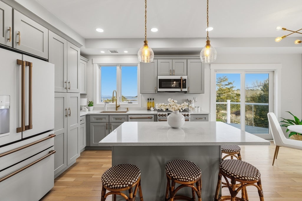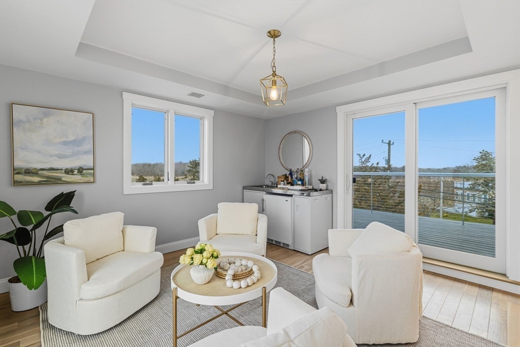 SPECTACULAR COASTAL RETREAT in the private Bayside Meadows beach community on scenic Mattapoisett Neck with DEEDED BEACH RIGHTS and scenic views of Mattapoisett Harbor and Mollys Cove. Offered fully furnished, this NEWLY CONSTRUCTED, custom-built home offers OVER 1,000 sq ft of deck and balcony space, maximizing indoor-outdoor living and capturing breathtaking water views from nearly every vantage point. The main level showcases a designer kitchen with oversized island, premium appliances, and open living areas, plus two bedrooms and two full baths. An ELEVATOR services all floors, including the luxurious top-floor primary suite and private office with panoramic views, dual balconies, and spa-like bath. Includes solar, whole-house generator, irrigation, outdoor shower, two fireplaces, and attached garage. Rare opportunity to purchase ADJACENT LOT separately, with approved plans for additional home or expanded yard space. Enjoy an undiscovered South Coast gem with no Cape traffic.