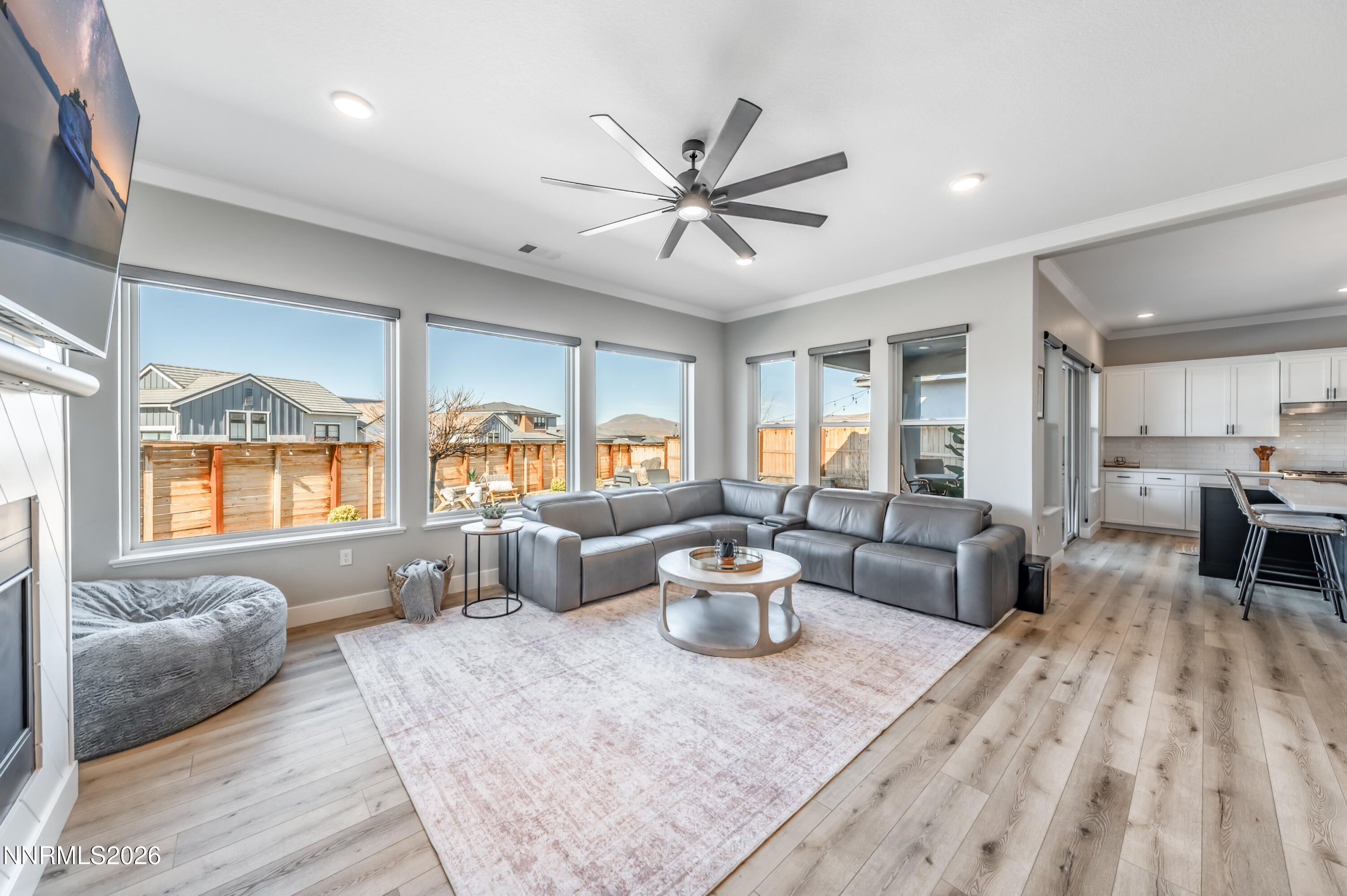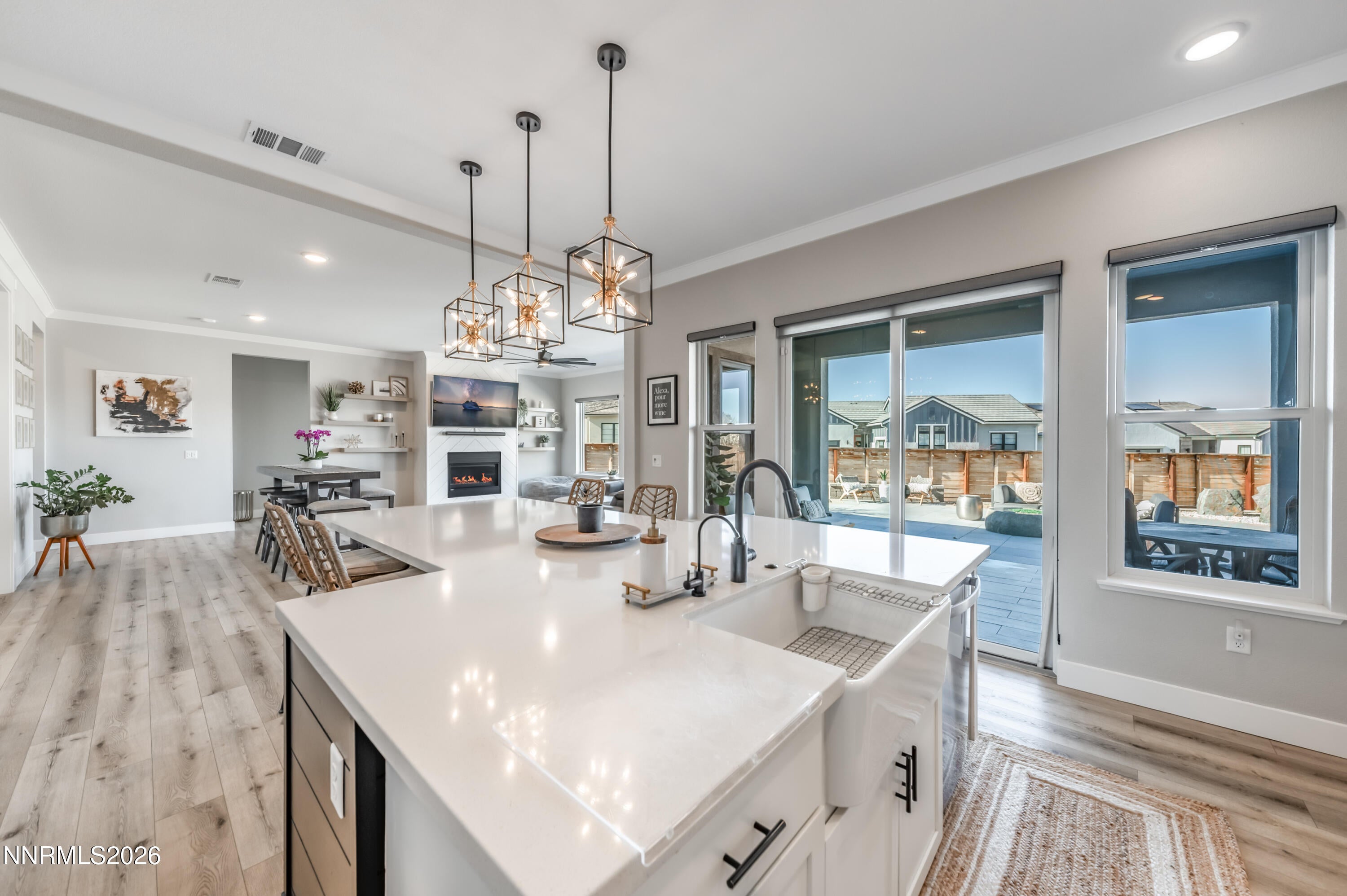 Welcome to 971 Little Star Drive, a beautifully upgraded contemporary home in desirable South Reno where thoughtful design meets elevated everyday living. From the moment you arrive, the striking exterior featuring clean architectural lines, stone accents, and a spacious three-car garage sets an impressive tone. Step inside to a dramatic entry with soaring ceilings and an elegant staircase that opens into a bright and inviting great room designed for both comfort and entertaining. The heart of the home is the stunning chefs kitchen and open living area, where expansive windows flood the space with natural light. The kitchen showcases sleek quartz countertops, crisp white cabinetry, stainless steel appliances, a built-in wine feature, and an oversized island perfect for gathering with friends and family. Wide-plank LVP flooring flows throughout the main living areas, adding warmth and durability. Thoughtful upgrades elevate the homes functionality, including reverse osmosis water filtration throughout, enhanced WiFi connectivity in multiple rooms and the office, upgraded bedroom insulation for added comfort, and stylish custom board-and-batten accent walls that add a designer touch. Upstairs, a versatile loft-style landing overlooks the main level and provides flexible space for a home office, reading nook, or media area. Spacious bedrooms and modern bathrooms offer comfort and clean, contemporary finishes. The finished garage features commercial-grade epoxy flooring, providing a polished and durable space for vehicles, storage, or hobbies. Step outside to your private backyard retreat, thoughtfully designed for both relaxation and entertaining. The fully xeriscaped yard features Italian pavers, a gas fire pit, an Italian stone water feature, and plush turf with a built-in drainage system perfect for pets. A covered patio creates the ideal setting for outdoor dining, while a built-in holiday lighting package makes seasonal decorating effortless. Located in sought-after South Reno, this home offers convenient access to shopping, dining, outdoor recreation, and top-rated schools, all while enjoying the quiet charm of a newer neighborhood. Modern, stylish, and filled with thoughtful upgrades971 Little Star Drive delivers the lifestyle todays buyers are looking for. *Please note, this home is a 4 bedroom 3.5 bathroom with additional office as apart of the homes upgrades*