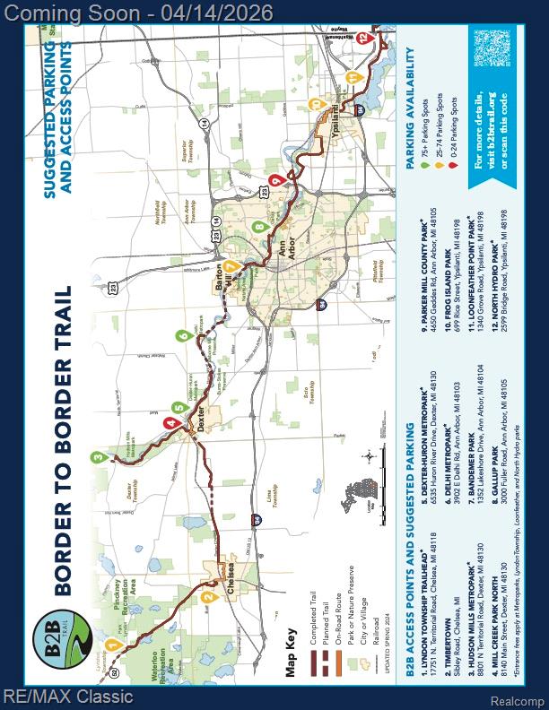 Brand New Custom-Built Colonial .... Move-In Ready!Stunning, brand-new custom Colonial perfectly positioned just a short walk from the Huron River ... your gateway to tubing, kayaking, and fishing. Step outside and access the Border to Border Trail directly from your driveway, walk, run bike downtown for shopping, fine dining, parks, the library, and Award Winning Dexter schools.Inside, a spacious open floor plan greets you with gorgeous hardwood floors and an abundance of natural light. The impressive Great Room features a gas fireplace and walls of windows, while the dedicated first-floor Office/Library offers the perfect work-from-home retreat. The chefs kitchen is a showstopper, boasting a large island, stainless steel appliances, Pot Filler, Gas Cooktop and a generous walk-in pantry. A cozy Sitting Room with fireplace and built-in shelving adds warmth and versatility to the main level.Practical luxury continues with a spacious mudroom/locker room and half bath conveniently located off the three-car heated garage, complete with sink and epoxy floors. Upstairs, the luxurious Owners Suite features a soaking tub, separate steam shower, heated floors and an expansive walk-in closet connected directly to the second-floor laundry .... because details matter.The professionally finished walkout lower level is an entertainers dream, offering a large family room, wet bar, full bath, and private bedroom. Step outside to the custom deck with sleek glass railings for unobstructed, panoramic views of the surroundings.Trail access. Riverfront lifestyle. This one truly has it all.Included in Price: Landscaping Package w/Sod and Sprinklers to be installed weather dependent in May!