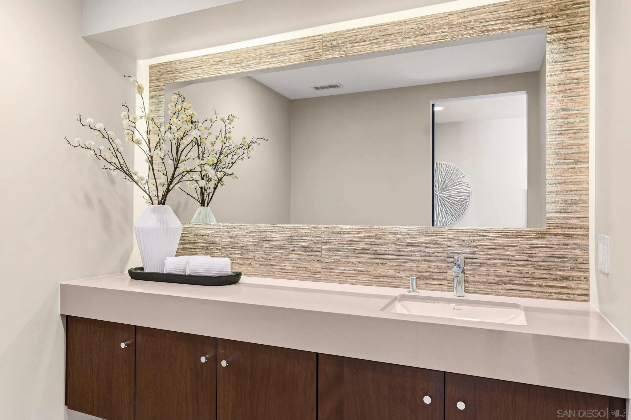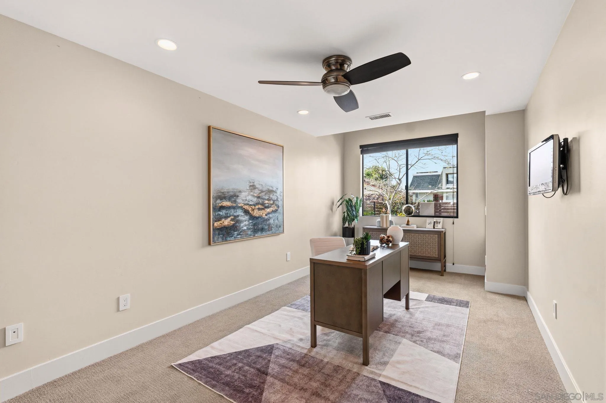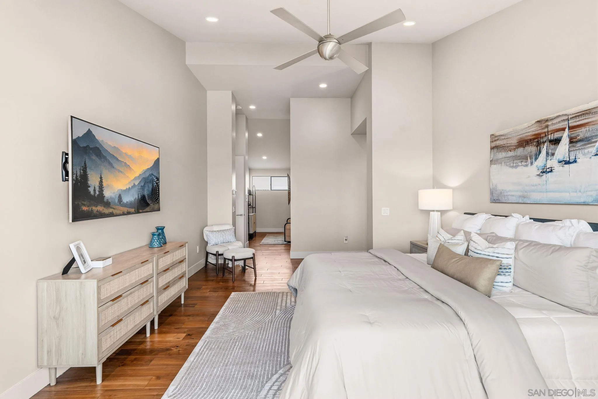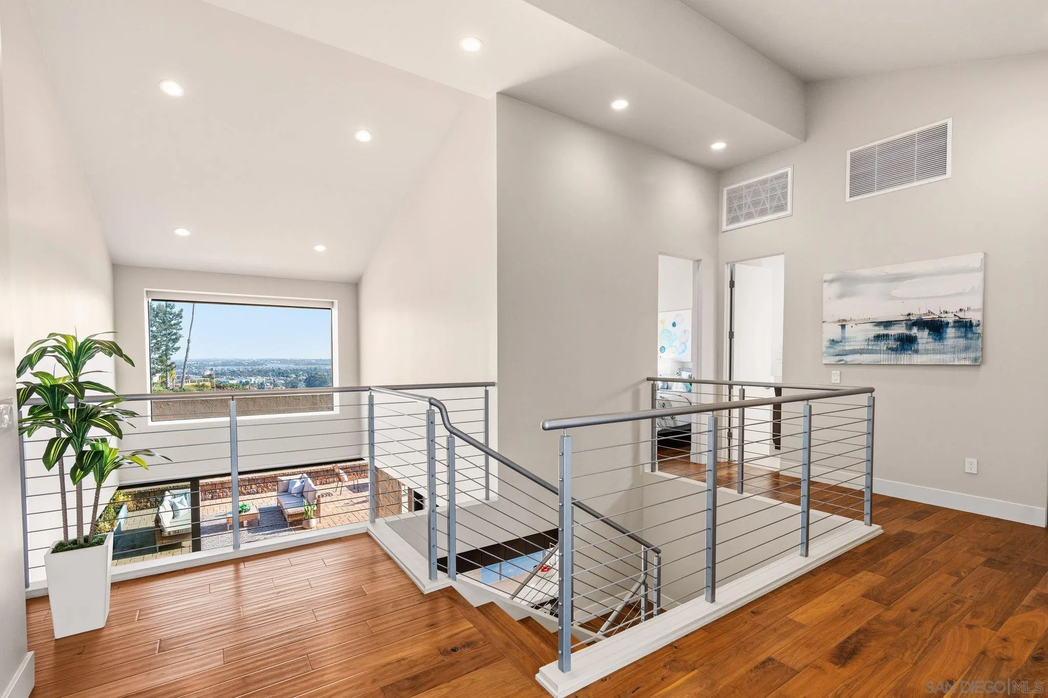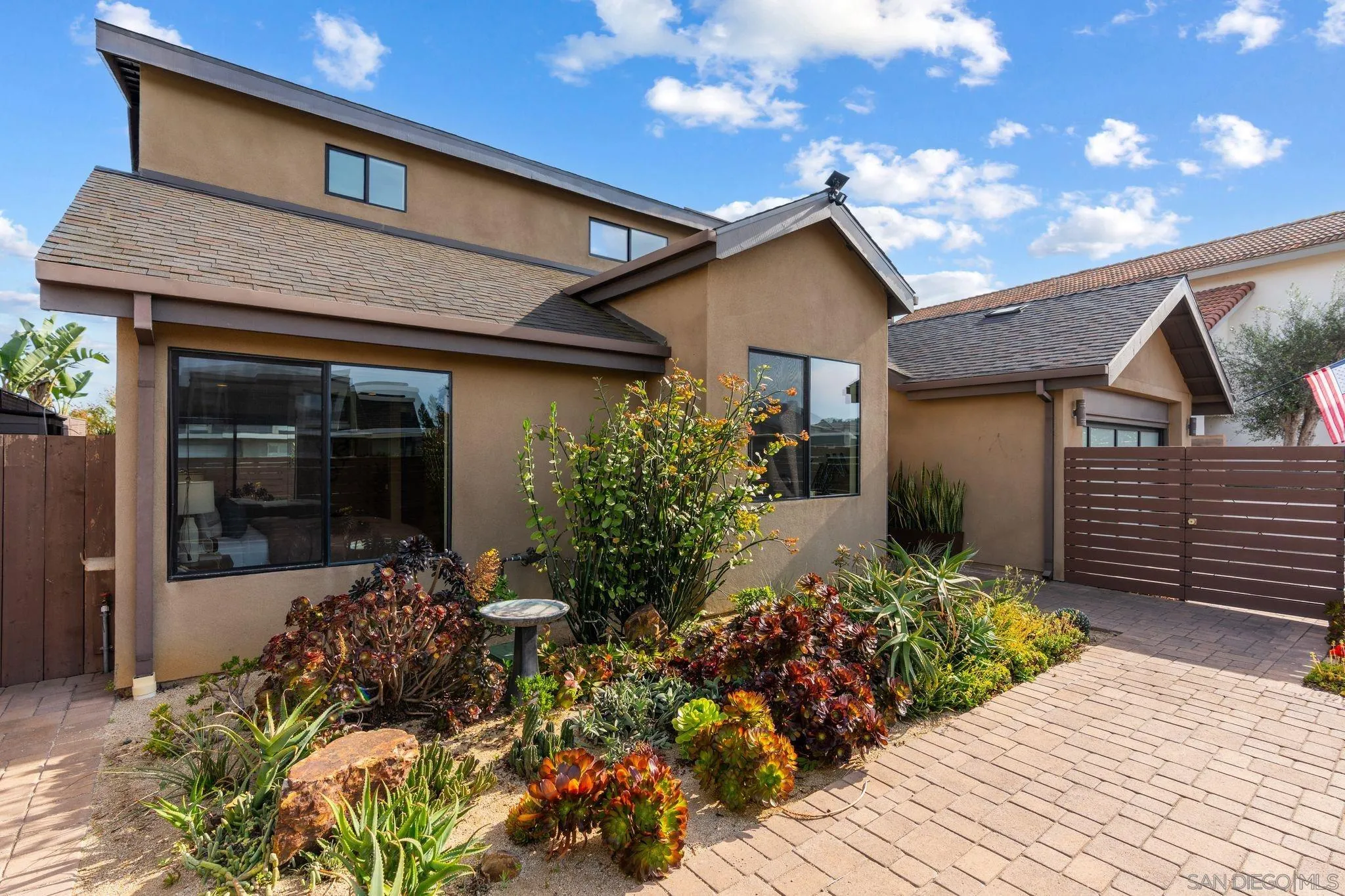 This exceptional contemporary home offers much more than just its impressive views, it truly feels like you are living at a resort.Completely remodeled from the foundation up in 2014, every detail of this permitted renovation blends high-end finishings with a tranquil sophisticated design.Curb appeal begins by walking through an inviting fenced courtyard leading to a welcoming Western Glass Pivot front entry door and sleek frosted glass garage doors.The exterior is engineered for low-maintenance luxury, featuring custom pavers, a dedicated 35 RV parking space with full hookups, & a sustainable landscape including a butterfly garden & a mini-orchard of Passion Fruit, Dragon Fruit, and citrus trees.Gourmet kitchen with custom Walnut-stained cabinetry with natural quartz slabs,& oversized island. The professional-grade Thermador appliances include a 6-burner gas range with a flat griddle, plus a separate refrigerator and freezer.Enjoy the seamless indoor/outdoor living with panoramic multi-slide glass doors, leading out to the spacious covered patio with the indoor/outdoor fire area a perfect place to watch the Seaworld fireworks. The additional gas fire pit and built-in Big Green Egg BBQ/smoker make entertaining effortless. Sonos sound system downstairs and in the backyard.The backyard is pet friendly with a large designated dog run. Ample storage throughout with custom closet organizers and huge easily accessible walk-in storage room. Primary suite offers vaulted ceilings, soaking tub, impressive walk-in closet , private balcony & an attached multi functional room.
