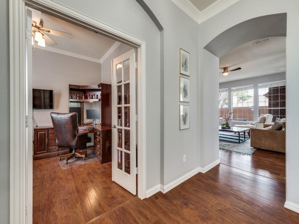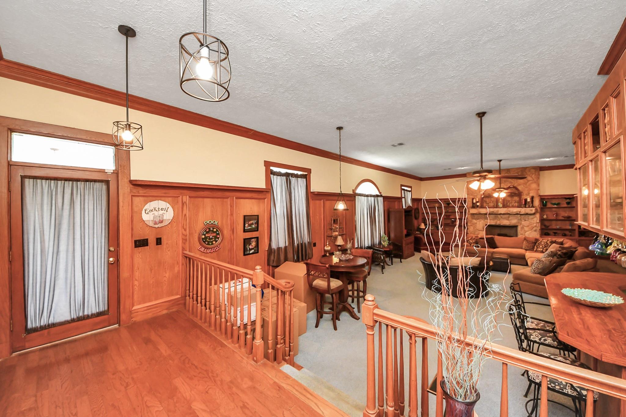 This farmhouse-inspired ranch walk-out offers a thoughtful blend of modern finishes and functional design, located across from Elk Ridge Elementary School in the desirable Elk Ridge neighborhood.A maintenance-free, southern-style front porch creates a charming first impression and provides a comfortable setting for enjoying morning coffee or unwinding in the evening. Inside, the main living area features a gas fireplace with natural stone surround, boxed ceiling, and wood beam accents that bring warmth, character, and an inviting atmosphere.The kitchen is designed with both style and efficiency in mind, showcasing an oversized island with quartz countertops, with a backdrop of white cabinets, custom vent hood, black stainless-steel appliances, gas cooktop, double ovens, tile backsplash, soft-close cabinetry, under-cabinet lighting, and a hidden walk-in pantry.The dining area connects to a 15' x 13' covered, maintenance-free deck equipped with recessed lighting, prewiring for a ceiling fan, and a gas line, creating an ideal space for outdoor dining, entertaining, or simply enjoying the changing seasons. A wide staircase provides access to the lower patio and partial fenced in backyard.A sliding barn door leads to the main-level bedroom wing. The primary suite includes ceiling beam accents, a private bathroom with dual sinks and tiled shower, and a large walk-in closet, offering a comfortable and well-designed space. Two additional bedrooms and a full bathroom are also located on the main floor.Additional main-level features include a mudroom with built-in bench and hooks, a half bathroom, and a conveniently located laundry room near the garage entry.The finished walk-out lower level expands the living space with a spacious family room featuring a second gas fireplace and access to the patio. Two additional bedrooms, both with walk-in closets, a full bathroom, and a flexible-use room suitable for a variety of needs are also included. Storage is available in both a dedicated storage room and the utility area.The heated 1,298 sq. ft. garage is equipped with hot and cold water, a utility sink, floor drains, workbench space, and built-in shelving, providing excellent functionality for a variety of uses.The oversized corner lot is fully landscaped, established plants, decorative rock, and a sprinkler system with drip lines. A black aluminum fence surrounds portion of the yard, creating a clean and finished outdoor setting.Additional features include LP siding, double-pane Pella windows, Hunter Douglas window treatments, and accessible-width doorways on the main level.