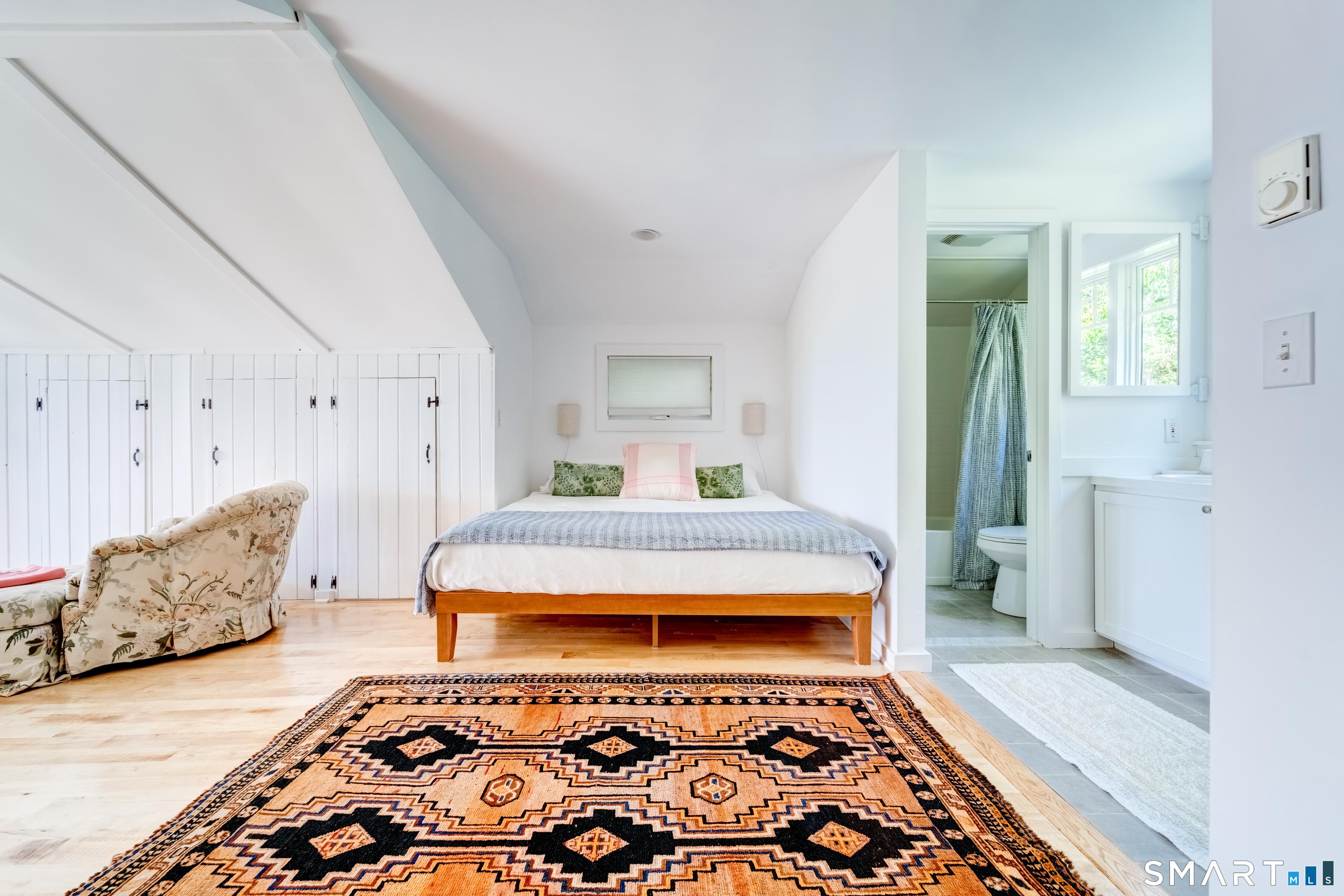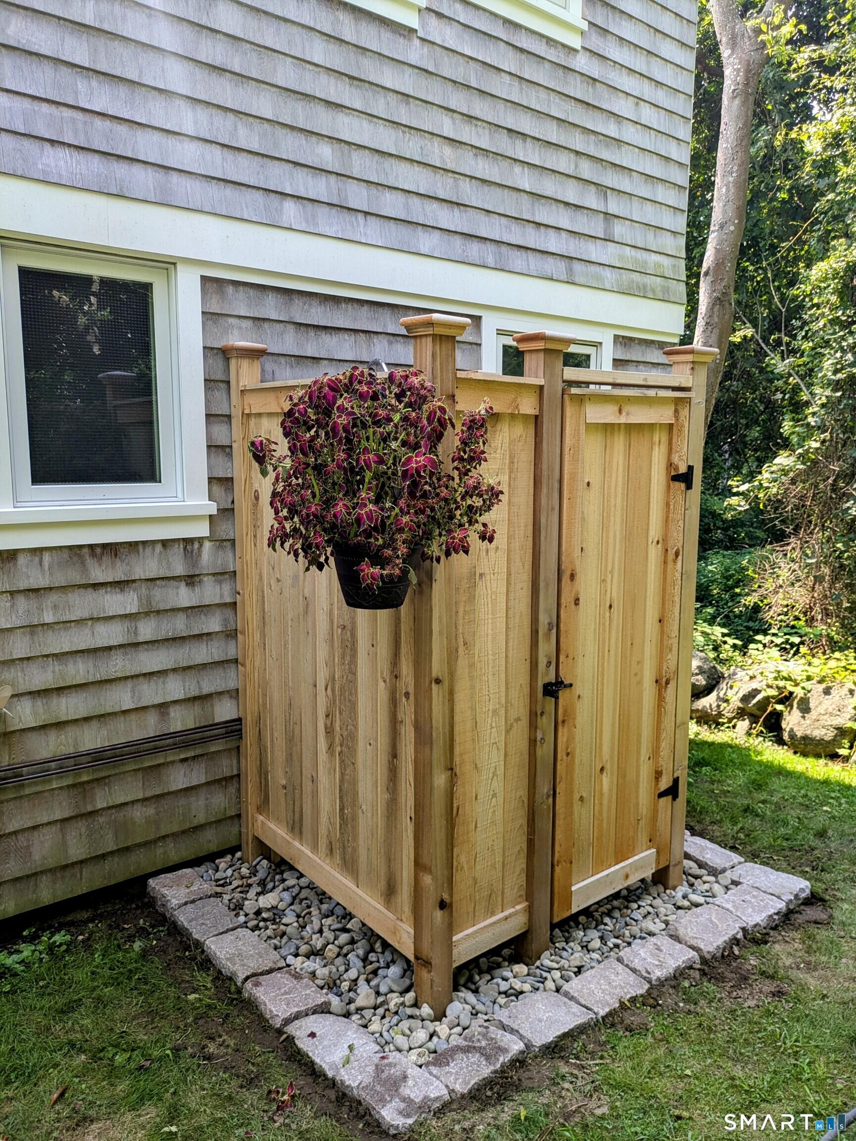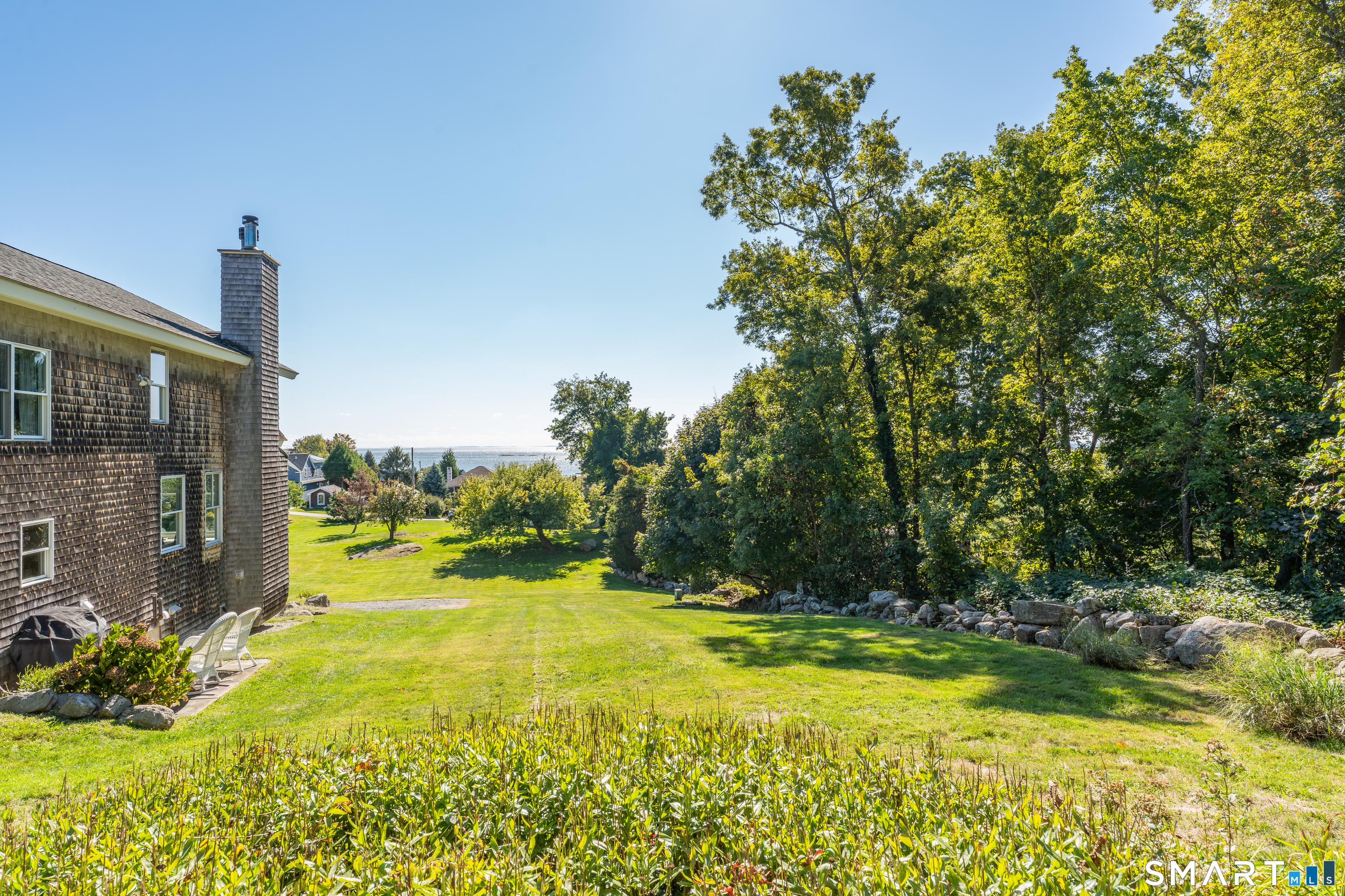 Tucked away at the end of private Cedar Grove Road in the serene enclave of Tuttles Point, this charming cedar shake classic cottage offers the kind of lifestyle most people only dream about. Perched high above the floodplain on a lush 1/3-acre lot, 59 Cedar Grove Road enjoys spectacular, million-dollar views of Long Island Sound, surrounded by mature perennial plantings in a secret garden setting. The homes three bedrooms and two full baths are thoughtfully arranged across approximately 1,500 square feet of warm, welcoming living space - plenty of room to relax, entertain, and truly settle in. Two bedrooms are located on the first floor, as well as a primary bath with a walk-in shower. The loft-like second floor suite, with sweeping views of the Sound, includes a large sitting area, full bath with tub and laundry room. The kitchen and baths were fully renovated in 2023, and new hardwood maple floors were installed throughout. An outdoor shower with cedar enclosure was added in 2024. In addition to all this, a detached garage and heated, renovated studio round out the property - perfect for a writers study, playroom, or home office. Every major mechanical system has been updated, including ductless AC, a tankless water heater, gas fireplace-ready, Generac generator, casement windows, and a newer roof - move right in with complete peace of mind. This turn key house checks all the boxes: private beach rights, low taxes, stunning views all waiting for you!