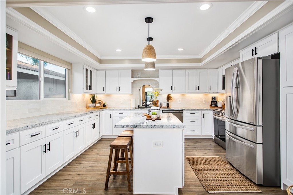 Welcome to your dream home in the heart of West Anaheim! Nestled within the highly sought-after Stanford Court community, this stunning two-story townhome at 520 North Wake Forest Drive offers the perfect blend of modern luxury and cozy comfort. From the moment you step into your private front yard and enter the home, you are greeted by soaring high smooth ceilings, elegant crown molding, and recessed lighting that illuminates the brand-new flooring and fresh paint throughout. This 1,087 sq. ft. residence, built in 1984, is located in a true pride of ownership neighborhood, making it an ideal find for those seeking quality and style at an accessible price point of 624,900.The heart of the home is the beautifully remodeled kitchen, featuring expansive counter space, ample cabinetry, and brand-new appliances. Whether you're enjoying a quick bite at the eat-in kitchen bar or hosting a dinner in the formal dining room, this layout is designed for effortless entertaining. Convenience is key with a downstairs bathroom and direct access to your attached two-car garage. Upstairs, you'll find two perfectly sized bedrooms, including a spacious primary suite equipped with both a massive walk-in closet and a second standard closet for maximum storage. With a monthly HOA of only 400, this turnkey property offers a rare opportunity to own a piece of West Anaheim's finest real estate.