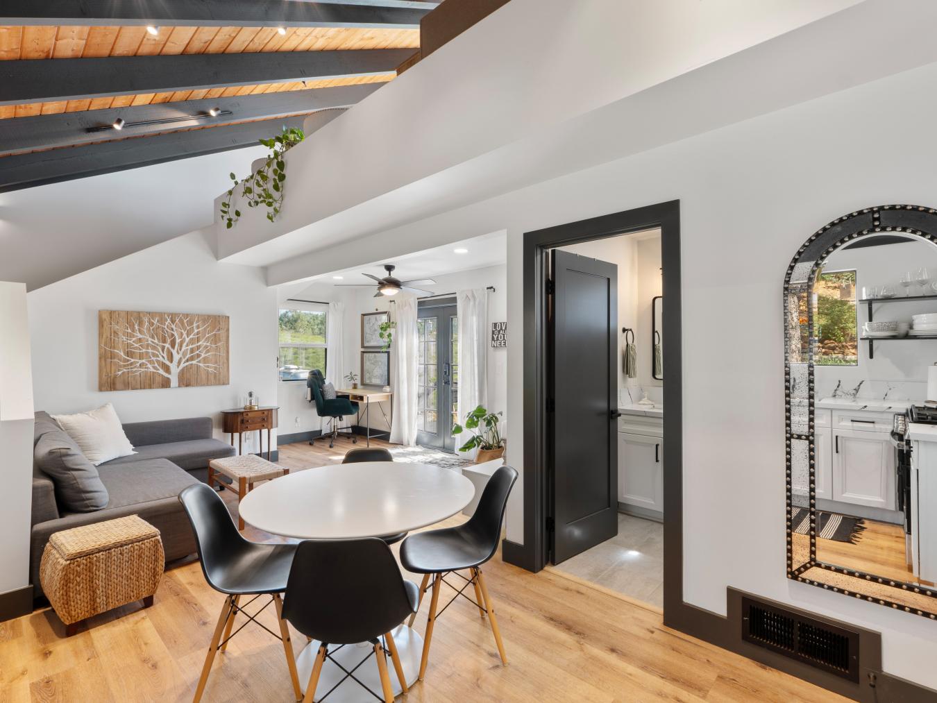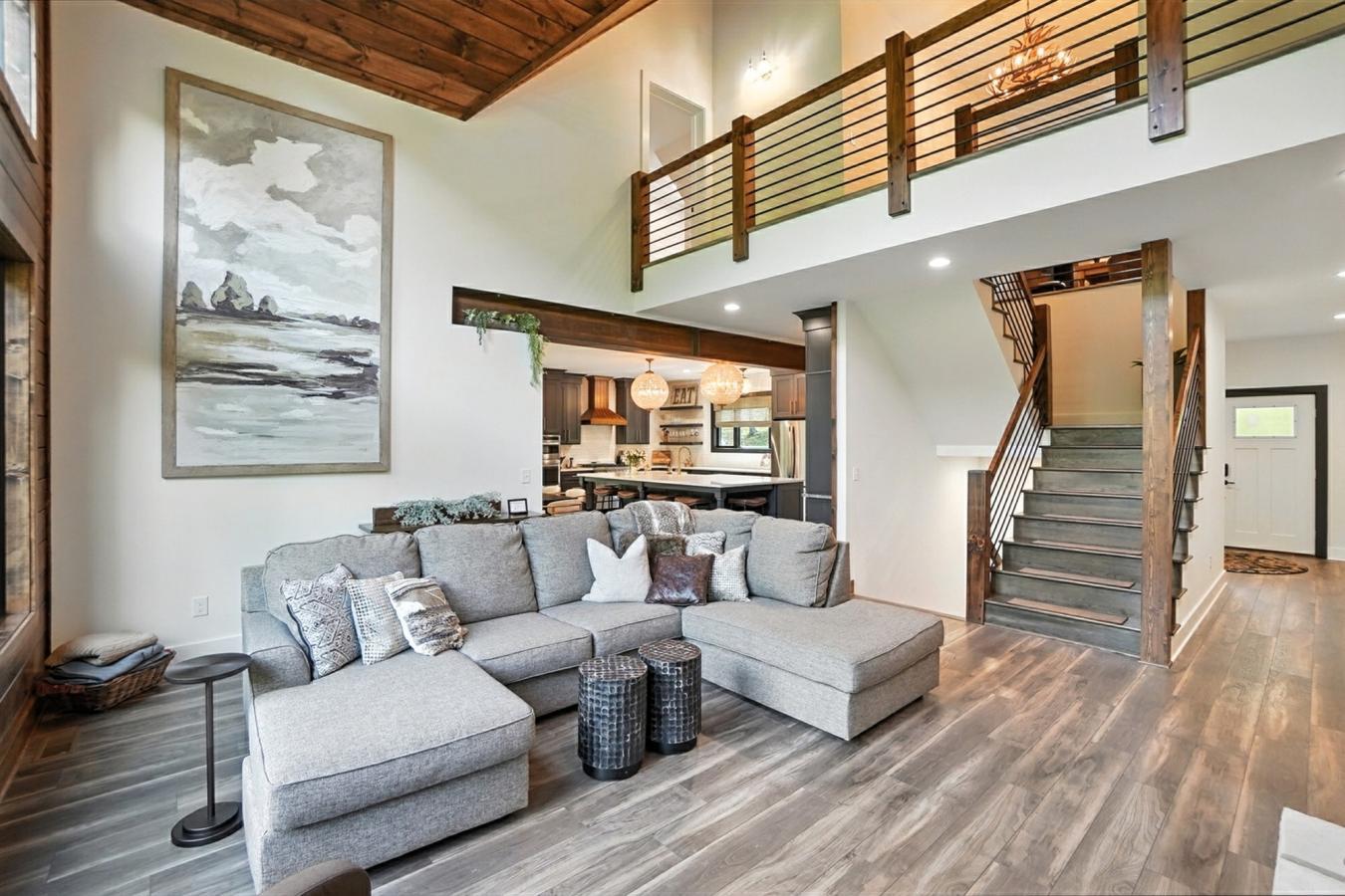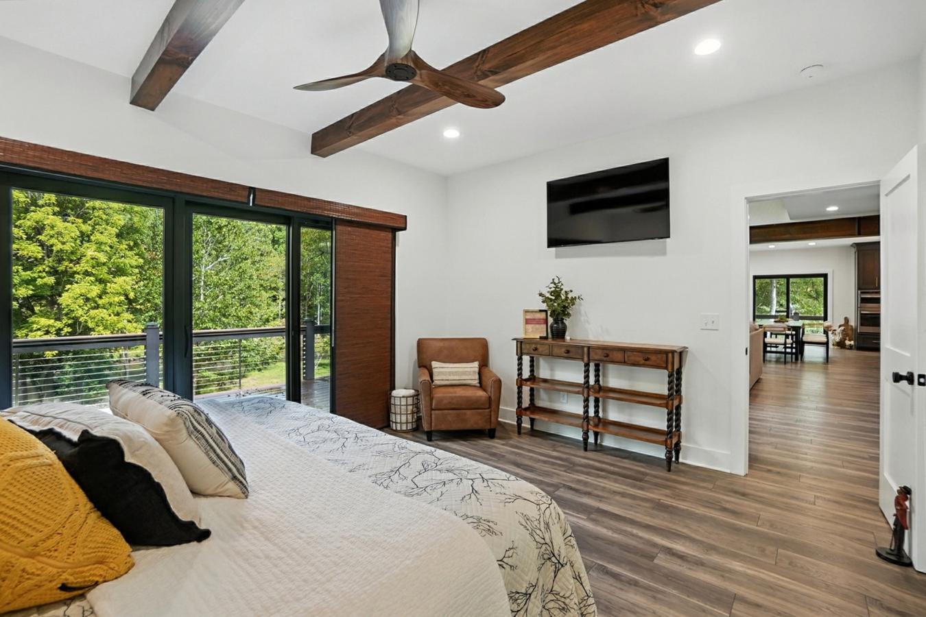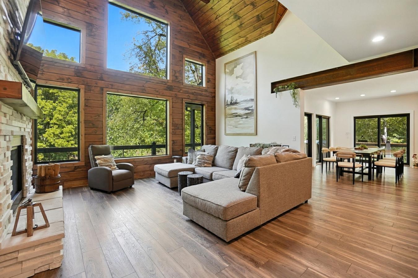 Step into serene luxury with this stunning modern farmhouse perched on 1.5 acres along the New River! Designed for effortless living and entertaining, the open-concept layout is filled with natural light and panoramic views through expansive windows. Inside, discover an open-concept layout bathed in natural light, with expansive windows framing stunning river and mountainside views.