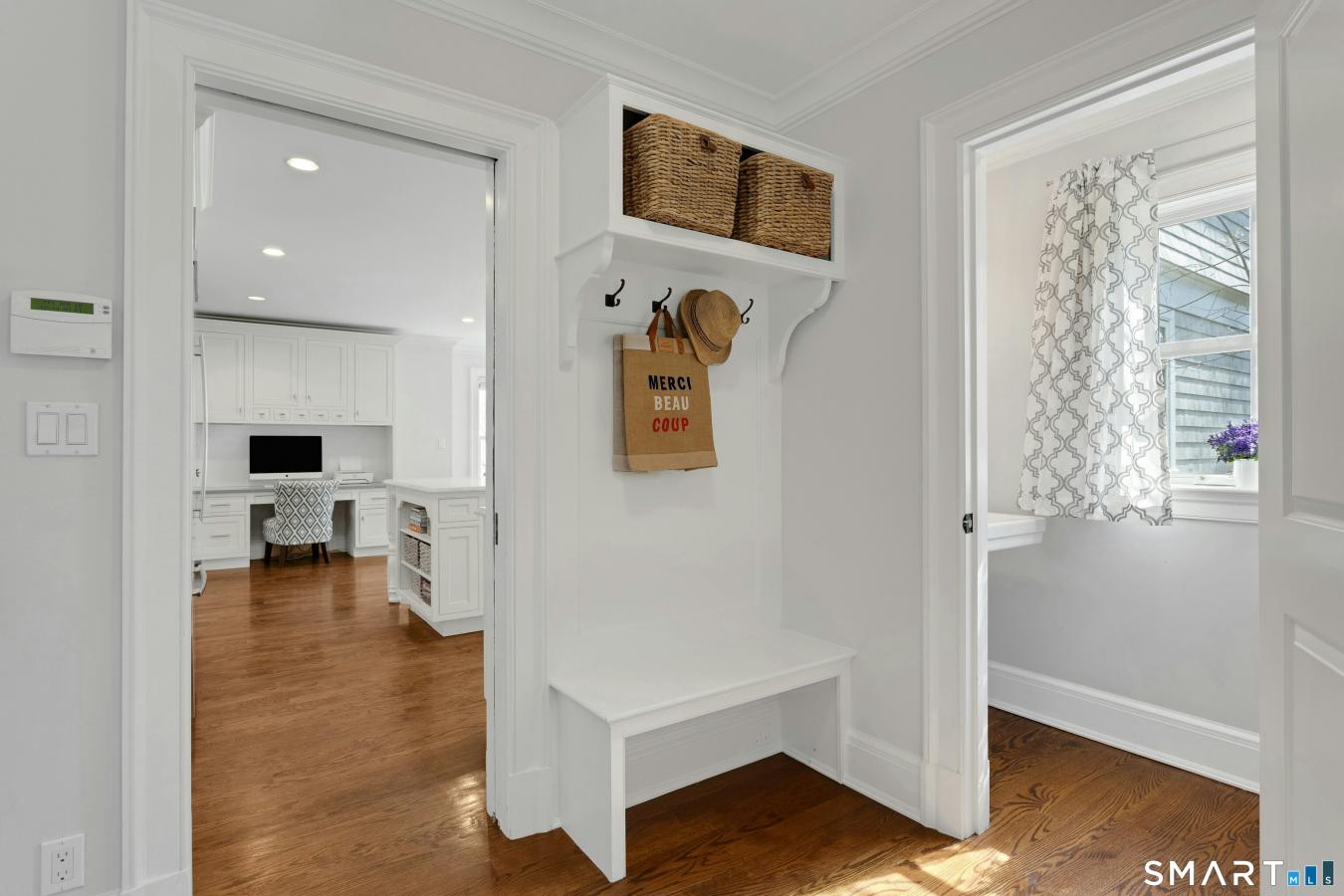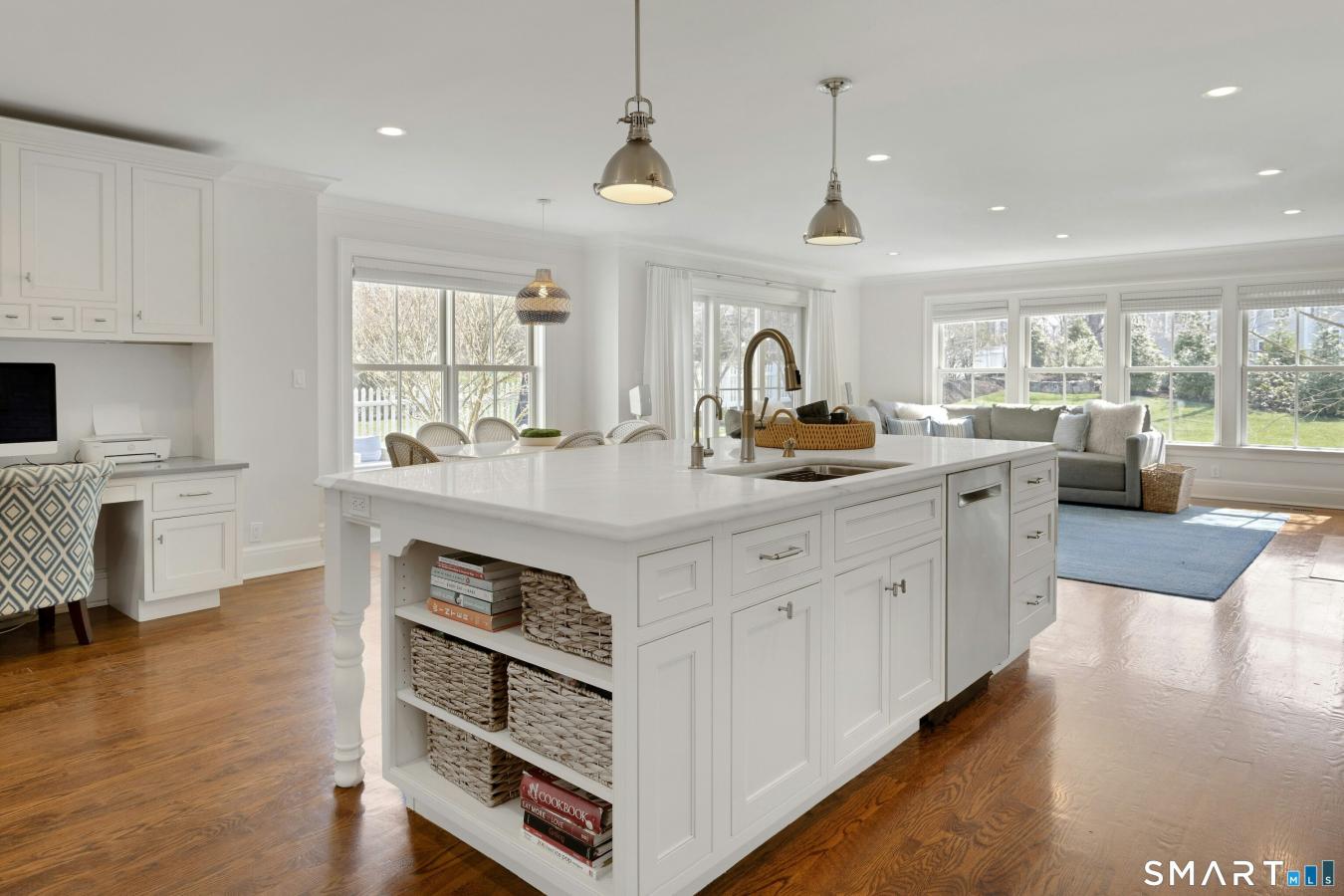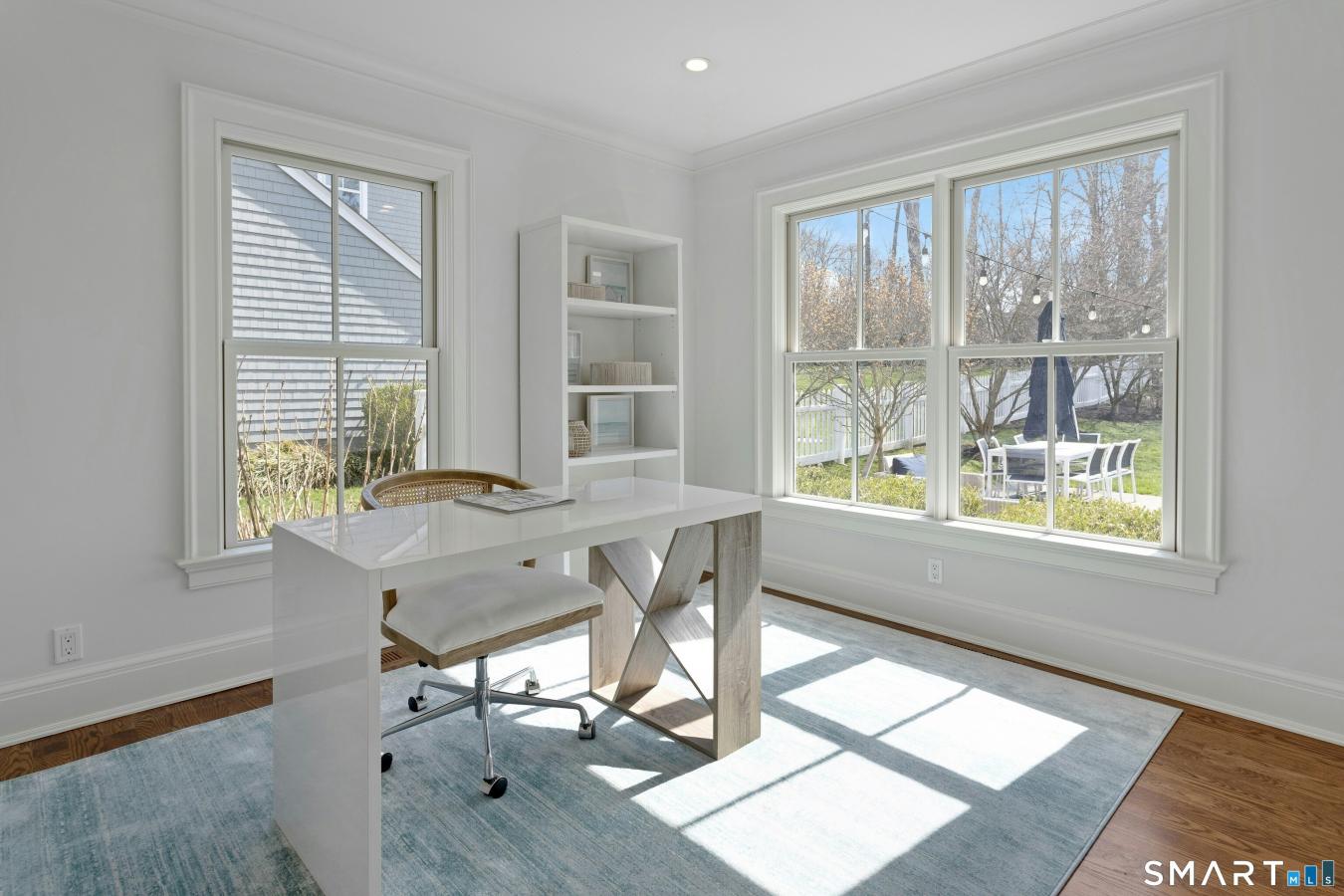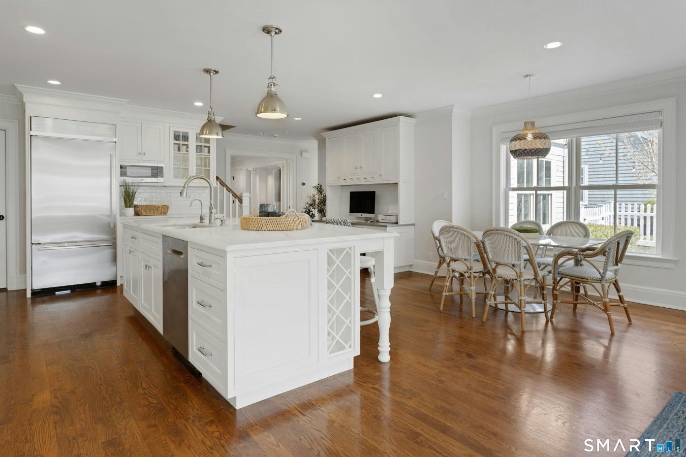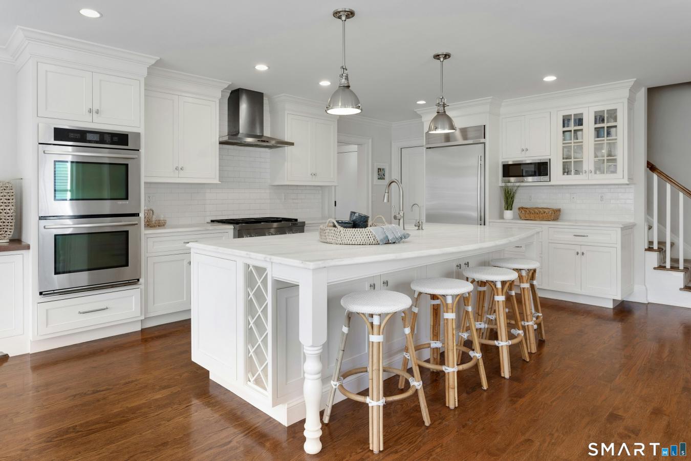 This expansive 4,400 sf colonial, fully rebuilt in 2013, offers a refined blend of comfort, scale, and thoughtful design. A welcoming entry leads to a gracious living room with a fireplace, flowing seamlessly into a formal dining room well suited for both intimate dinners and larger gatherings. At the center of the home, the sunlit gourmet kitchen features marble countertops, a 6-burner range, double wall ovens, and a large island, opening seamlessly to the family room with a fireplace, custom built-ins, and sliding doors to the patio. Outdoor living is equally well considered, with a bluestone patio extending into a level, professionally landscaped yard that supports both relaxation and recreation. The first floor also offers a private office (or guest suite) w/full bath and a mudroom designed for everyday convenience. Upstairs, the primary suite features cathedral ceilings, two walk-in closets, and a spa-like marble bath w/soaking tub and separate shower. Three additional bedrooms, a library/homework room, and a spacious laundry room provide comfort and efficiency. The bright third floor and finished lower level provide additional living space and invite imagination-a movie room, home gym, playroom, or gathering space. Ideally located steps from the 65-acre Woodland Nature Preserve and within walking distance to the train, shopping, and restaurants. This home has exceptional flow and offers the perfect blend of space, function, and convenience.