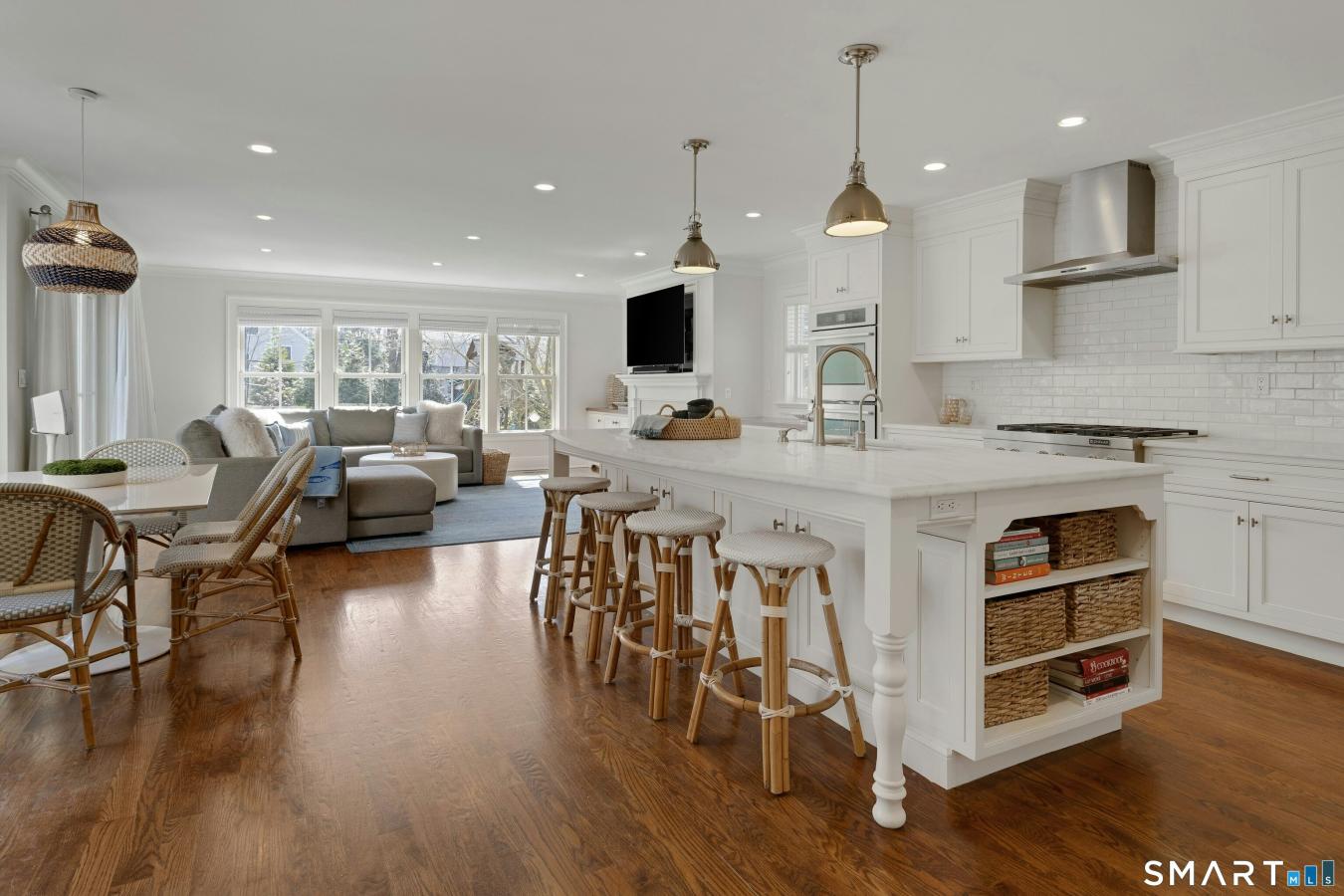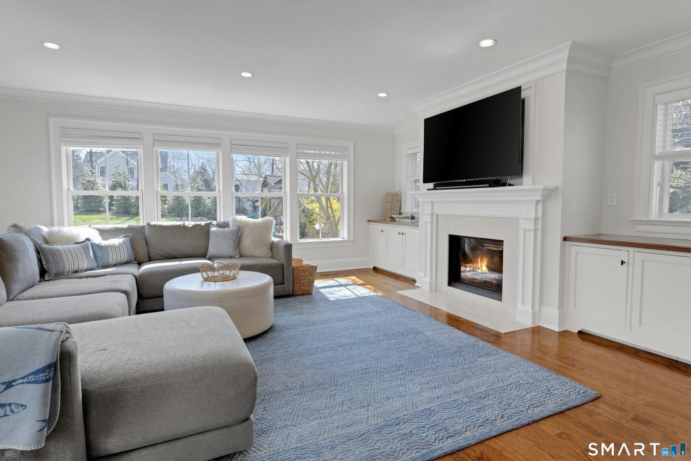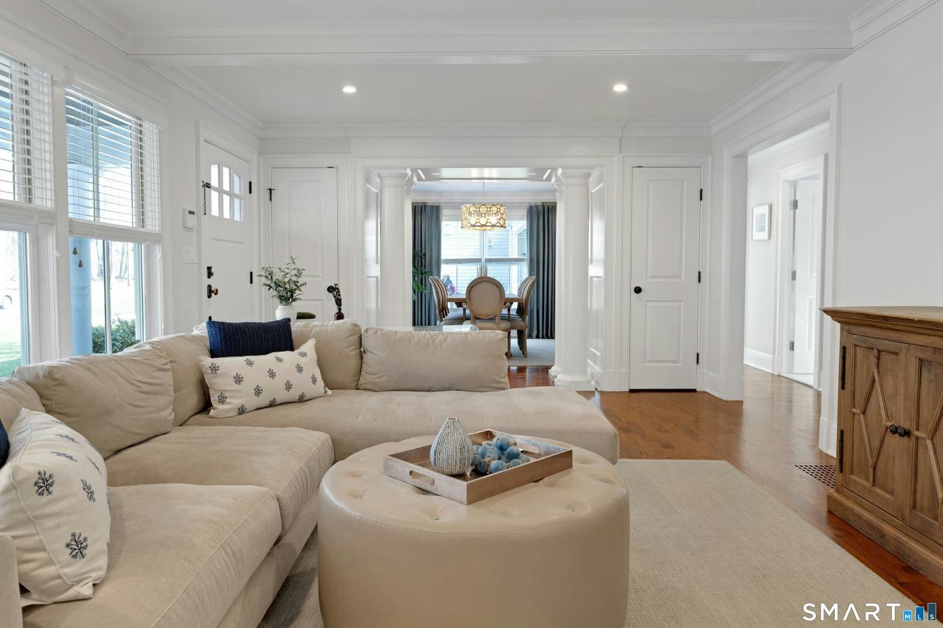 This expansive 4,400 sf colonial, fully rebuilt in 2013, offers a refined blend of comfort, scale, and thoughtful design. A welcoming entry leads to a gracious living room with a fireplace, flowing seamlessly into a formal dining room well suited for both intimate dinners and larger gatherings.