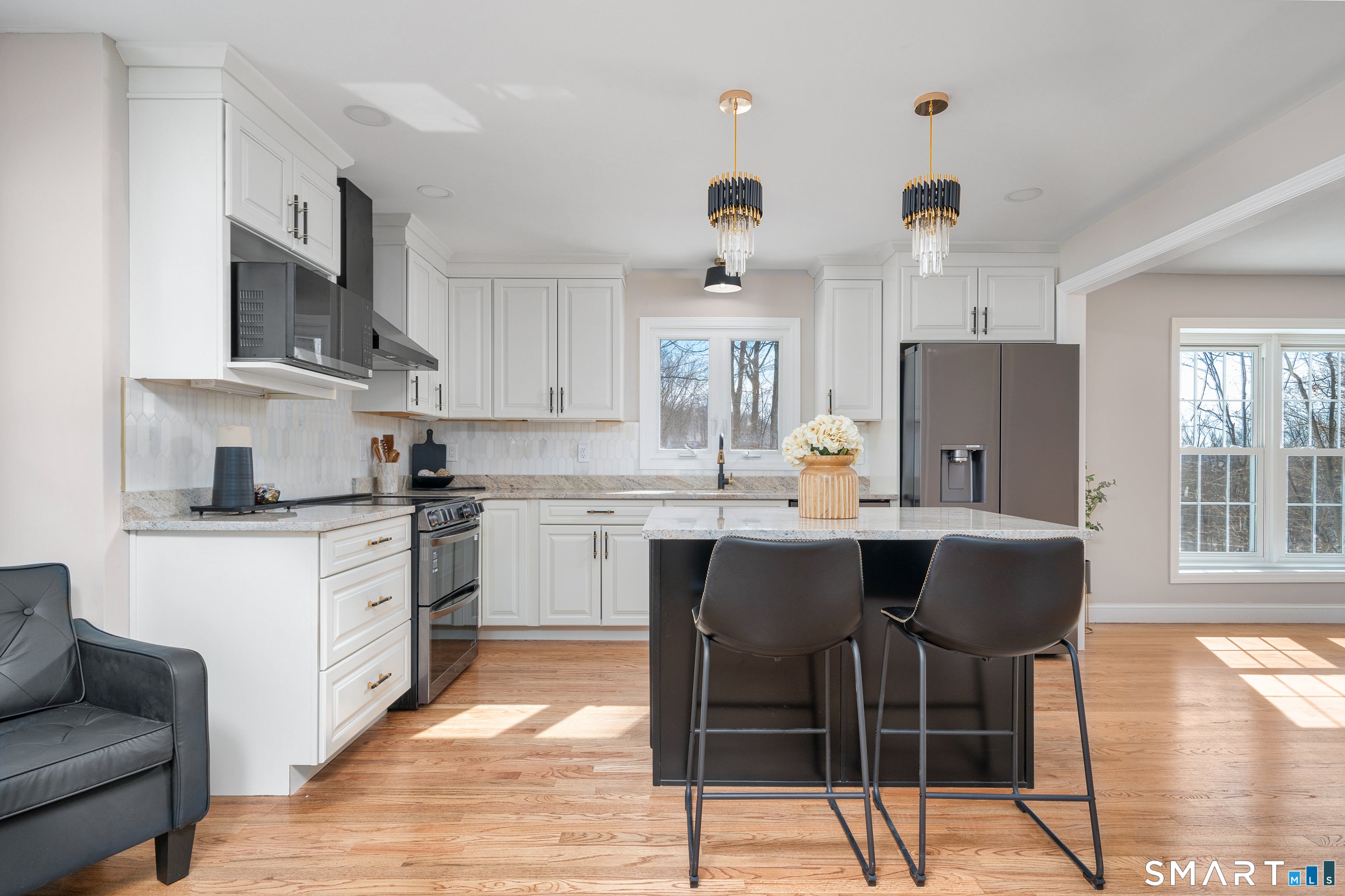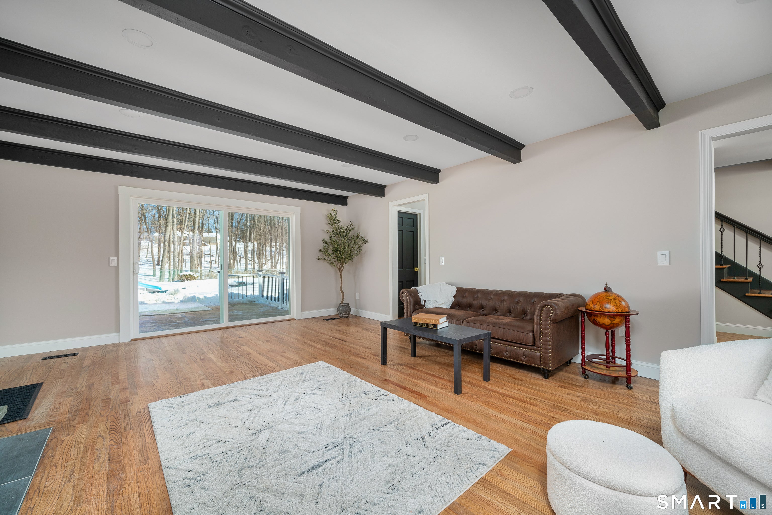 Absolutely stunning 5-bedroom, 2.5-bath Colonial offering over 3,600 sq ft on 1.23 acres in a sought-after neighborhood. A welcoming entry showcases beautiful hardwood floors throughout. The spacious living room flows seamlessly into the dining room, ideal for entertaining. The remodeled kitchen features granite countertops, stainless steel appliances, abundant cabinetry, a center island, and a dry bar/coffee station, with views of the private backyard. A main level laundry room provides convenient backyard access. The expansive family room offers a stone wood-burning fireplace, a slider to the deck, and access to the oversized 2-car garage. Large windows throughout fill the home with natural light. Upstairs youll find five generously sized bedrooms and two full baths. The phenomenal primary suite includes a double vanity with a smart mirror, radiant heated floors, a large walk-in closet, and an additional linen closet. The finished walk-out lower level provides additional living space. The backyard is perfect for entertaining with a deck and in-ground pool. Major updates include a brand-new roof, high-efficiency heat pump, new central air, gutters and freshly painted exterior. Ten minute drive to the train station, (less than 2 hour commute to NYC). Be sure to view the video tour.