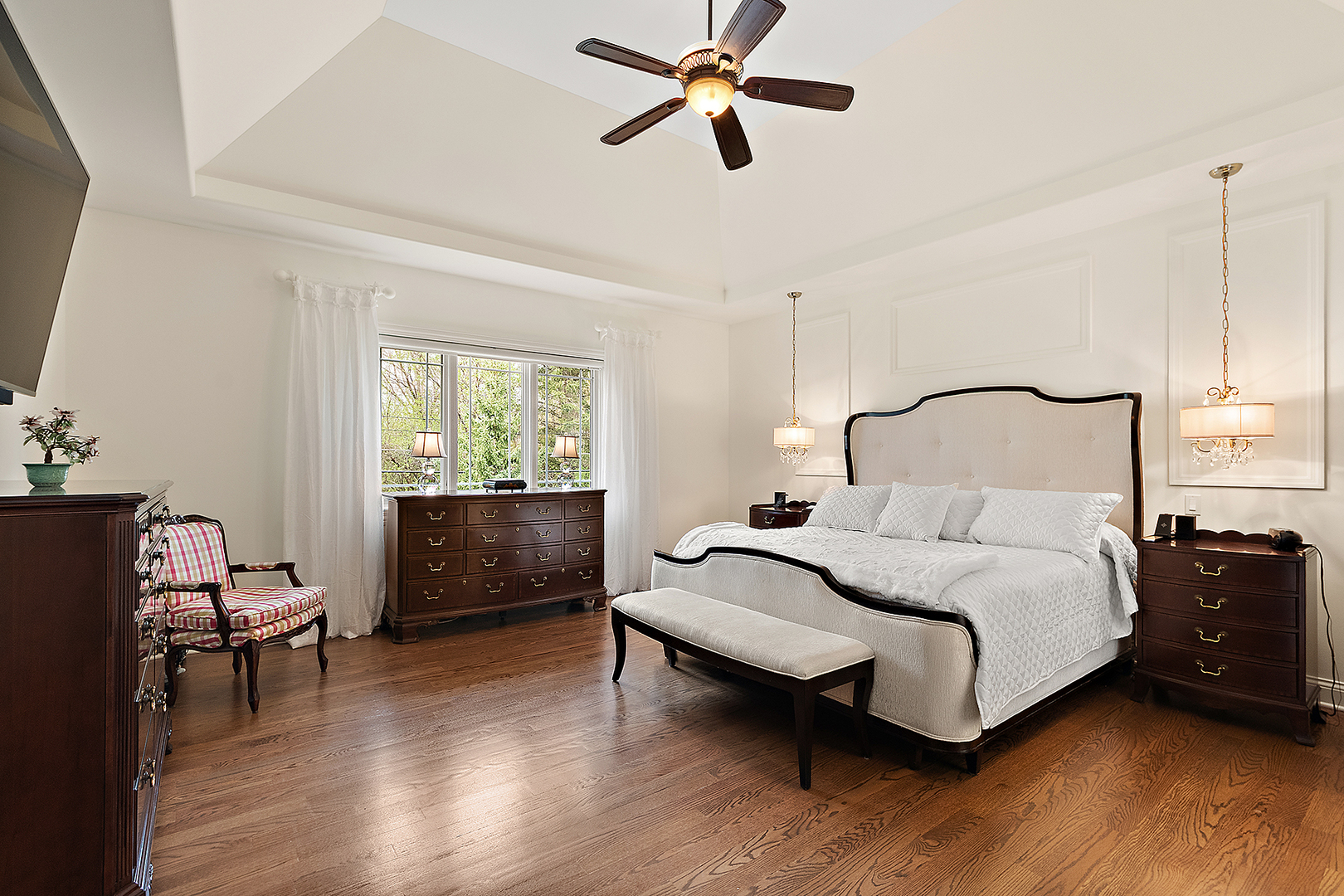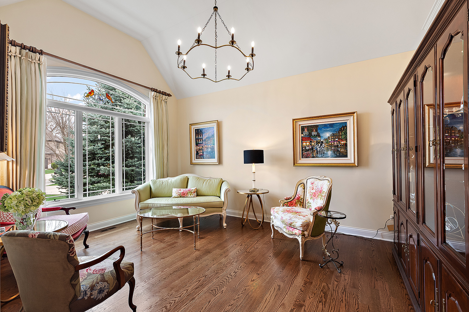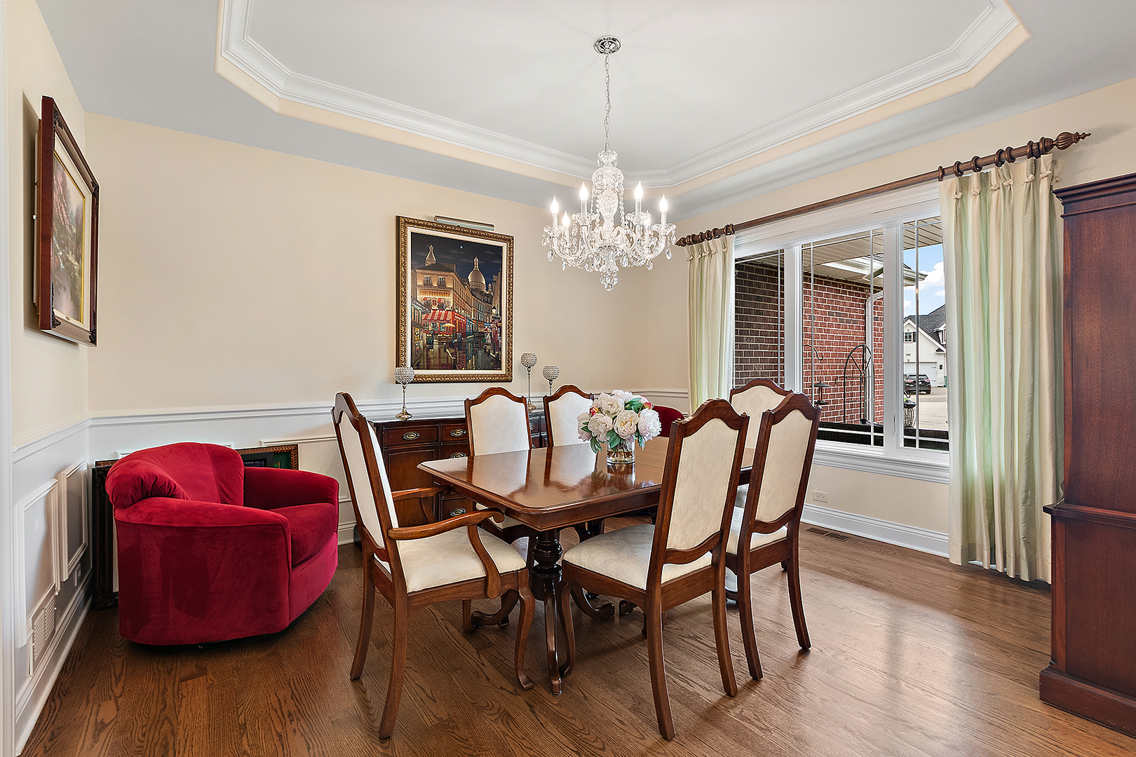Experience refined elegance and exceptional craftsmanship in this stunning 3900 sq. ft. custom-built home, ideally positioned on a quiet cul-de-sac in sought-after Orland Park. Step inside to a breathtaking two-story family room with soaring 19-foot ceilings, anchored by a striking white stone fireplace. Rich birch hardwood flooring flows throughout the main level, complemented by a custom staircase and upscale decorative lighting, including Swarovski crystal accents, creating a warm yet sophisticated atmosphere. The heart of the home is a designer kitchen featuring Brakur cabinetry, quartz countertops, premium Bosch appliances (including a double oven), under-cabinet lighting, and a large island complete with a built-in wine cooler. The adjacent four-season sunroom, surrounded by 10 windows and French doors, complete with corner fireplace, offers year-round enjoyment and seamless indoor/outdoor living. A highly desirable main-level primary suite delivers privacy and luxury, highlighted by a 13-foot tray ceiling, spa-inspired bath with a vanity, dual sinks, a walk-in doorless shower, a soaker tub and yes, wainscoting with chandelier and decorative ceiling! A gorgeous space designed for comfort and relaxation. Upstairs and beyond, the home offers flexibility for future expansion, including potential living space above the garage and a full lookout basement with roughed-in plumbing and duct work, ready for customization. Exterior & smart features Include: new roof, gutters, and Marvin windows; composite deck with 10x13 pergola; professionally lit landscaping; large yard with black aluminum fencing; and lawn sprinkler system. Expanded garage (extra 3 feet) with epoxy floors, heater, and battery backup door system. Mechanical & Efficiency Highlights include: dual HVAC systems, battery backup sump pump, and an installed radon mitigation system. This home offers a rare combination of luxury finishes, thoughtful upgrades, and future potential, all in a prime Orland Park location close to parks, shopping, dining, and top-rated schools. Occupancy available July 31.