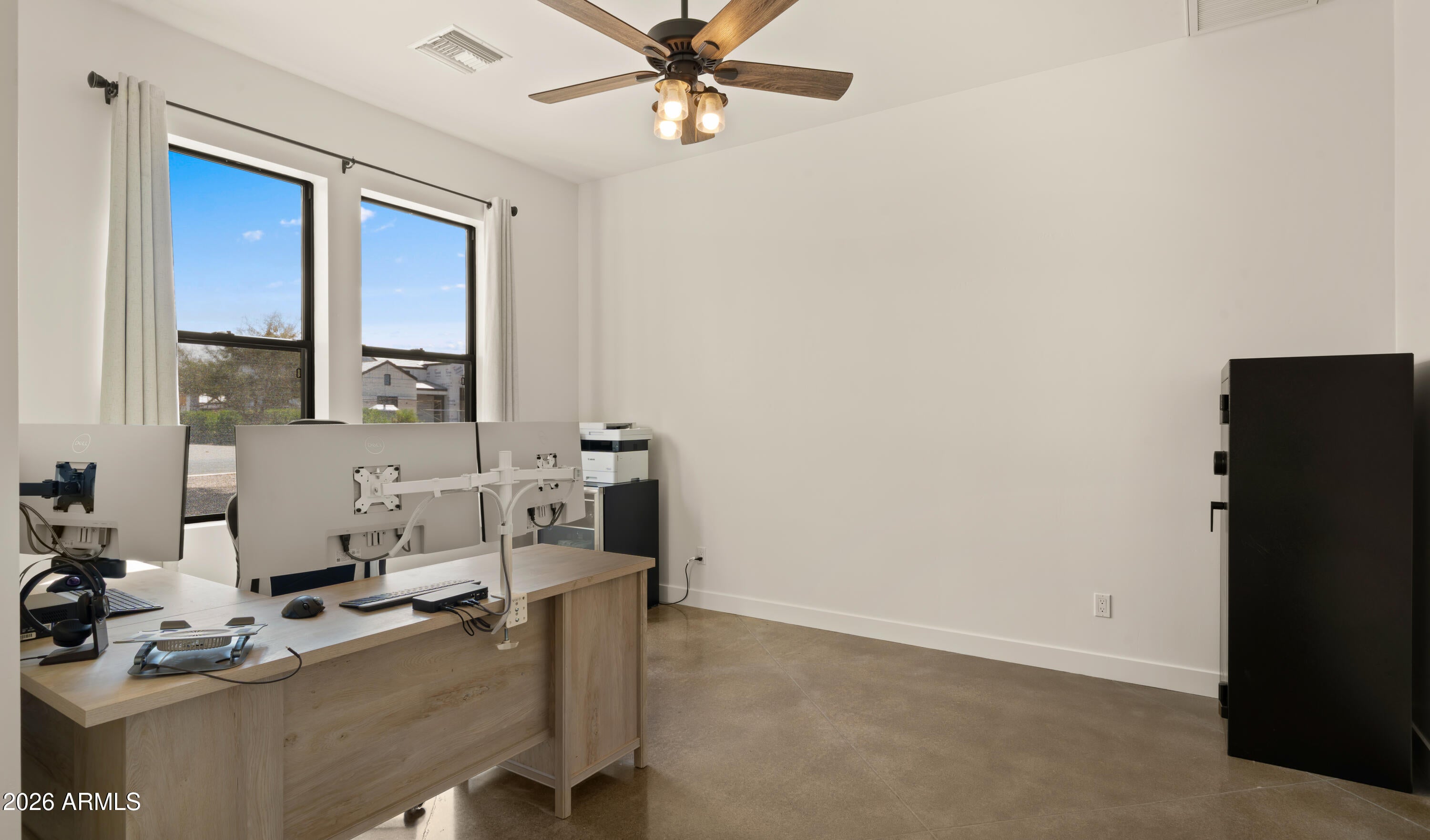 Discover a rare opportunity to own a custom home in an intimate, gated enclave of just 12 exclusive residences in the heart of Queen Creek.Set on over an acre within the highly sought-after Chandler Unified School District, this home offers a lifestyle thats becoming increasingly hard to find--space, privacy, and a true sense of calm, all just minutes from everyday conveniences.Surrounded by the natural beauty of the San Tan Mountains, the area invites you to enjoy the outdoors, from scenic trails to breathtaking desert sunsets. Nearby, Horseshoe Park & Equestrian Centre hosts year-round events, markets, and community gatherings--adding energy and connection to everyday life. And just a short drive away, the vibrant Pecan Lake Entertainment District offers a growing mix of dining, boutique shopping, and local hotspots--making it easy to enjoy a night out or a relaxed weekend close to home.With polished exposed concrete flooring for a contemporary edge, the home has been thoughtfully refreshed with newly painted interiors and a professionally epoxied garage floor, creating a clean, move-in-ready feel. A well-designed split floor plan offers flexibility and comfort, with spaces that adapt to how you live.Step outside to a sprawling backyard designed for both relaxation and possibility--lush grass, an oversized covered patio, and room to expand with a future casita, custom garage, or whatever your lifestyle calls for.Homes in communities like this--where privacy, location, and lifestyle align--are exceptionally rare.