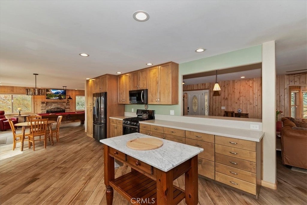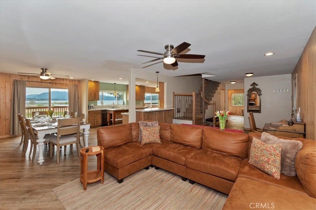 Welcome to lakefront living at its finest in the highly sought-after Eagle Point. Perfectly positioned on a generous 14,168 sq ft lot, this beautifully updated 4-bedroom, 3-bathroom home offers 2,755 sq ft of thoughtfully designed space and an unbeatable front-row seat to Big Bear Lake. Step inside to an open-concept floor plan designed for both comfort and entertaining, featuring a spacious living area anchored by one of three fireplaces, creating the perfect mountain ambiance year-round. The expansive kitchen is ideal for hosting, complete with alder cabinetry, ample counter space, and seamless flow into the main living and dining areas. This home was made for gathering and unwinding, with a separate game room featuring a pool table and its own fireplaceperfect for aprs-ski evenings or summer nights after a day on the lake. The primary suite is a true retreat, offering its own fireplace, added soundproof insulation for privacy, and a cozy, elevated feel. Thoughtful upgrades are found throughout, including cedar-lined closets, porcelain flooring downstairs, waterproof vinyl flooring upstairs, and a striking oak staircase that ties the home together with warmth and style. Step outside onto the back deck and take in what may be some of the most breathtaking sunset views in Big Bear. With lakefront access and dock rights, this property offers the ultimate waterfront lifestyle. Enjoy front-row seats to the 4th of July fireworks over the lake and the magical torchlight parade on New Years Everight from your own backyard. Complete with an attached 2-car garage and located in one of Big Bear Lakes most desirable neighborhoods, this home is the perfect blend of luxury, comfort, and iconic mountain living.