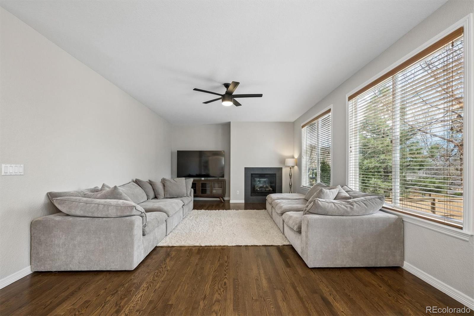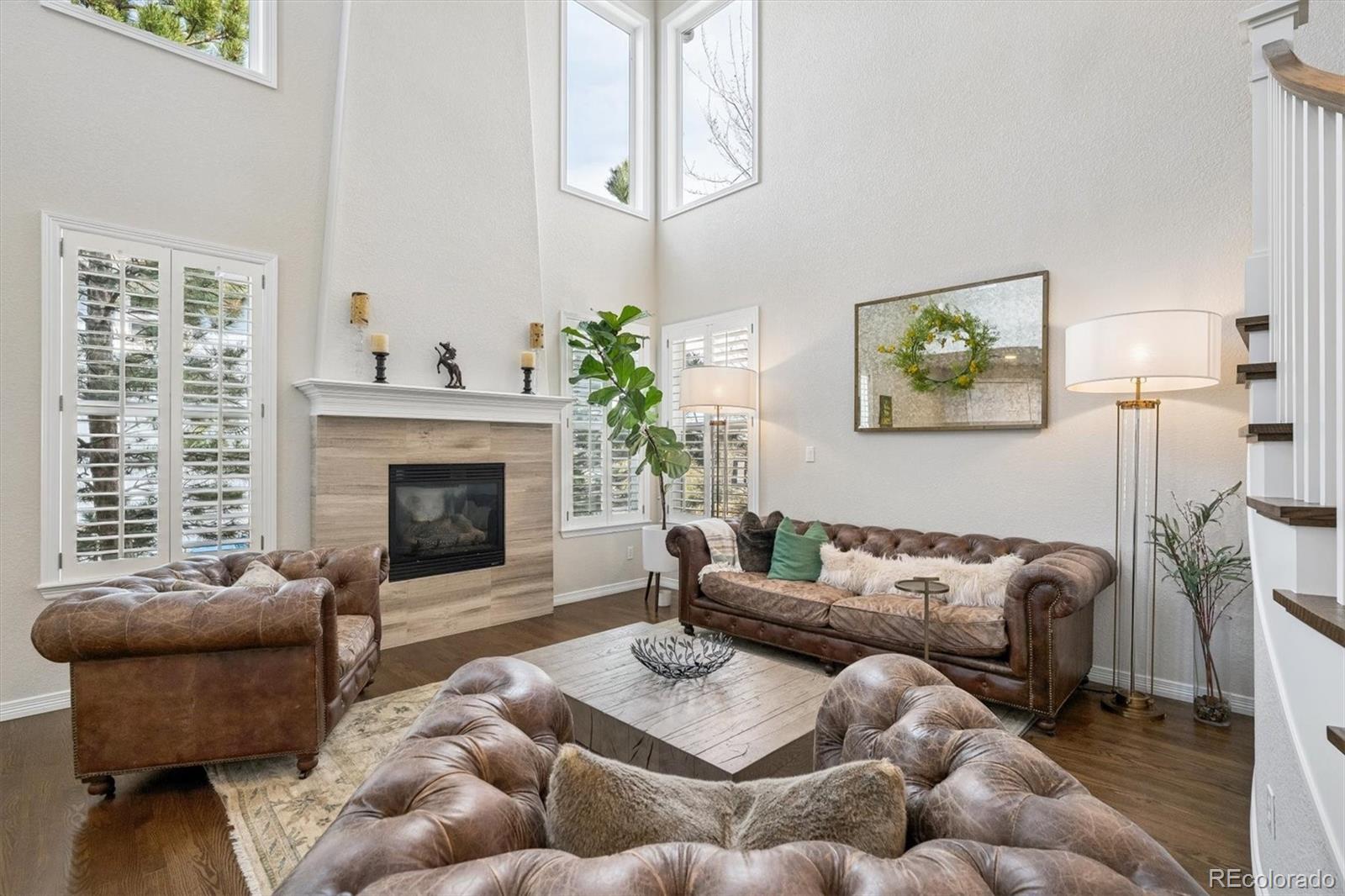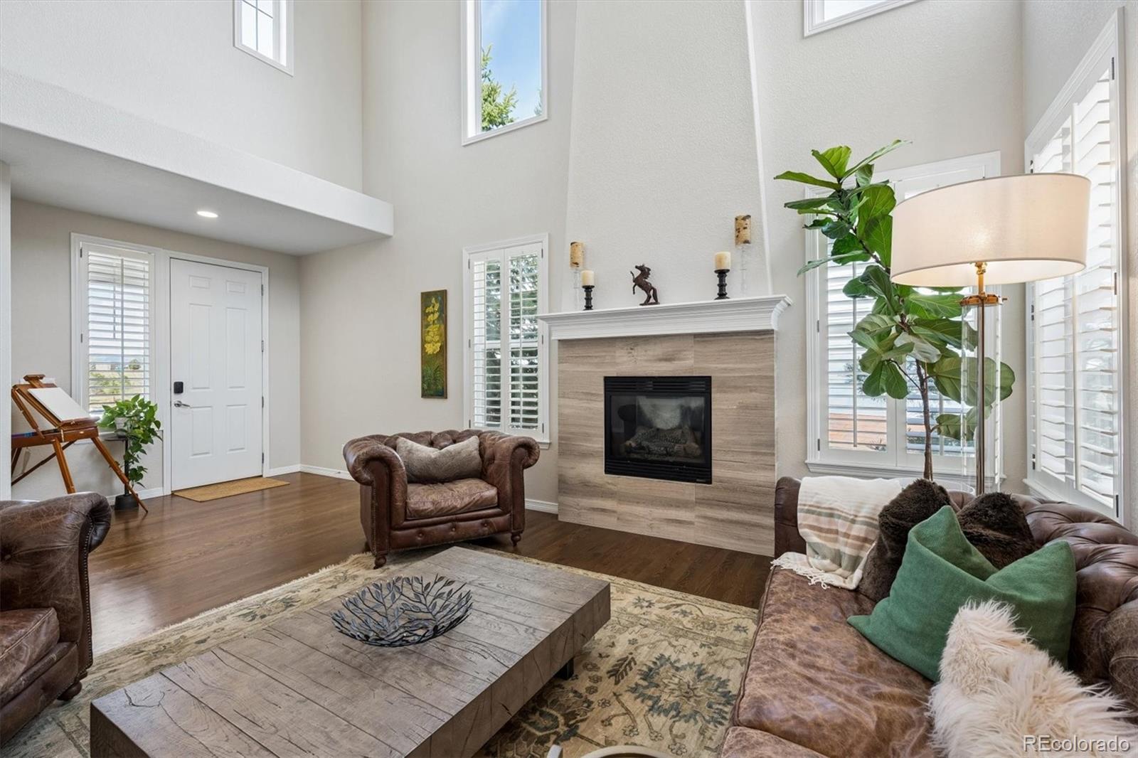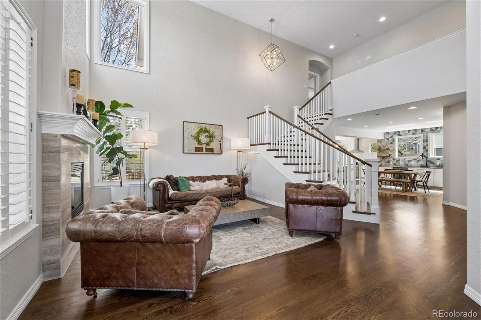 Highly Sought-After Home Just a Year Ago: Sellers sadly relocating out of state for job! Elevated Living in this Exclusive Turnkey Gem in popular Firelight. Premium Lot w/Panoramic Mountain Views & directly across from park, this superbly updated 5 Bed (1 main floor), 4 Bath w/Finished Basement home has many custom touches! Highly impressive open layout featuring custom remodel with removed wall from Dining Room to Kitchen, greatly opening the spaces. Notice the extensive hardwoods thruout main level! Dreamy Reimagined Gourmet Kitchen: ample custom soft-close cabinets, lower drawers & huge island, Bosch stainless appliances including gas range & hood, quartz counters & tile wall/backsplash. Kitchen opens to spacious Family Room w/2nd fireplace & chic Dining Room: custom tile accent wall w/floating shelves & built-in buffet w/drink cooler. Soaring vaulted ceilings, 2-story windows & grand fireplace in formal Living Room add refined feel. Ultra convenient main floor Bedroom/Office w/private 3/4 Bath, separate 1/2 Bath for guests & custom Mud Room space w/bench/wall hooks! Escape in the luxury Primary Retreat, complete with sitting area, sizeable walk-in closet & attached spa-like 5-pc Bath. 3 secondary Beds share the 4-pc full Bath w/dual sinks, private tub/shower/toilet. Practical upper Laundry Room features many cabinets, utility sink, W&D stay. More living space in multi-function Finished Basement. Tons of storage in huge storage room, crawl space, oversized 3 car garage. Enjoy the private Back Yard w/extended custom patio & many mature trees. Gorgeous curb appeal boasting new exterior paint (2024), custom walkway, covered front porch. More Updates: New Carpet (2025), Class 4 Roof (2023), HVAC (2021), Sump Pump, Reverse Osmosis System. Perfect location across from Red-Tail Park w/playground, sport fields. Access miles of trails & walk to all 3 top-rated schools! Top-notch amenities w/low HOA gets 4 rec centers, pools, tennis, fitness, much more. One of a kind home!