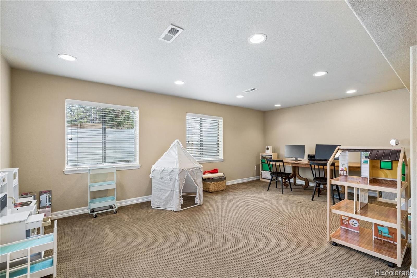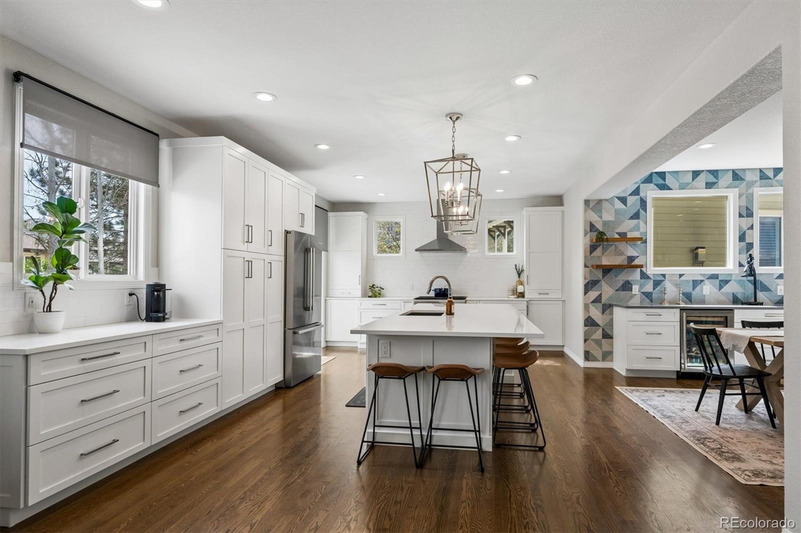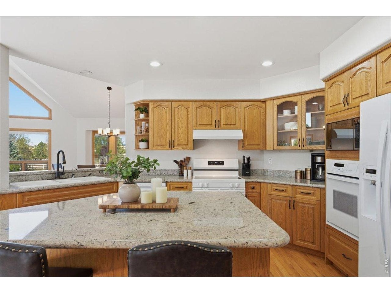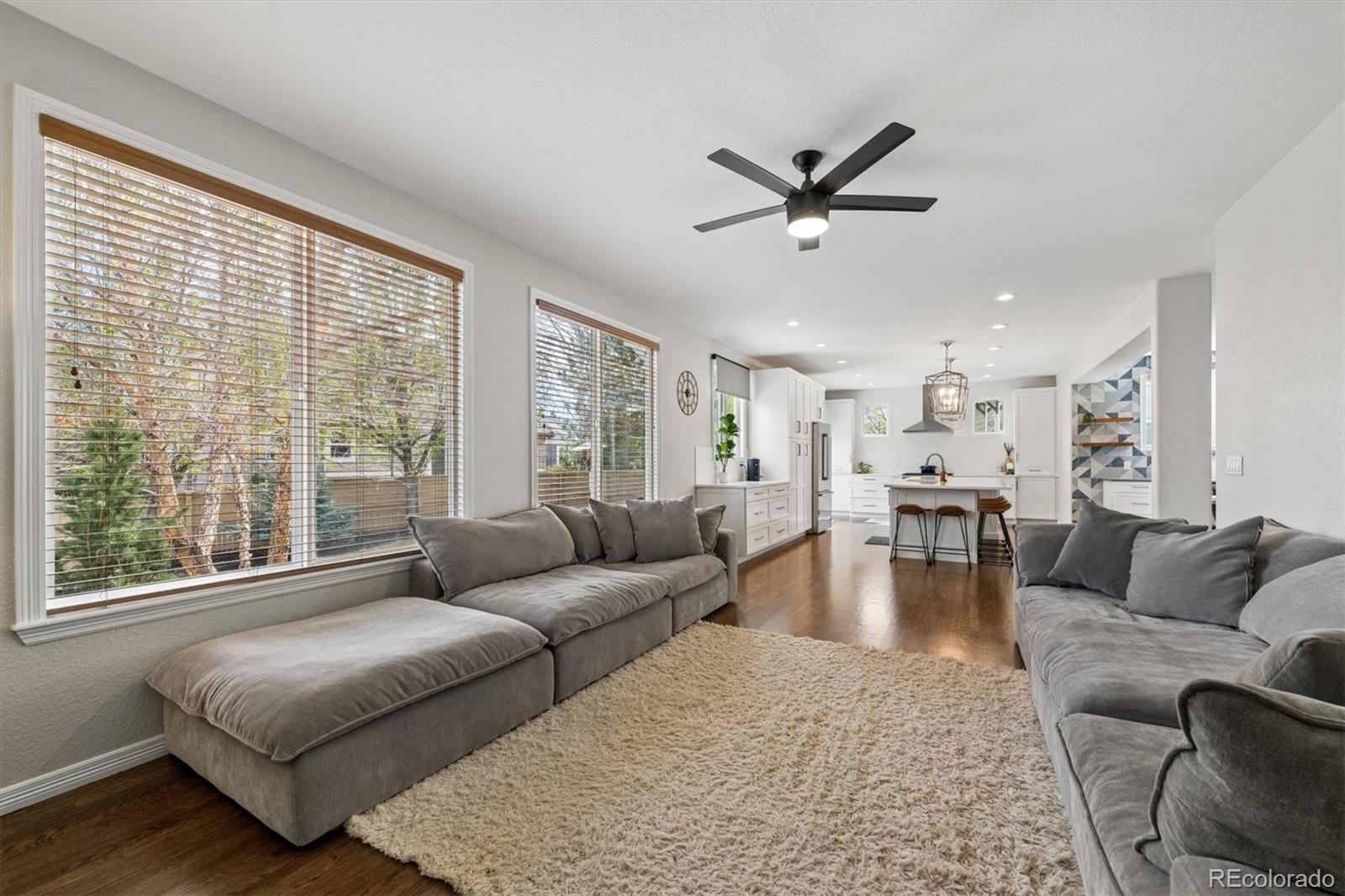 Highly Sought-After Home Just a Year Ago: Sellers sadly relocating out of state for job! Elevated Living in this Exclusive Turnkey Gem in popular Firelight. Premium Lot w/Panoramic Mountain Views & directly across from park, this superbly updated 5 Bed (1 main floor), 4 Bath w/Finished Basement home has many custom touches! Highly impressive open layout featuring custom remodel with removed wall from Dining Room to Kitchen, greatly opening the spaces. Notice the extensive hardwoods thruout main level! Dreamy Reimagined Gourmet Kitchen: ample custom soft-close cabinets, lower drawers & huge island, Bosch stainless appliances including gas range & hood, quartz counters & tile wall/backsplash. Kitchen opens to spacious Family Room w/2nd fireplace & chic Dining Room: custom tile accent wall w/floating shelves & built-in buffet w/drink cooler. Soaring vaulted ceilings, 2-story windows & grand fireplace in formal Living Room add refined feel. Ultra convenient main floor Bedroom/Office w/private 3/4 Bath, separate 1/2 Bath for guests & custom Mud Room space w/bench/wall hooks! Escape in the luxury Primary Retreat, complete with sitting area, sizeable walk-in closet & attached spa-like 5-pc Bath. 3 secondary Beds share the 4-pc full Bath w/dual sinks, private tub/shower/toilet. Practical upper Laundry Room features many cabinets, utility sink, W&D stay. More living space in multi-function Finished Basement. Tons of storage in huge storage room, crawl space, oversized 3 car garage. Enjoy the private Back Yard w/extended custom patio & many mature trees. Gorgeous curb appeal boasting new exterior paint (2024), custom walkway, covered front porch. More Updates: New Carpet (2025), Class 4 Roof (2023), HVAC (2021), Sump Pump, Reverse Osmosis System. Perfect location across from Red-Tail Park w/playground, sport fields. Access miles of trails & walk to all 3 top-rated schools! Top-notch amenities w/low HOA gets 4 rec centers, pools, tennis, fitness, much more. One of a kind home!