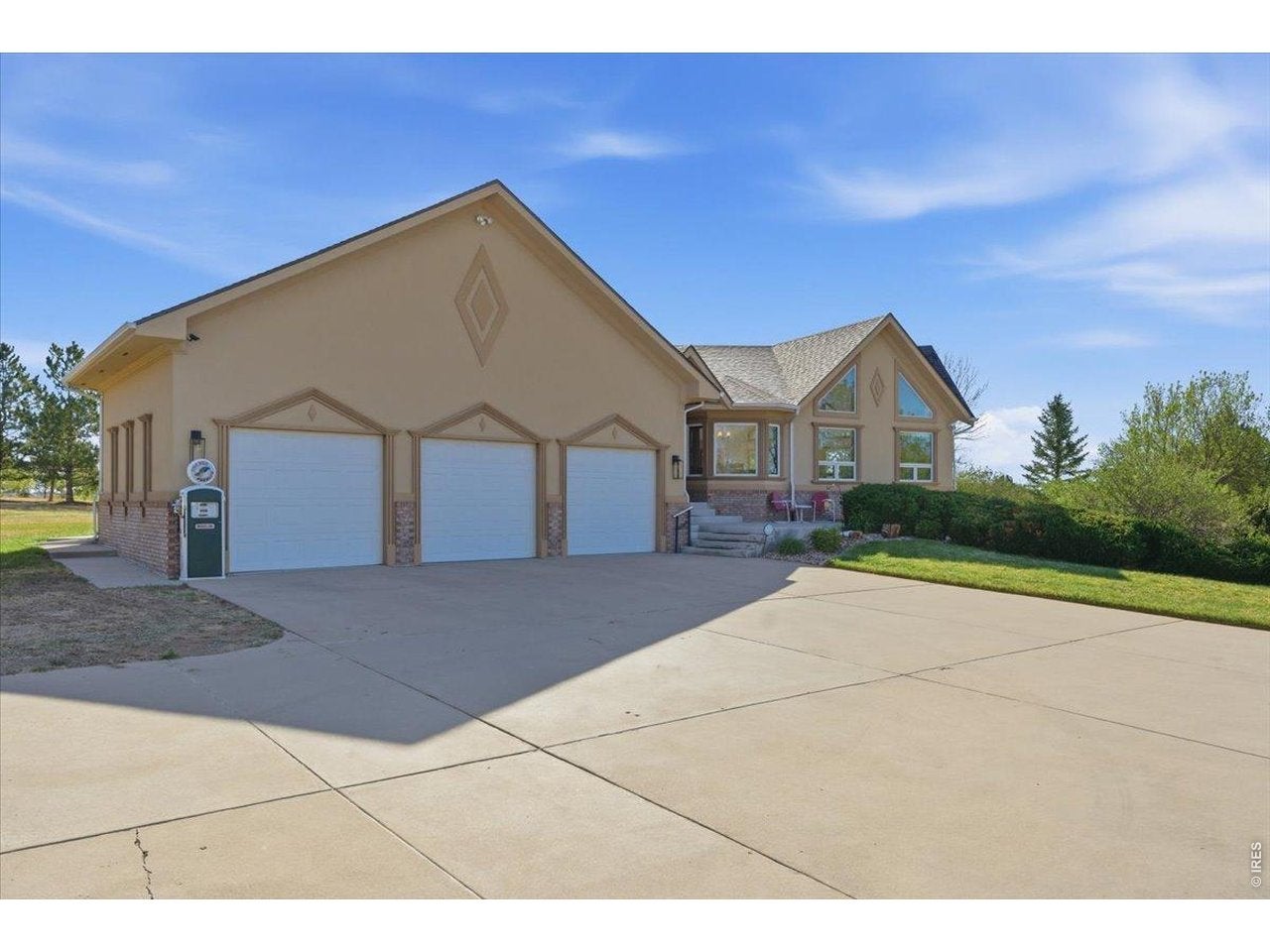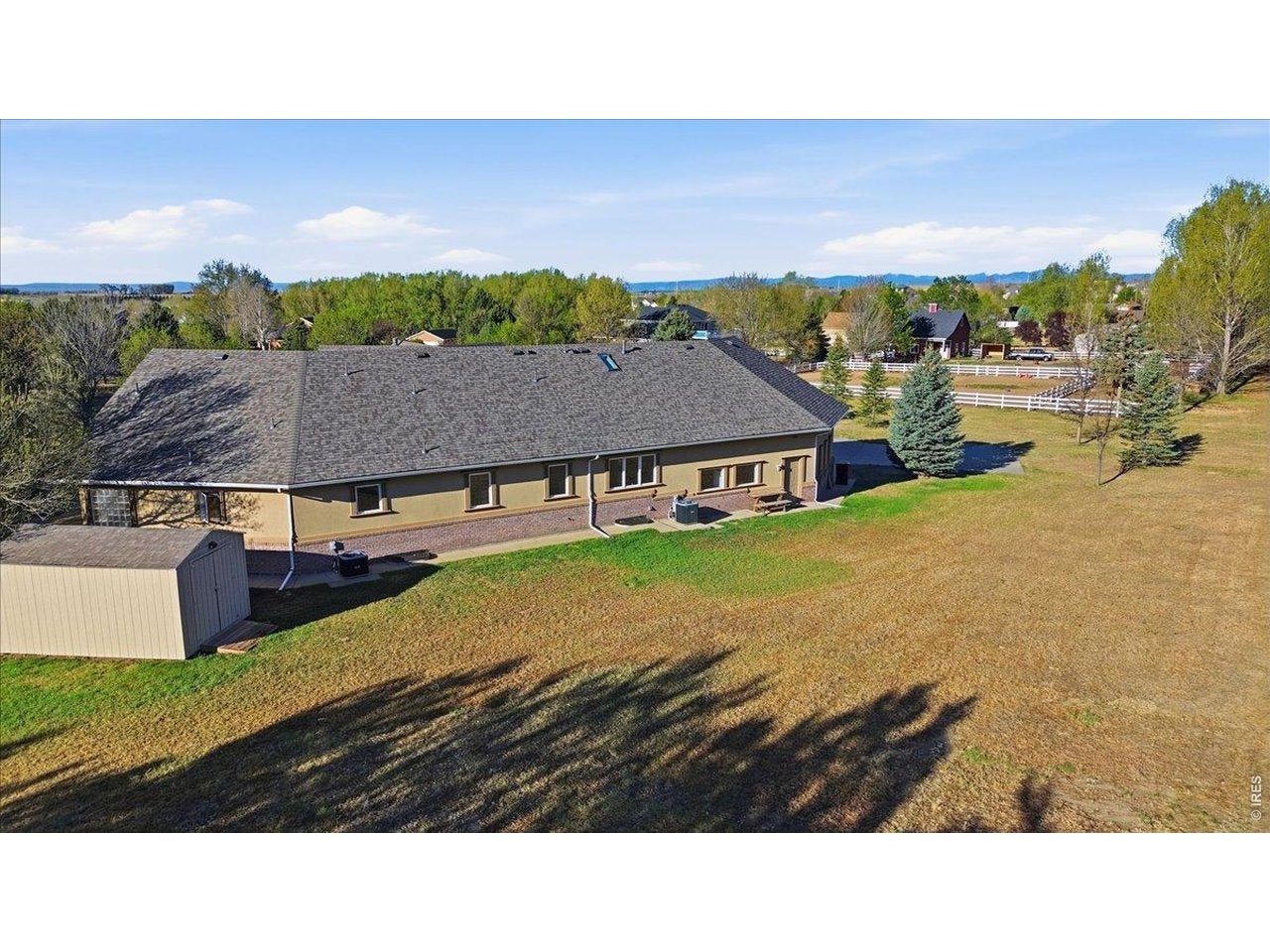 Amazing views on acreage. This home offers a rare combination of space, privacy, & possibility. The setting creates a sense of openness, with room to take in Colorado from your own backyard. With the potential for a horse property, the land invites a lifestyle that blends function with wide-open living. This home is designed for comfortable, everyday living with a natural flow between spaces. Huge windows provide natural light that fills the interior, enhancing the warmth and livability throughout. The basement is an additional entertainment space with a walk-out. The kitchen connects to the main living areas, supporting both daily routines & gatherings. Well-sized bedrooms provide flexibility for guests, work-from-home needs, or simply a place to recharge. Well established trees and landscaping, with room for outbuildings, or hobby use, the property offers both immediate enjoyment and future opportunity. Conveniently located near, shopping, and amenities, this property offers the balance of quiet acreage living with accessibility when it matters most. New roof, new carpet in basement, new paint... its a fresh new look.