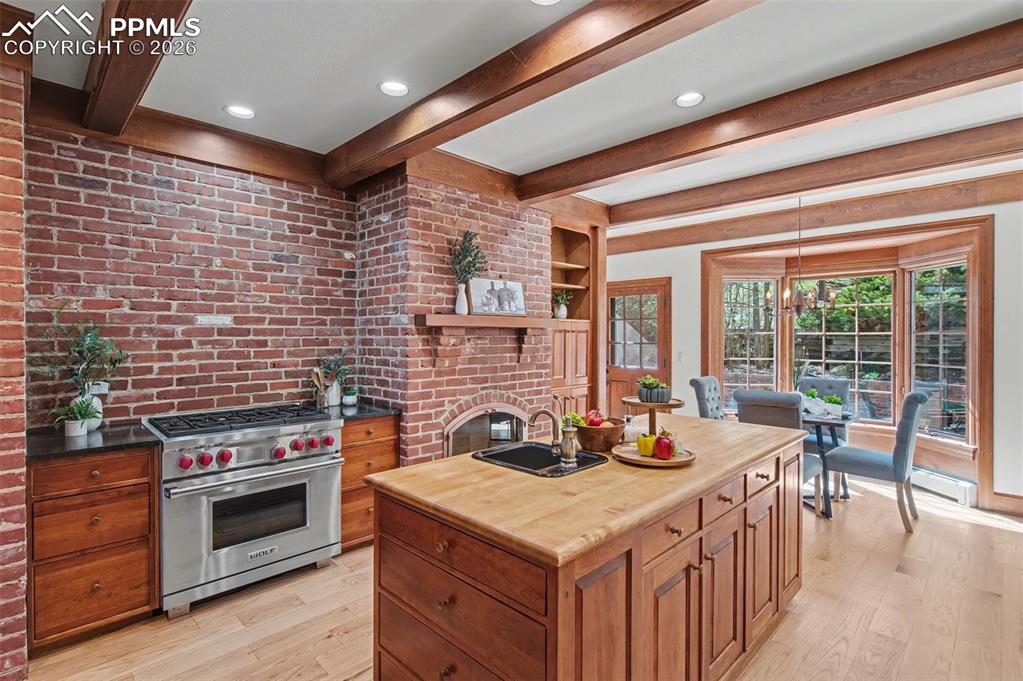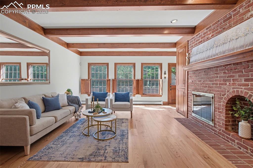 Welcome home to this coveted gem of a neighborhood (High Valley Park) so close to Old Broadmoor. This charming home has been lovingly maintained and comes with 4 bedrooms, 4 bathrooms, 2 main level gas fireplaces, main level living, including a sunroom off the primary bedroom, a 2 car garage, and additional guest parking. Including the unfinished basement, the total square footage is 5681. The star of this home is its vaulted ceiling with beams family room with built-ins and its own fireplace with a walk out to a new composite deck with gorgeous mountain views. There are three bedrooms upstairs with 2 full baths (one can function as a 2nd primary). The cozy chefs kitchen features brick, soapstone counters, and a 2 way fireplace to the 2nd family room, a pantry and warming drawer and Wolf gas range. It has space to eat in as well as opening out to an upgraded private patio/backyard (with gas hook up) adjoined by a terraced garden area. It also comes with its own hot tub and storage shed. The main level has hardwood floors that are newly refinished, new paint in the formal dining room and family room. The attached 2-car garage is heated. There are 2 high capacity hot water heaters, forced hot water heat has 6 zones and the home has an upgraded 50 year hail resistant fiberglass slate roof and an automatic sprinkler system. The current sellers had the lot professionally landscaped. This prime location is 5 minutes to I 25, 5 minutes to The Broadmoor and 10 minutes to downtown. It is ideally located in the highly rated Cheyenne Mountain District 12 school district on a quiet street.