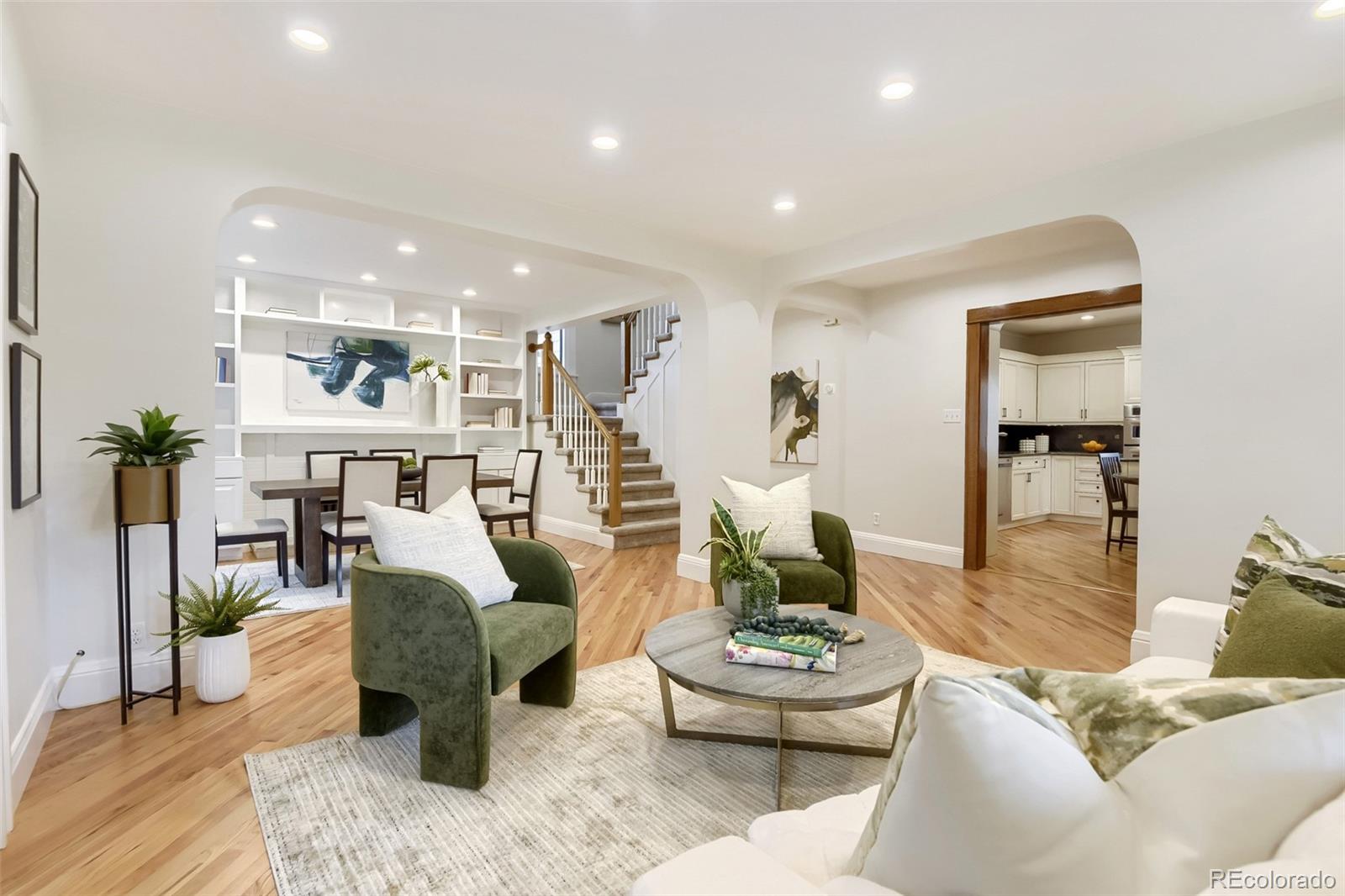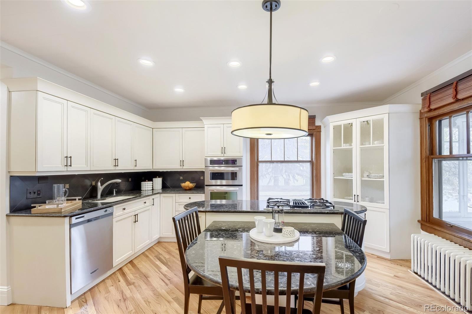 Stately, updated, Prairie Style 2 story bungalow located on a large corner lot just 2 blocks from popular Washington Park. Enter via a large front porch with swing that is the perfect place to watch the world go by. Step inside to see that many original architectural features remain including gleaming oak floors, original trim and a beautiful South facing sunroom. The open living and dining room provide a flexible floor plan and feature bookcases surrounding the fireplace and an additional built in storage cabinet. The updated kitchen is the heart of this home. It features high quality, painted wood, cabinetry, granite counters, modern appliances, a built in breakfast table, china cabinet and desk and ample pantry space. A half bath with main floor laundry complete this level. A back staircase leads to a large backyard with patio and mature landscaping that is perfect for summer barbecues. Upstairs there are 3 bedrooms and a freshly renovated 5 piece bath with jetted tub and separate tile shower. The lower level also provides flexibility. It has previously been used as a 2 bedroom rental unit, a man cave and as a hang out for teenagers in addition to guest and office space. The bath on this level, is fully updated with a tile shower and refurbished claw foot tub. The kitchen has modern cabinetry and appliances and a view of an additional patio. It also has a street level entrance and store room. Estimated rent is 2200 to 2400/mo for long term tenants. One feature that is rare in an older Washington Park home, is an attached garage. Look no further. This newer addition provides provides safety and security, ample parking for 2 cars plus storage and work space. There are no snowy alleys to navigate as the garage entry is on Dakota Ave. This is an excellent location that is within blocks of Wash Park, shops, restaurants and schools. Welcome home!