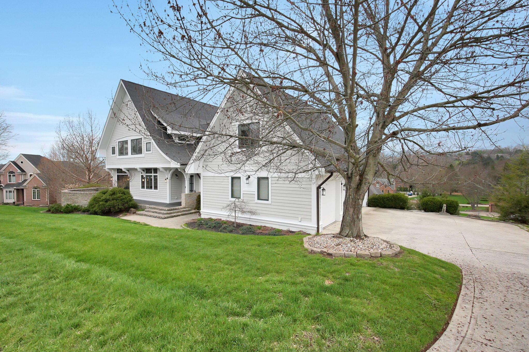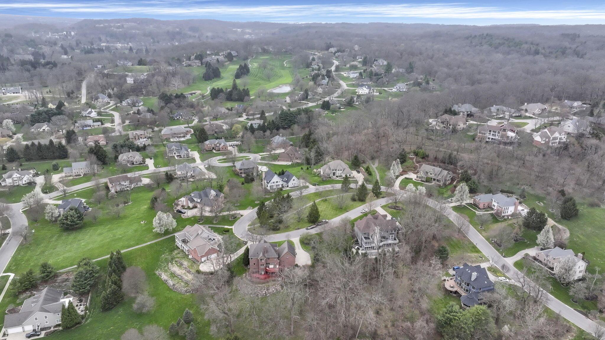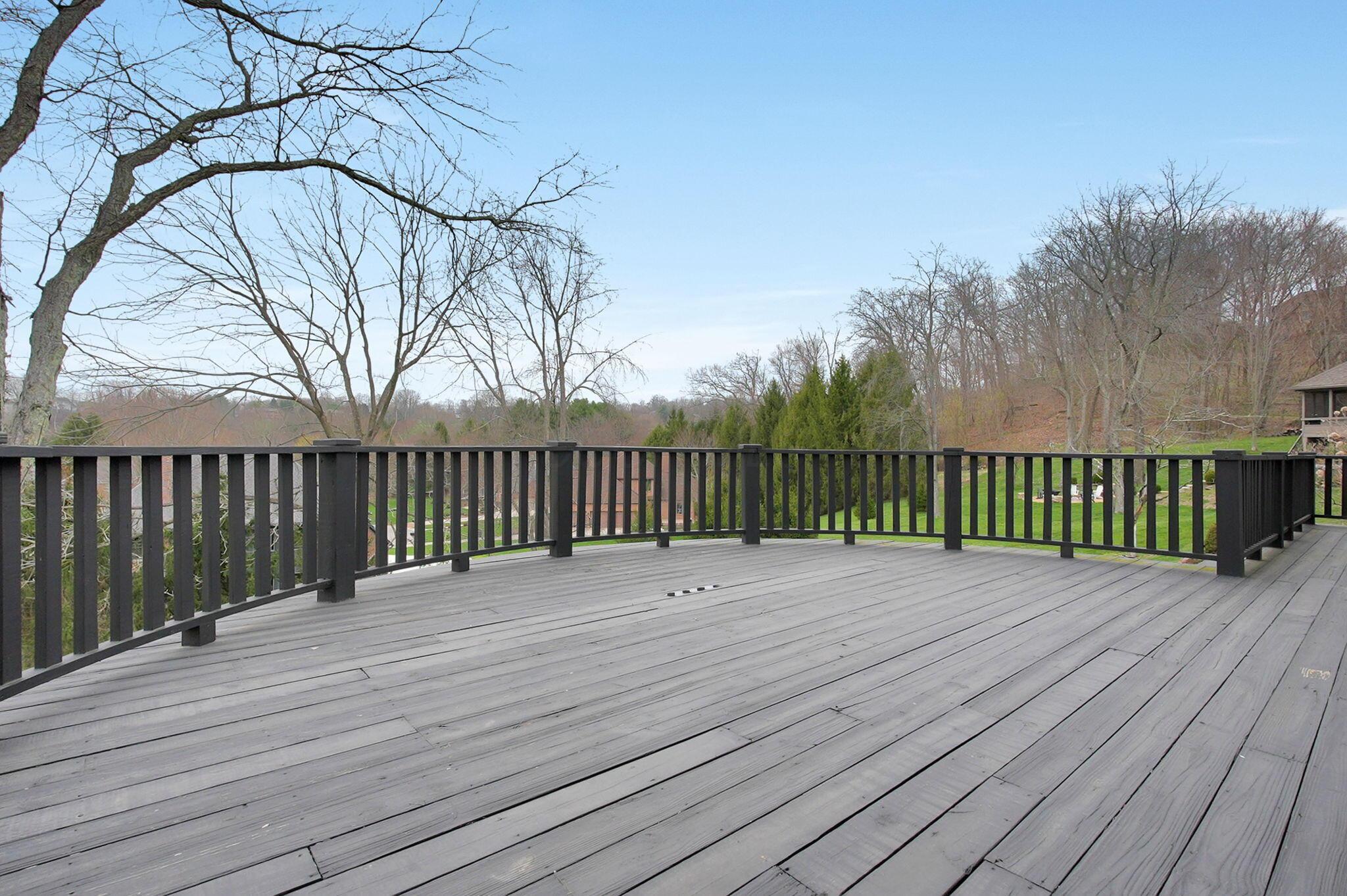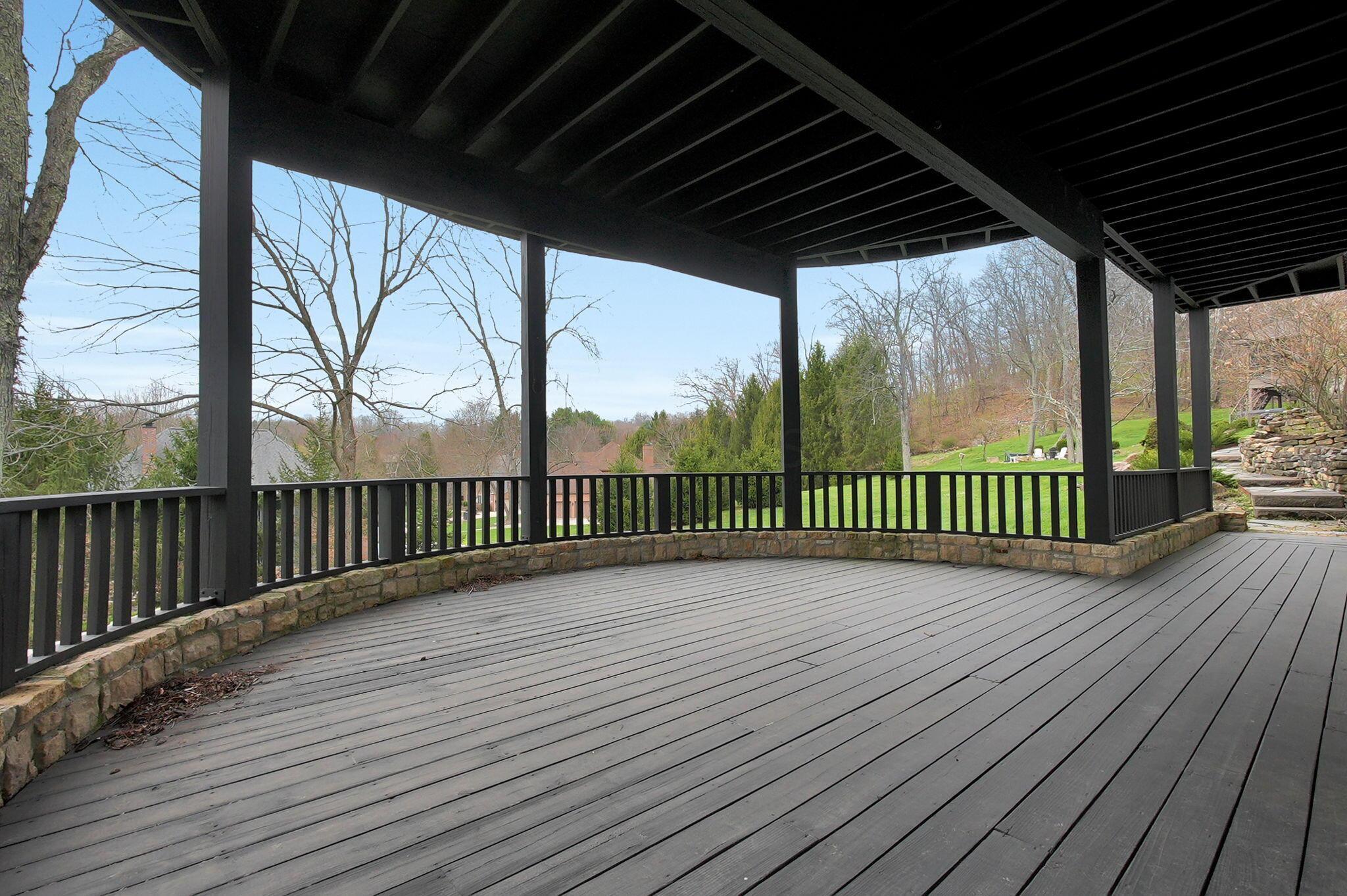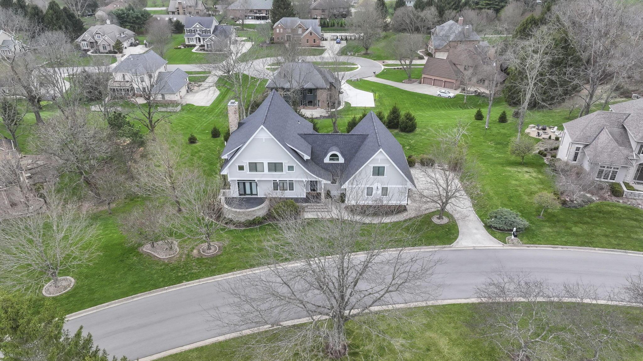 Set on a picturesque hilltop in the sought-after Bryn Du Woods community, this custom-built home offers exceptional privacy at the end of a quiet cul-de-sac and breathtaking, year-round views. The incredible home showcases high-end craftsmanship throughout, including rich woodwork, striking stone accents, custom built-ins, gleaming hardwood floors, and three inviting decks designed to capture the natural surroundings, perfect for relaxing and entertaining.The thoughtfully designed open floor plan blends elegance and functionality, featuring a chefs kitchen with soapstone countertops that flows seamlessly into the spacious great room with a stunning stone fireplace, as well as an eat-in area and formal dining room--ideal for both everyday living and entertaining.The luxurious owners suite is a true retreat, complete with a spa-inspired bath, generous walk-in closet, and a dramatic picture window framing serene, panoramic views.Additional highlights include a main-level den or office, comfortable family bedrooms, and an expansive walk-out lower level with a private entrance. This versatile space features a wet bar, stone fireplace, an additional bedroom, office, and a full bath--perfect for guests, multi-generational living, or an in-law suite.This exceptional home combines refined living with natural beauty in one of Granvilles most desirable neighborhoods.