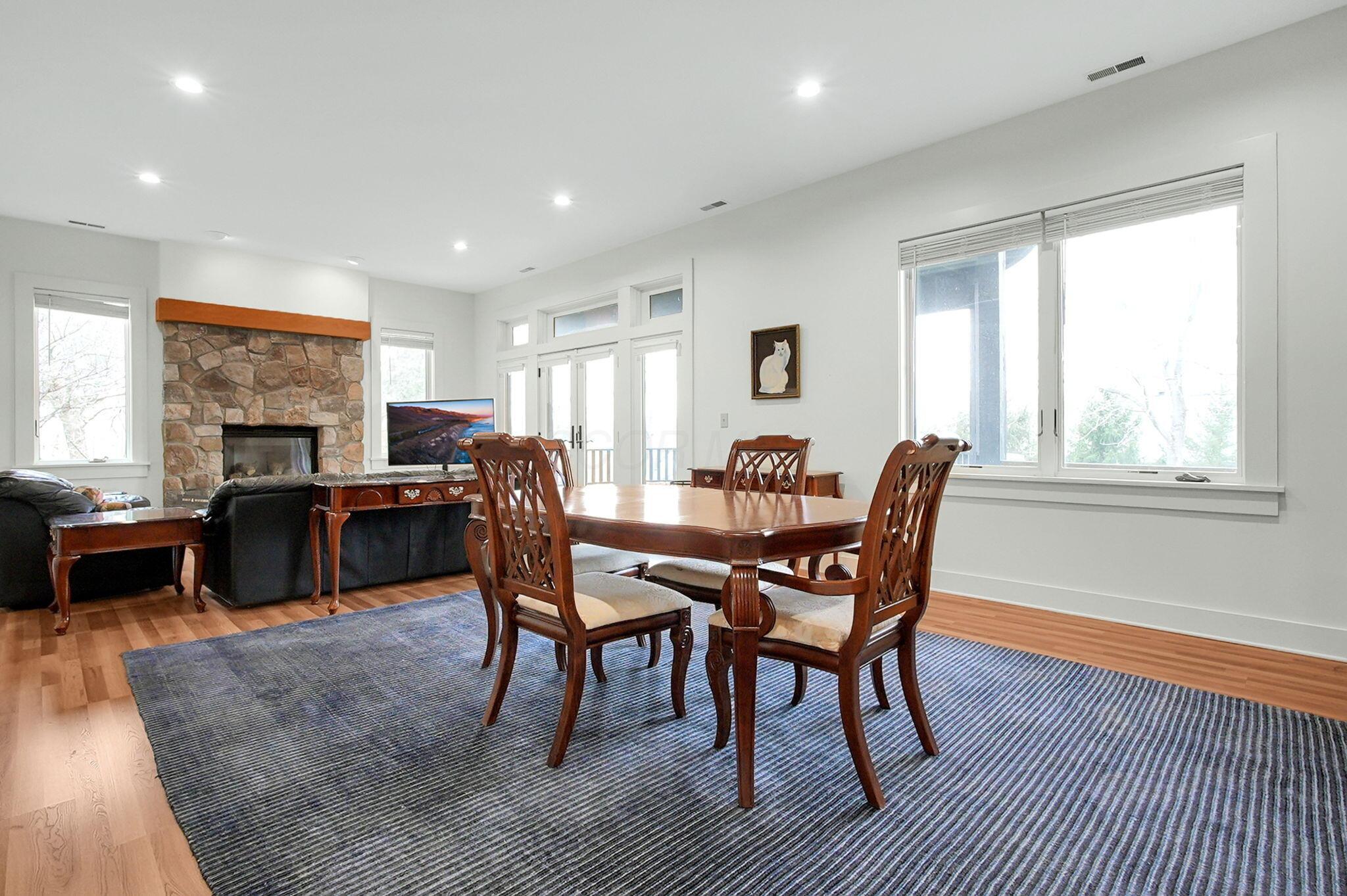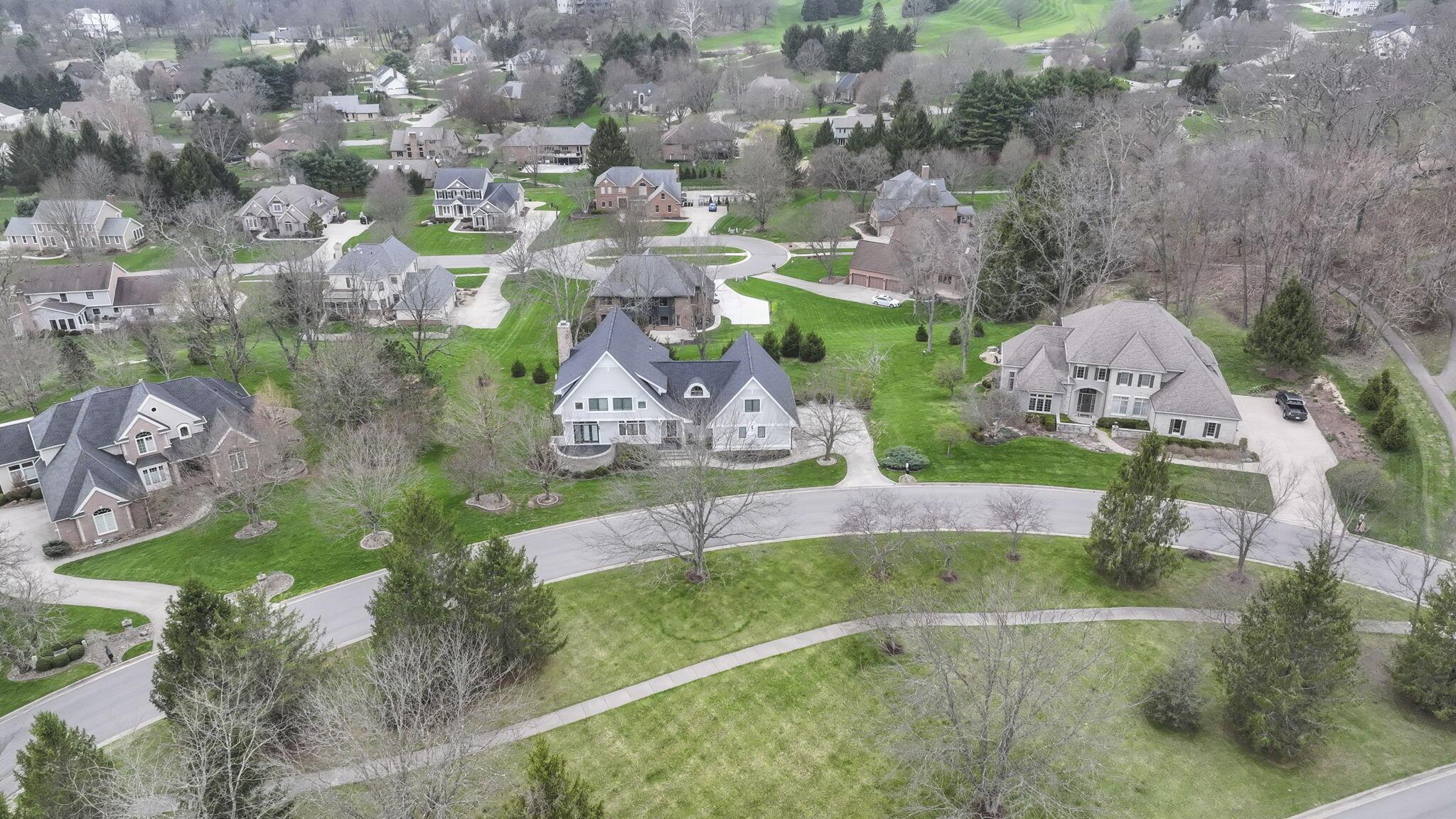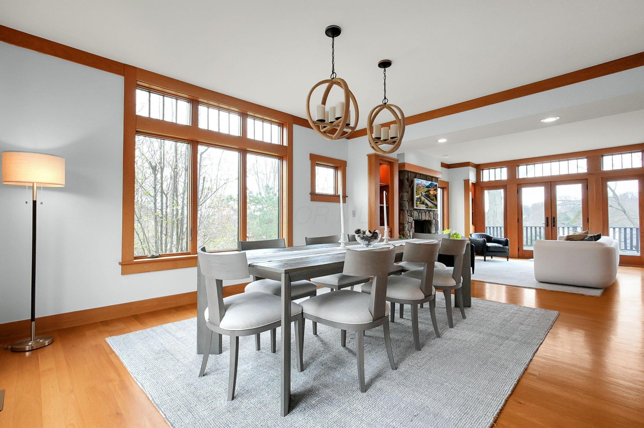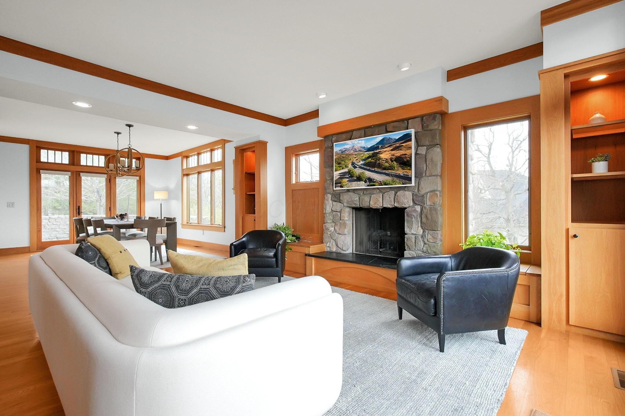 Set on a picturesque hilltop in the sought-after Bryn Du Woods community, this custom-built home offers exceptional privacy at the end of a quiet cul-de-sac and breathtaking, year-round views. The incredible home showcases high-end craftsmanship throughout, including rich woodwork, striking stone accents, custom built-ins, gleaming hardwood floors, and three inviting decks designed to capture the natural surroundings, perfect for relaxing and entertaining.The thoughtfully designed open floor plan blends elegance and functionality, featuring a chefs kitchen with soapstone countertops that flows seamlessly into the spacious great room with a stunning stone fireplace, as well as an eat-in area and formal dining room--ideal for both everyday living and entertaining.The luxurious owners suite is a true retreat, complete with a spa-inspired bath, generous walk-in closet, and a dramatic picture window framing serene, panoramic views.Additional highlights include a main-level den or office, comfortable family bedrooms, and an expansive walk-out lower level with a private entrance. This versatile space features a wet bar, stone fireplace, an additional bedroom, office, and a full bath--perfect for guests, multi-generational living, or an in-law suite.This exceptional home combines refined living with natural beauty in one of Granvilles most desirable neighborhoods.