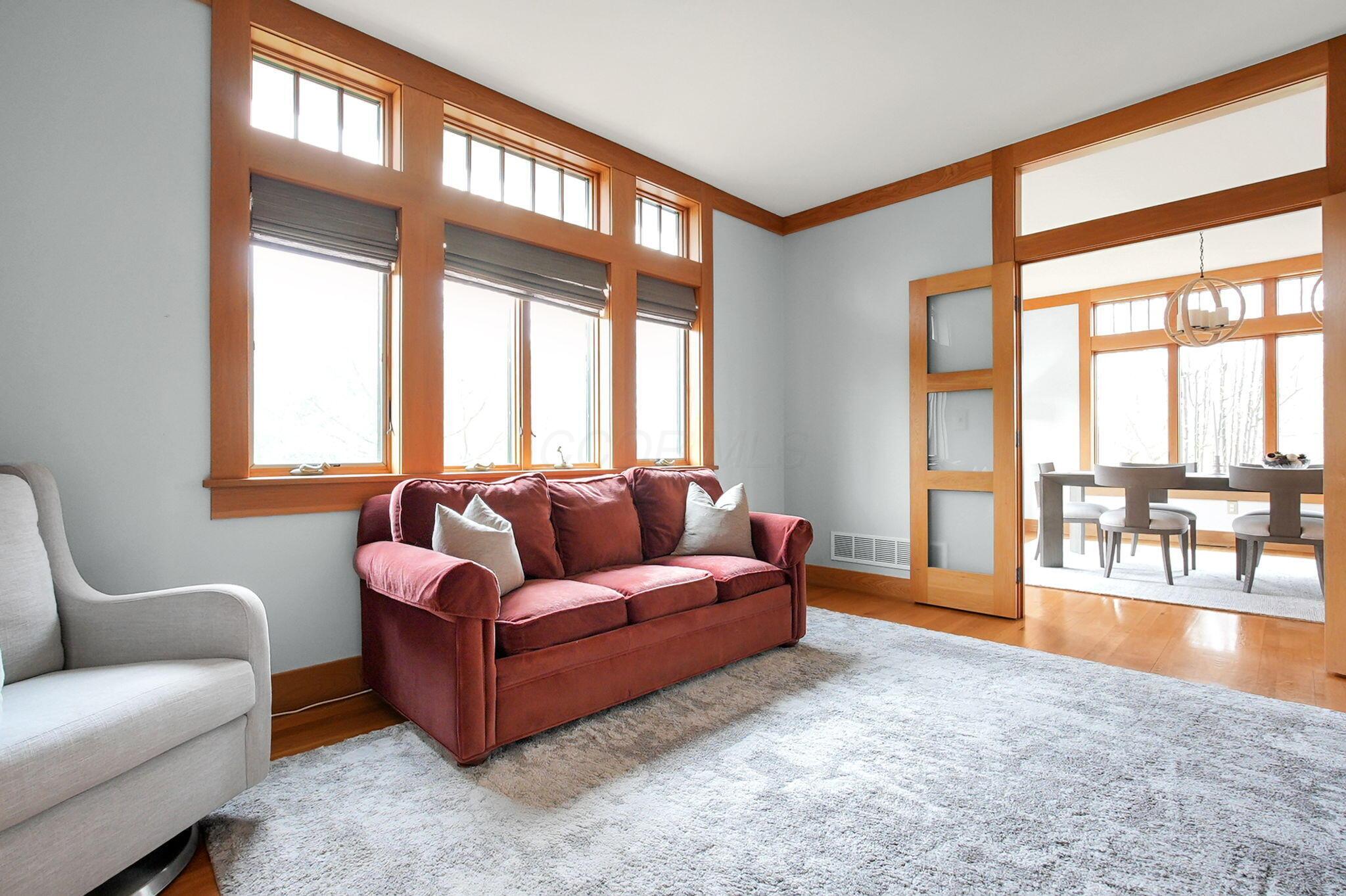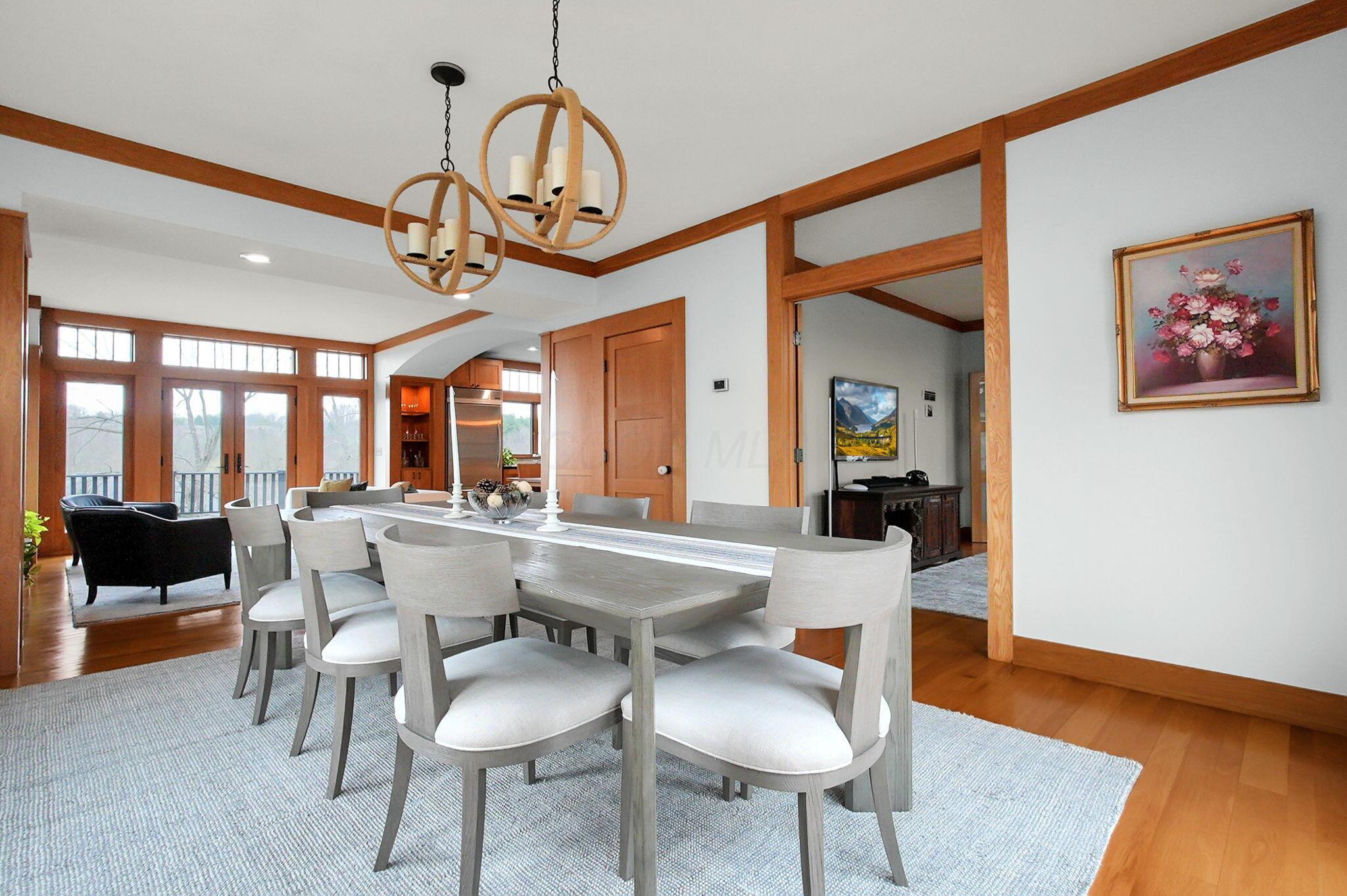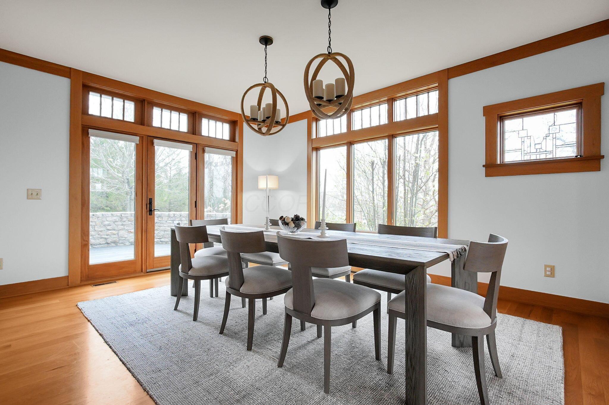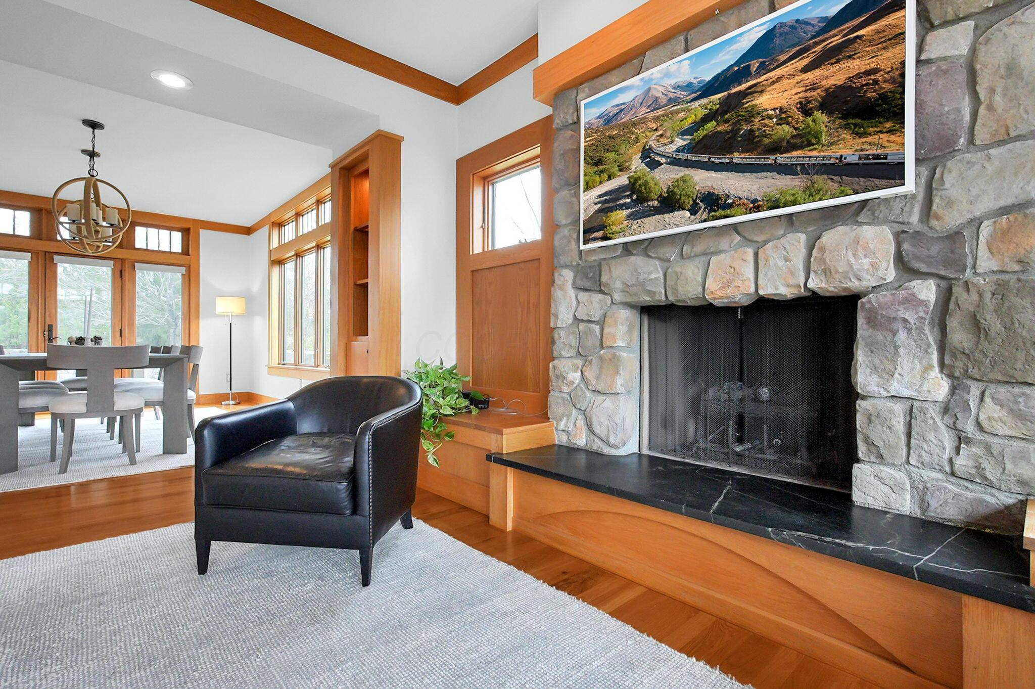 Set on a picturesque hilltop in the sought-after Bryn Du Woods community, this custom-built home offers exceptional privacy at the end of a quiet cul-de-sac and breathtaking, year-round views. The incredible home showcases high-end craftsmanship throughout, including rich woodwork, striking stone accents, custom built-ins, gleaming hardwood floors, and three inviting decks designed to capture the natural surroundings, perfect for relaxing and entertaining.The thoughtfully designed open floor plan blends elegance and functionality, featuring a chefs kitchen with soapstone countertops that flows seamlessly into the spacious great room with a stunning stone fireplace, as well as an eat-in area and formal dining room--ideal for both everyday living and entertaining.The luxurious owners suite is a true retreat, complete with a spa-inspired bath, generous walk-in closet, and a dramatic picture window framing serene, panoramic views.Additional highlights include a main-level den or office, comfortable family bedrooms, and an expansive walk-out lower level with a private entrance. This versatile space features a wet bar, stone fireplace, an additional bedroom, office, and a full bath--perfect for guests, multi-generational living, or an in-law suite.This exceptional home combines refined living with natural beauty in one of Granvilles most desirable neighborhoods.