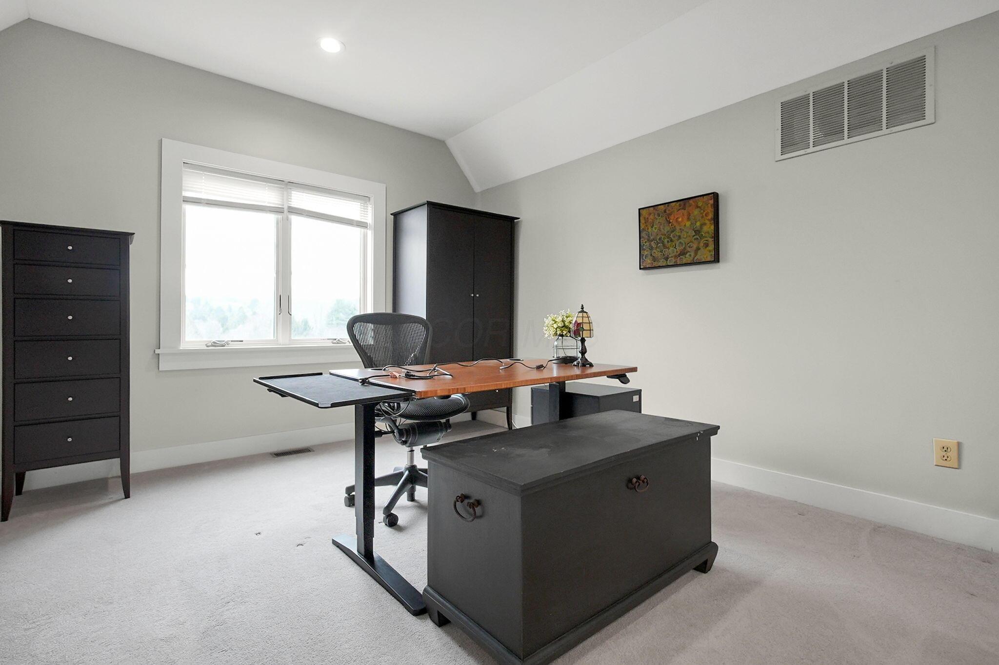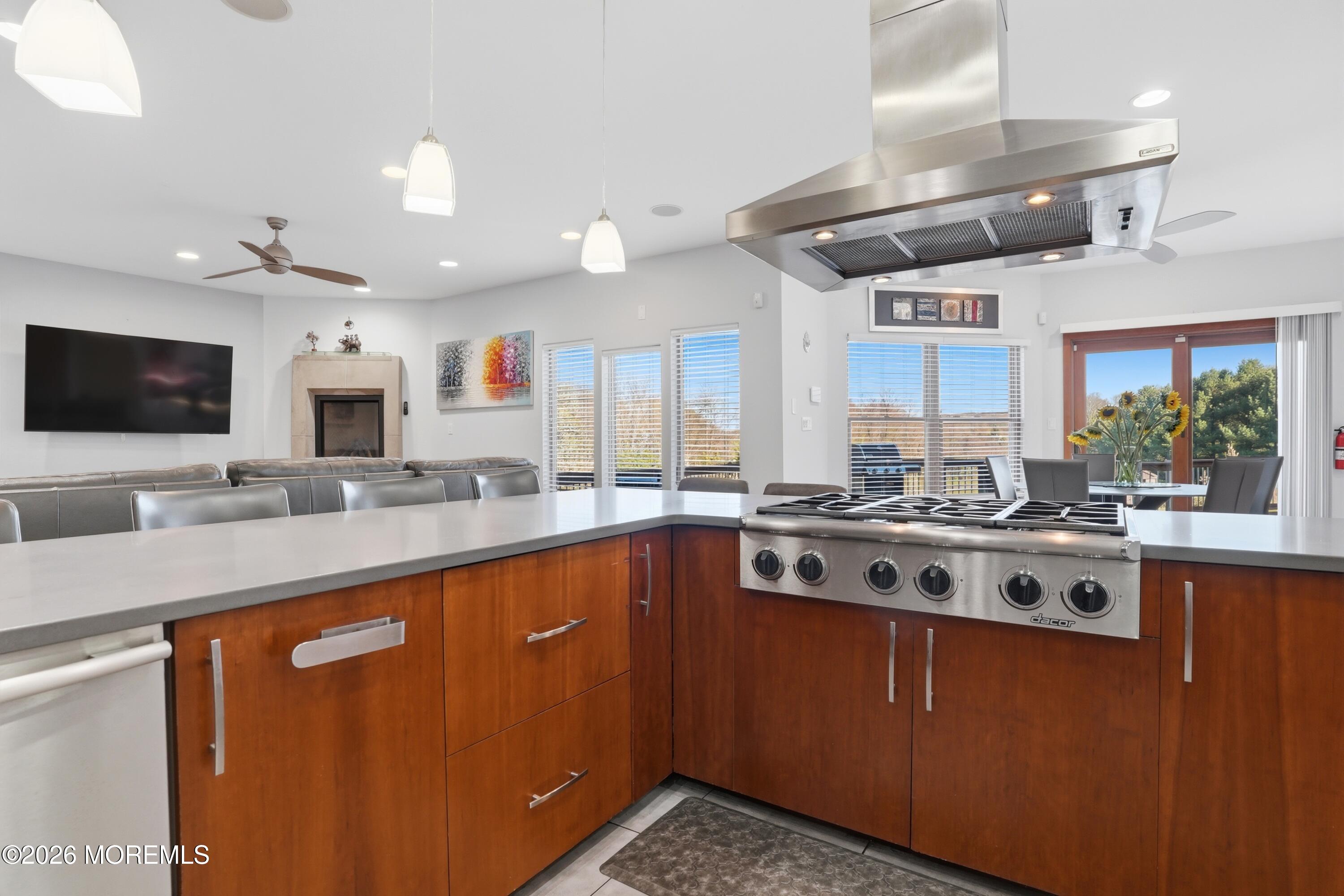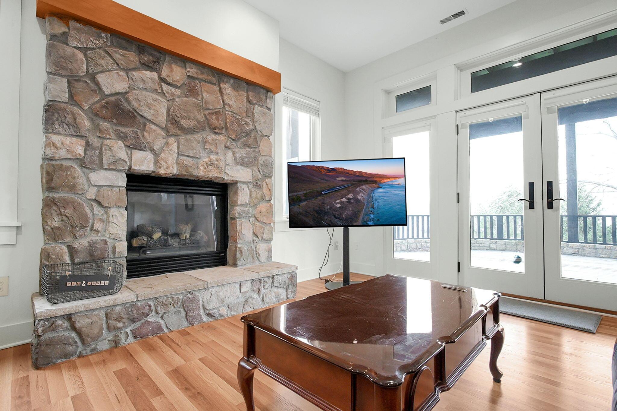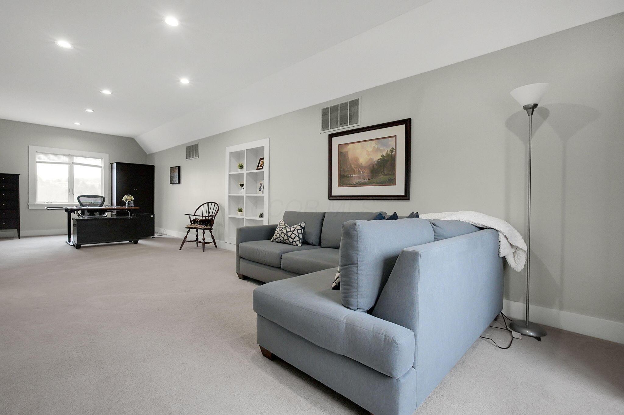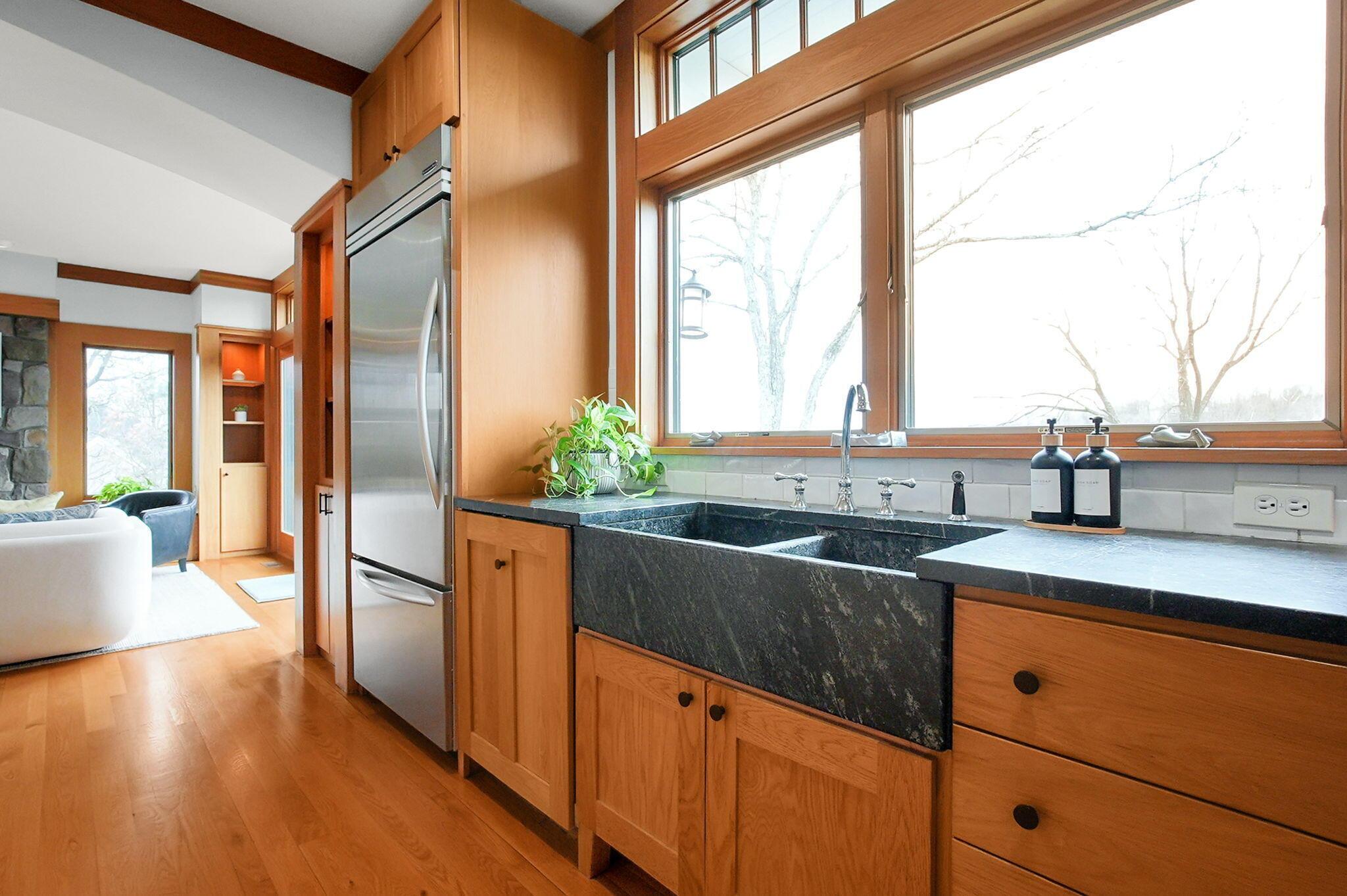 Set on a picturesque hilltop in the sought-after Bryn Du Woods community, this custom-built home offers exceptional privacy at the end of a quiet cul-de-sac and breathtaking, year-round views. The incredible home showcases high-end craftsmanship throughout, including rich woodwork, striking stone accents, custom built-ins, gleaming hardwood floors, and three inviting decks designed to capture the natural surroundings, perfect for relaxing and entertaining.The thoughtfully designed open floor plan blends elegance and functionality, featuring a chefs kitchen with soapstone countertops that flows seamlessly into the spacious great room with a stunning stone fireplace, as well as an eat-in area and formal dining room--ideal for both everyday living and entertaining.The luxurious owners suite is a true retreat, complete with a spa-inspired bath, generous walk-in closet, and a dramatic picture window framing serene, panoramic views.Additional highlights include a main-level den or office, comfortable family bedrooms, and an expansive walk-out lower level with a private entrance. This versatile space features a wet bar, stone fireplace, an additional bedroom, office, and a full bath--perfect for guests, multi-generational living, or an in-law suite.This exceptional home combines refined living with natural beauty in one of Granvilles most desirable neighborhoods.