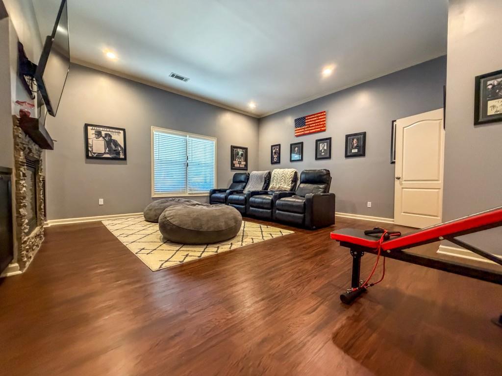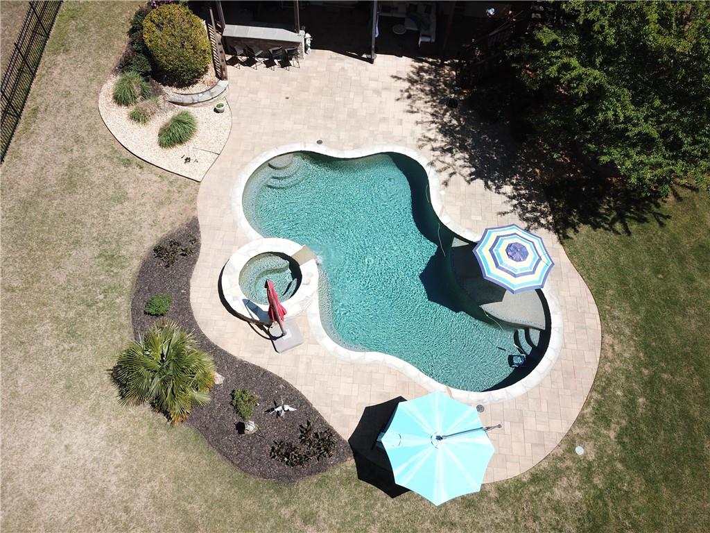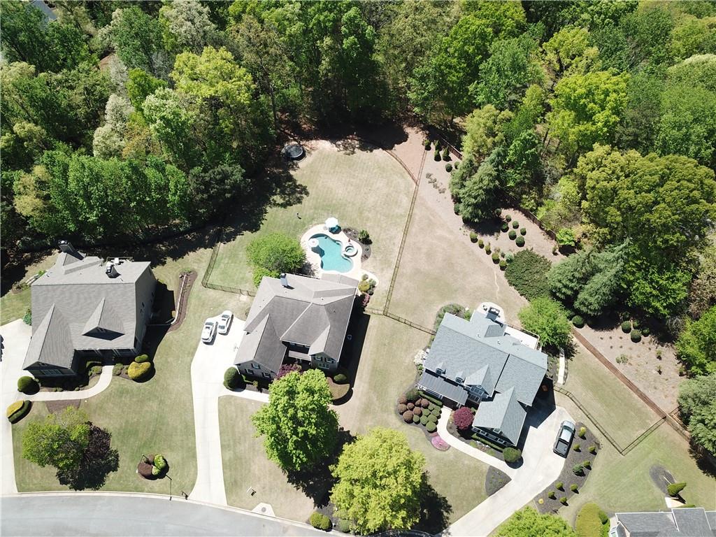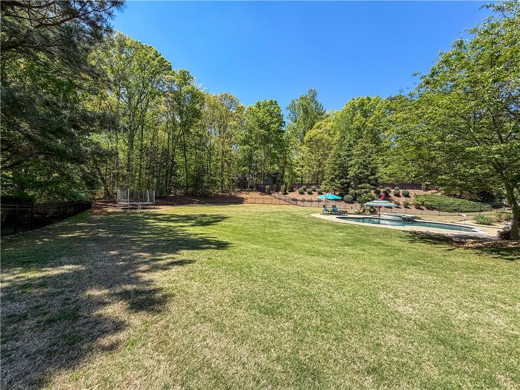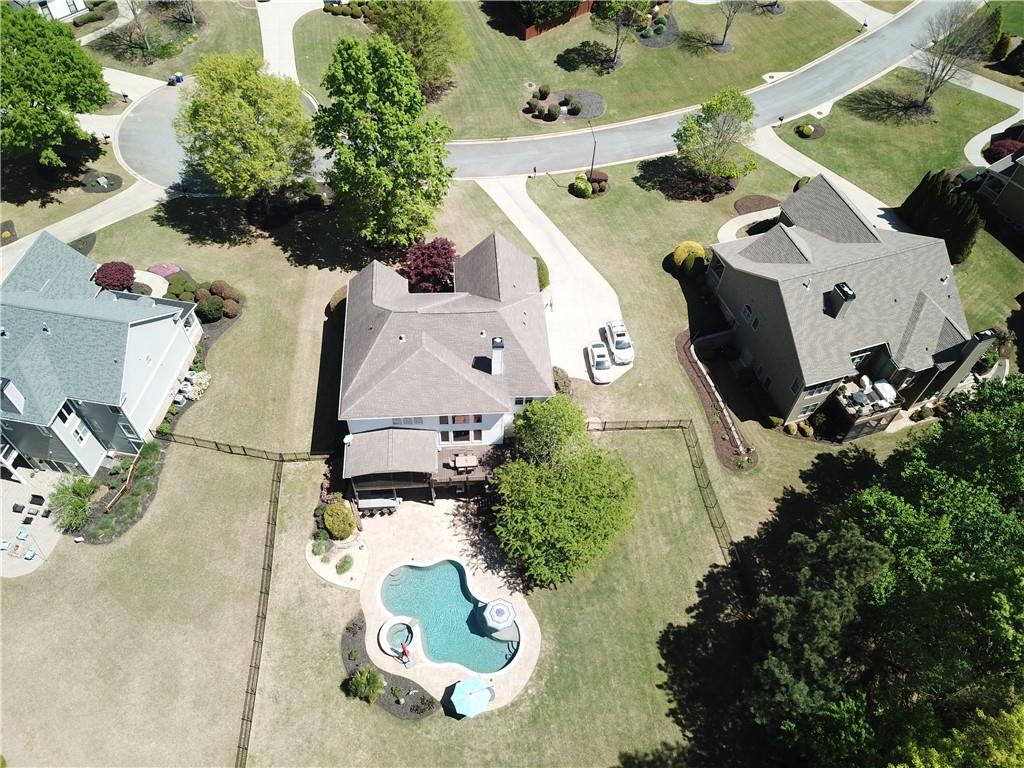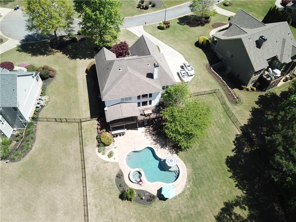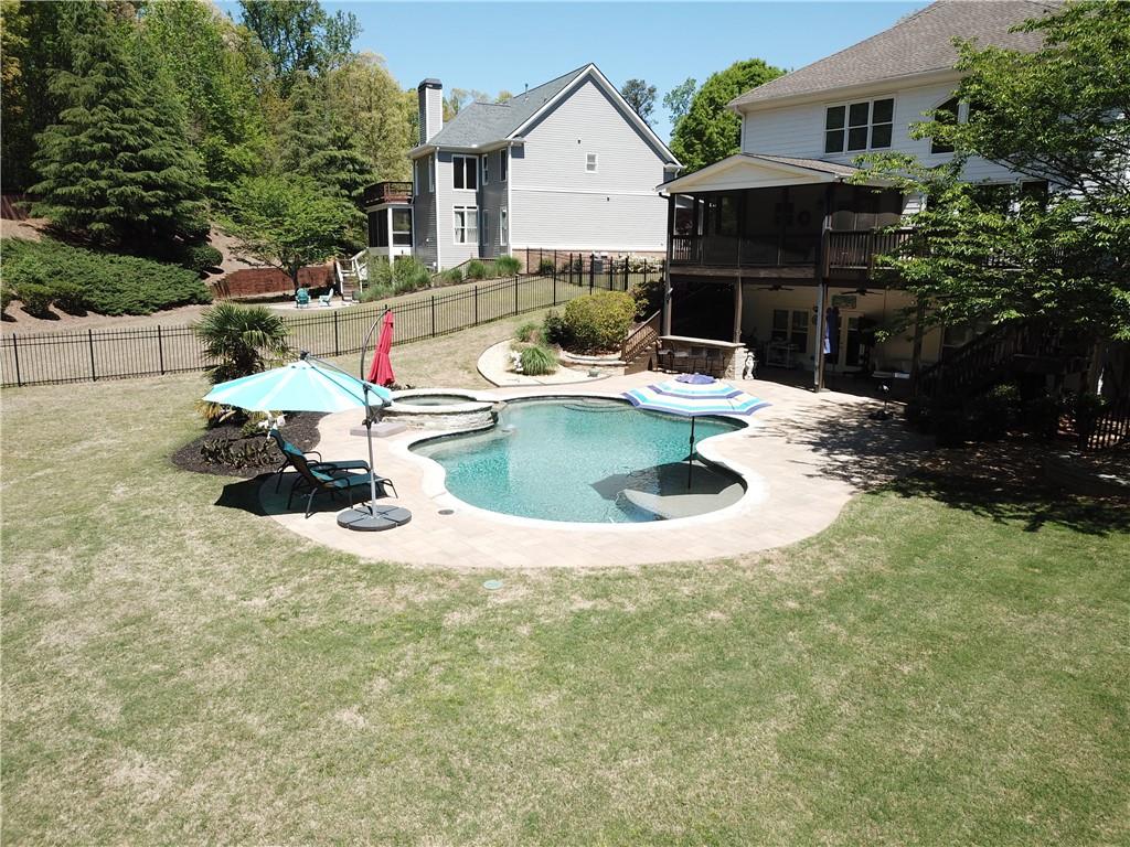 Incredible describes this opportunity on a nearly new custom-built home with a finished basement, gunite pool, hot tub, huge pool pavilion with bathroom and grilling station on one of the best private level lots in the City of Buford, tucked away in a beautiful, gated community! This open concept floor plan offers a large kitchen with loads of custom-built cabinetry, oversized island, quartz countertops, double ovens, gas cook-top, drawer-level microwave, and a huge walk-in pantry with wood shelving. Stained coffered ceiling beams extend from the kitchen to the family room. The large breakfast room is loaded with windows for maximum daylight. Family room with granite surround fireplace and built-in cabinet bases with transom windows above. Spacious office off the foyer with plenty of natural daylight, shiplap accent wall, and corner barn doors. Guest suite on the main floor with a walk-in closet and a private bath with a walk-in shower. Powder room tucked off the rear hallway for guest privacy. Drop zone area with bench seating and cubbies, along with a separate friends entry door off the rear hallway. Hardwood floors throughout the main level, except the main level guest suite. Split stairway with horizontal metal pickets leads upstairs where the landing features a loft/flex space with hardwoods. Oversized master suite with tray ceiling. Luxurious master bath features a large walk-in shower with dual showerheads, separate soaking tub, his and hers vanities, and an enormous walk-in closet with built-in hanging and adjustable shelving plus dressing island. Three additional spacious secondary bedrooms, all with walk-ins & private baths. The upstairs laundry room has a sink basin and wall cabinets. Professionally finished terrace level with a complete in-law suite featuring a kitchen with custom cabinets, floating shelves with accent lighting, a large island and quartz c-tops. Family/media room with surround sound and pre-wired for a projector. Stained ceiling beams extend from the kitchen to the family room. Custom gym with built-ins and wall mirrors. Separate office with French doors and built-ins. Guest bedroom with full bath featuring a stand-up shower. An additional powder room that has a cabinet paneled washer/dryer niche to keep out of sight. Hardwood floors throughout. There is also a playroom area under the stairs. The outdoor entertainment area is an incredible space that includes a rear covered porch with a fireplace and flagstone floor covering, an additional open flagstone patio area for larger gatherings, heated saltwater pool with hot tub and tanning ledge surrounded by an artificial turf perimeter. The large pool pavilion has a vaulted media area, a built-in grilling station with stainless steel accessories and sink, a powder room bath, and a large storage room for pool items. Additionally, you have a huge level rear yard that is so hard to find, plus extensive landscaping. Numerous additional details featuring 10 ceilings on the main level with 8 doors, four-sided brick, 3-car garage with oversized driveway, fully automated blinds, leak-detection and camera systems, tankless water heater, water-filtration system, built-in speakers, irrigation, landscape lighting, and so much more. This home has been incredibly maintained with no expense spared so dont miss it!